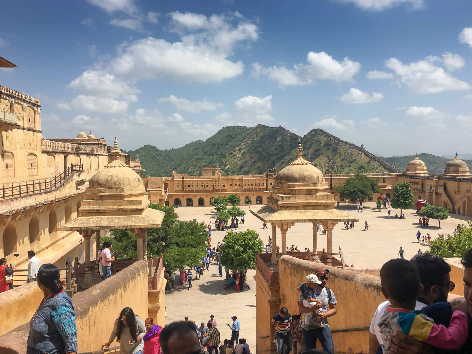 This was most impressive for its location. It sits high on the hill tops providing magnificent views of Jaipur, Amer Fort and the walls. There are literally miles and miles of walls linking the forts, protecting the whole city, providing access to the drinking water wells etc. They really should develop these as walkways. They are high, substantial and reminiscent of the Great Wall of China. It also has beautiful gardens – and the world’s largest wheeled cannon!