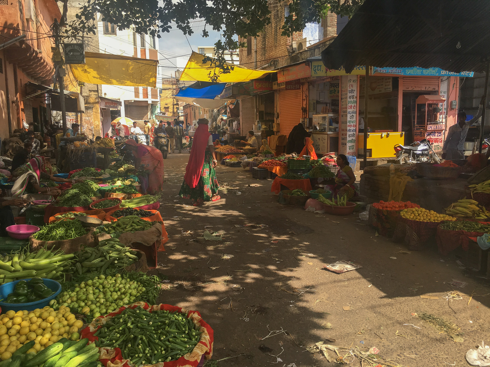 Beautiful looking fresh produce added to the vibrant colours in the street markets of Jaipur.
