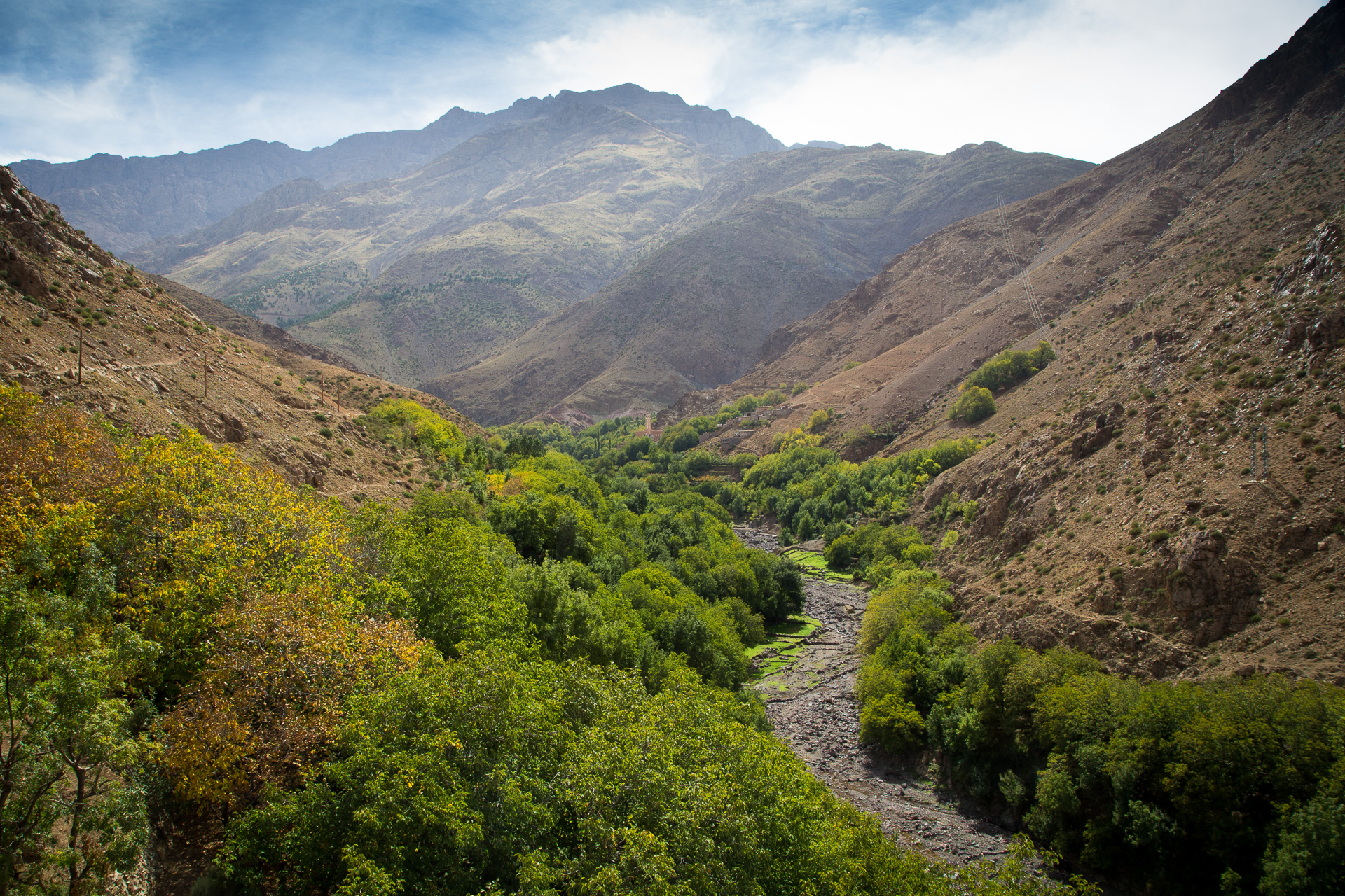 Imlil is the centre for trekking in the High Atlas and the gateway to Jebel Toubkal, North Africas highest peak (4167m). It had just received its first winter dusting of snow the week before we arrived. Since we had no intention of climbing anywhere near the summit, this simply added to the already spectacular scenery with the autumn colours changing daily.