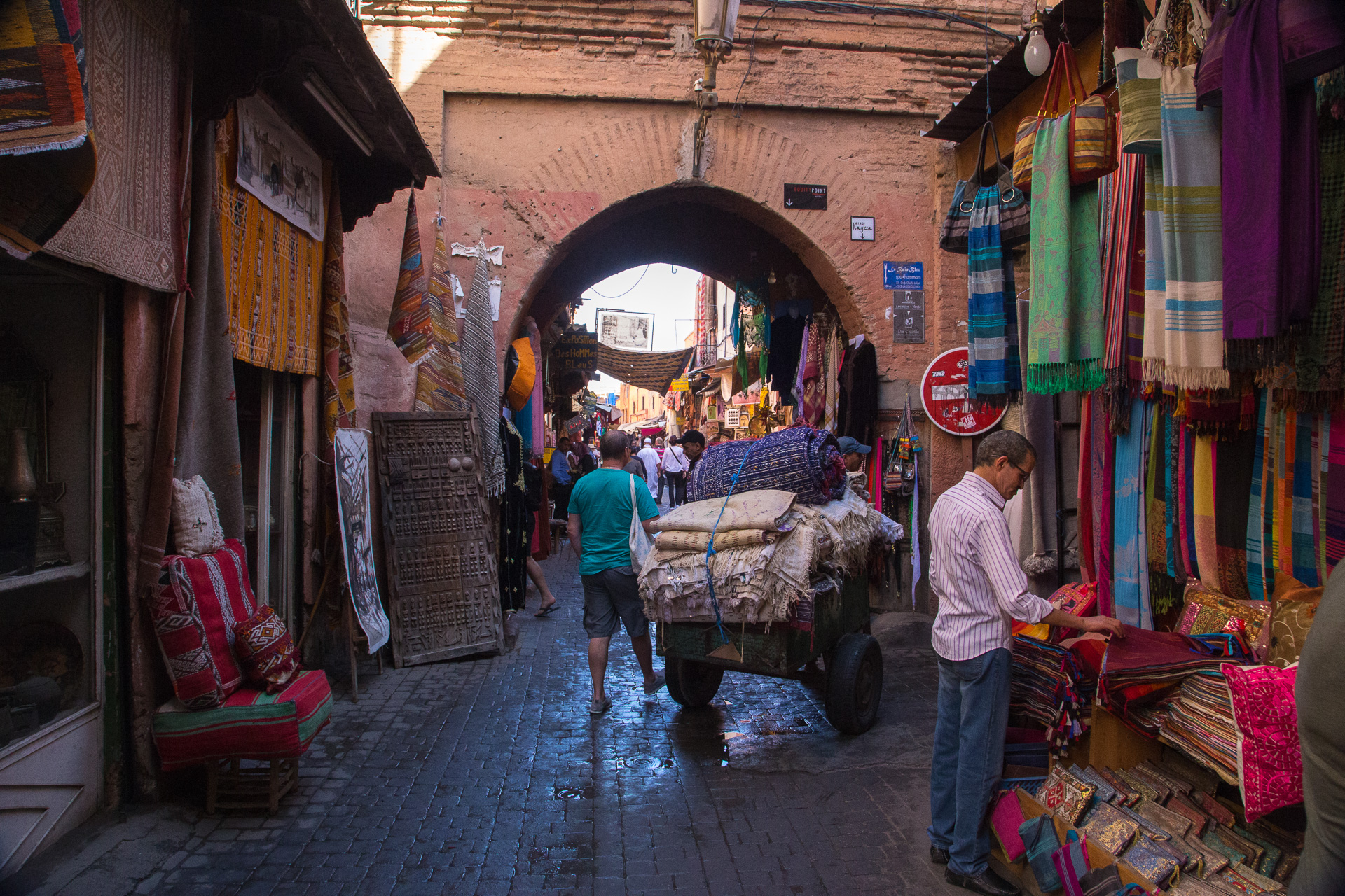 Once again our GPS was defeated by a maze of one-way streets and tiny alleyways in Marrakech. After an hour of frustrating driving in which Nigel managed to hit one pedestrian (just a glancing blow with the wing mirror, no blood), we gave up and paid someone on a motorbike to lead us to the riad.