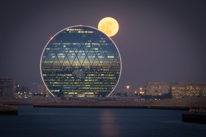 Beach access through a hole in the fence gave a water-front view to the iconic Aldar HQ a.k.a the round building and then it was just a question of being in the planned position at the designated time.