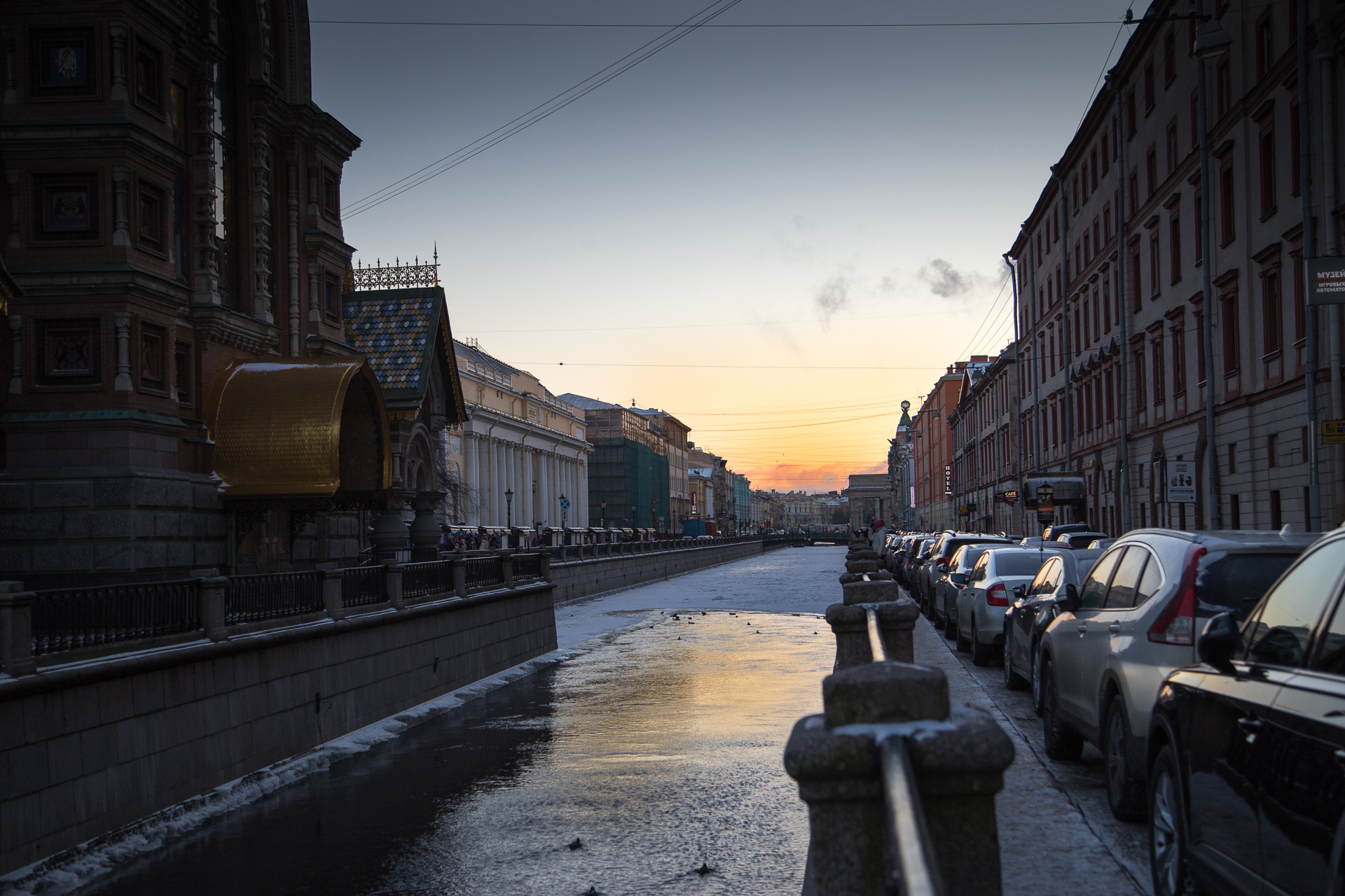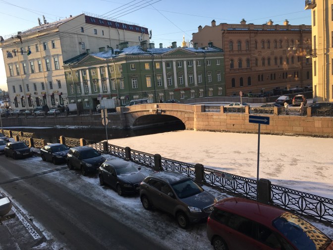 Crisp, clear blue skies on our arrival provided a few hours of late afternoon sun and perfect views of the ice-packed Neva River, the Winter Palace and the graphically named Church of Our Saviour on Spilled Blood (the church was built on the site where Emperor Alexander II was fatally wounded in 1881).