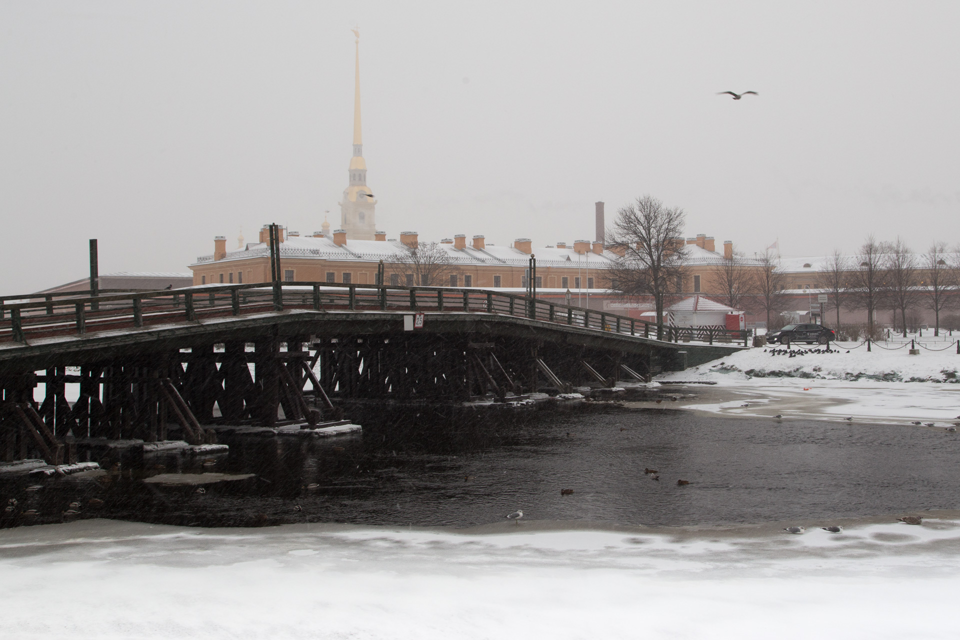 Our second day brought overcast skies and snow – blizzard conditions at times. Turning back was never an option as we took a circular route through the Summer Garden!, across Zayachy (hare) Island, home to the Peter and Paul Cathedral, past the Bronze Horseman and finally into the Hermitage Museum. Sad to say that by this stage we were ready to sit down and the bewildering array of guided tours (mostly in Russian) proved too much. We headed off to Jamie Olivers Italian restaurant without experiencing the cultural treasures on display – the pizza was good!
