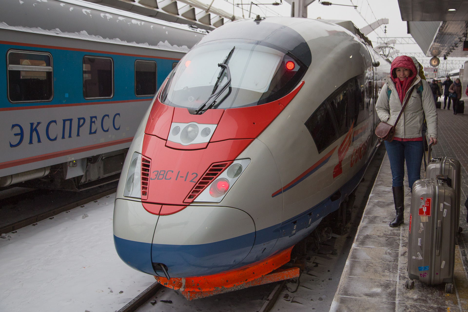 The Sapsan (Russian for Peregrine Falcon) is the high speed train that covers the 635 km between Moskovsky Station in St Petersburg and Leningradiskaya Station in Moscow in about 3 and a half hours. So we were in Moscow just after midday with time to tour Red Square before dinner.