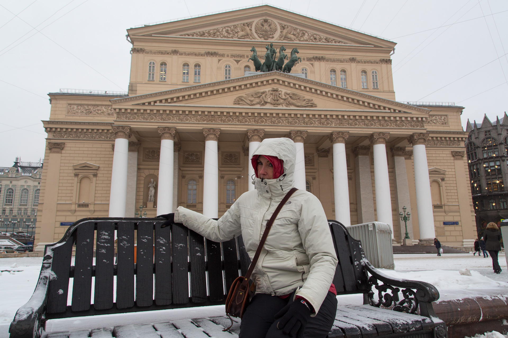 Our brief excursion on the underground unexpectedly brought us to the Bolshoi Theatre. Sue was not impressed with Nigel’s claim that this was the best seat in the house.