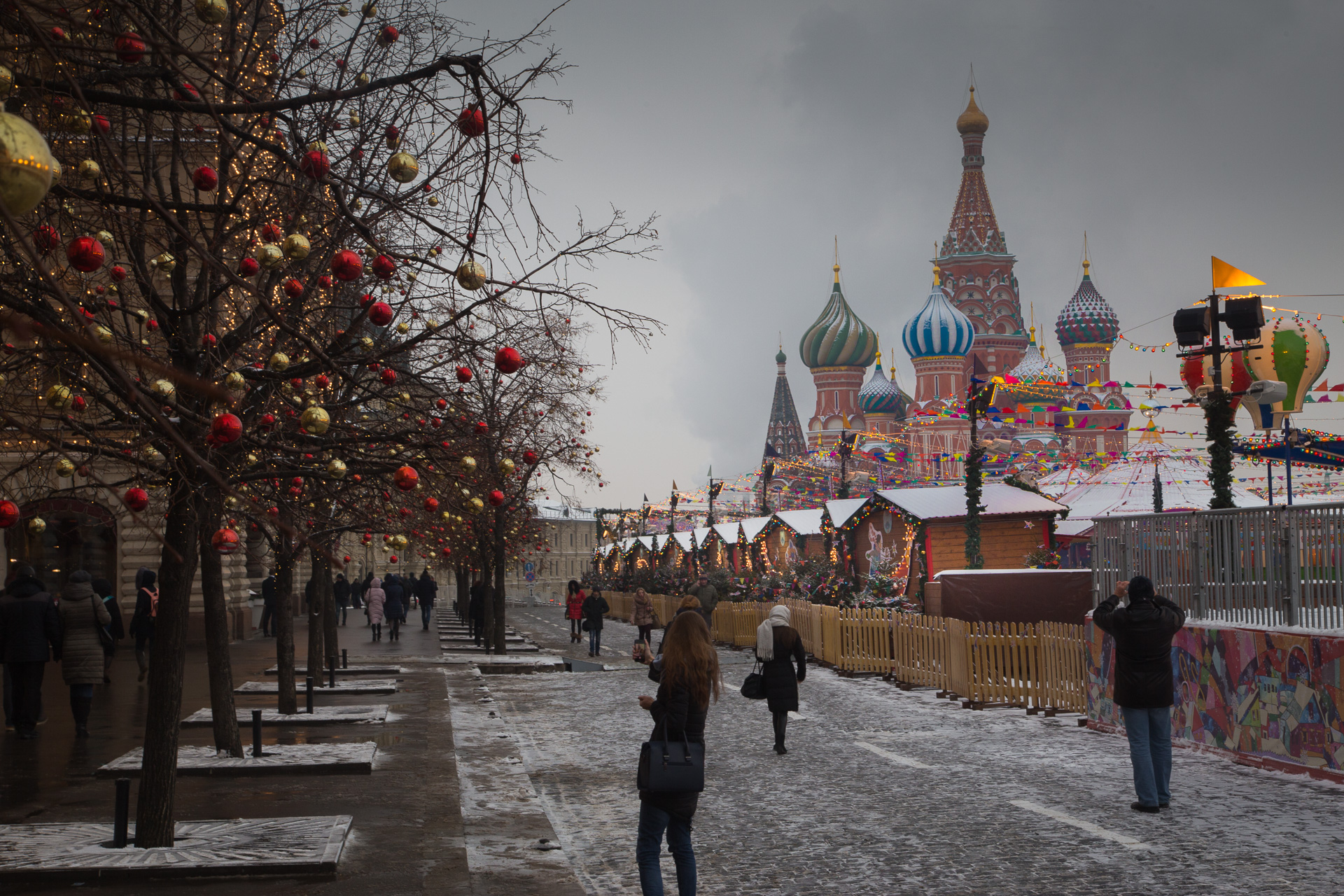 Memorable images of soldiers and tanks parading before Soviet leaders did nothing to prepare us for the sight of the illuminated GUM building and colourful Christmas markets complete with ice-rink and fairground rides all leading to the fairytale building of St Basil’s Cathedral.