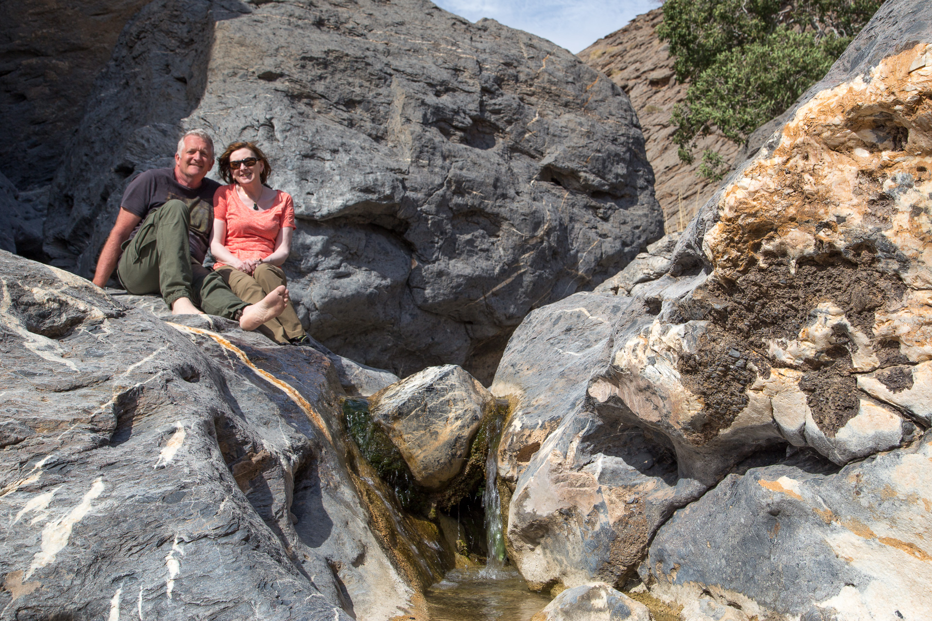 The forecast was for wind and clouds. It was half right. Our rooftop tent was given a good workout in a stiff breeze on both nights. But the days were mostly cloud free so that we appreciated a refreshing dip in the wadi after a ‘Mad Dogs and Englishmen’ walk in the midday sun.
