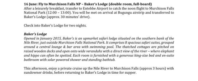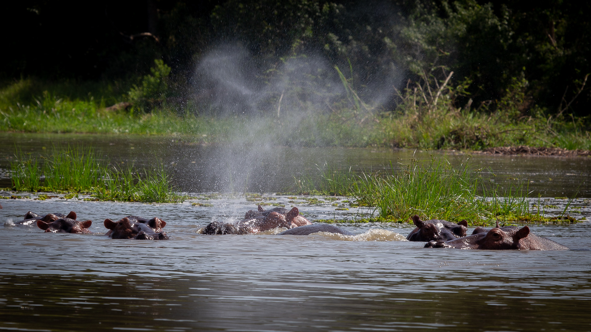 The river cruise took us incredibly close to hippos, elephants (a huge herd of over 70), crocodiles and all manner of bird life. The finale was a short walk to view the spectacular Murchison Falls where the Victoria Nile is squeezed into a seven metre gap and then falls 43 m.