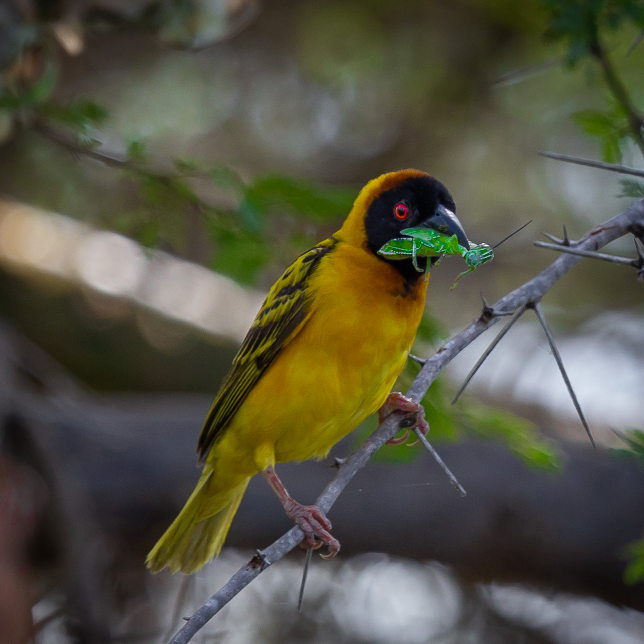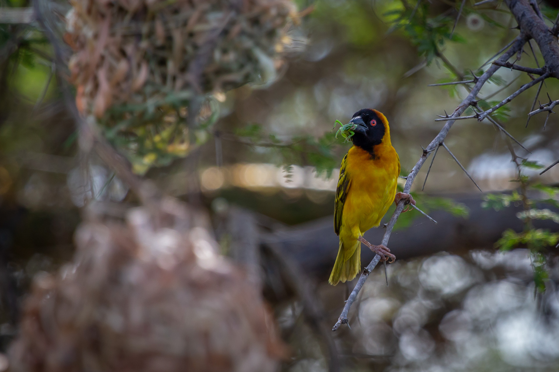 We were completely captivated by the little weaver birds. The males weave the hanging nests and then hope that their building skills will attract one of the females that come to inspect the nests. If their prospective love nest does not meet the standard they simply start over again and build a new one.