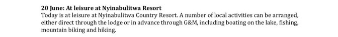 Instead of ‘at leisure at Nyinabulitwa Country Resort’, Gerald organised Noah, a local guide, to take us on a walking tour of the local village and surrounding crater lakes.