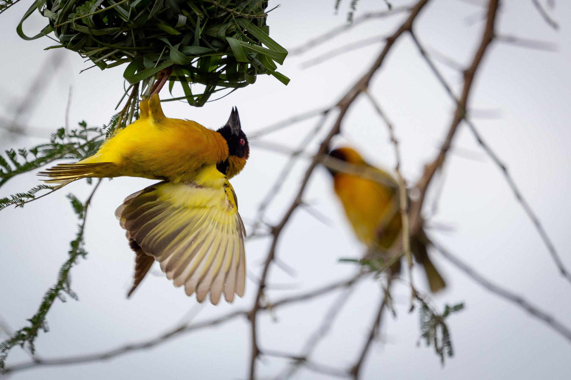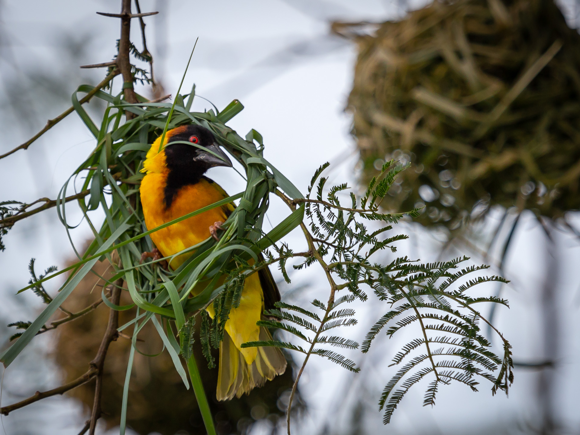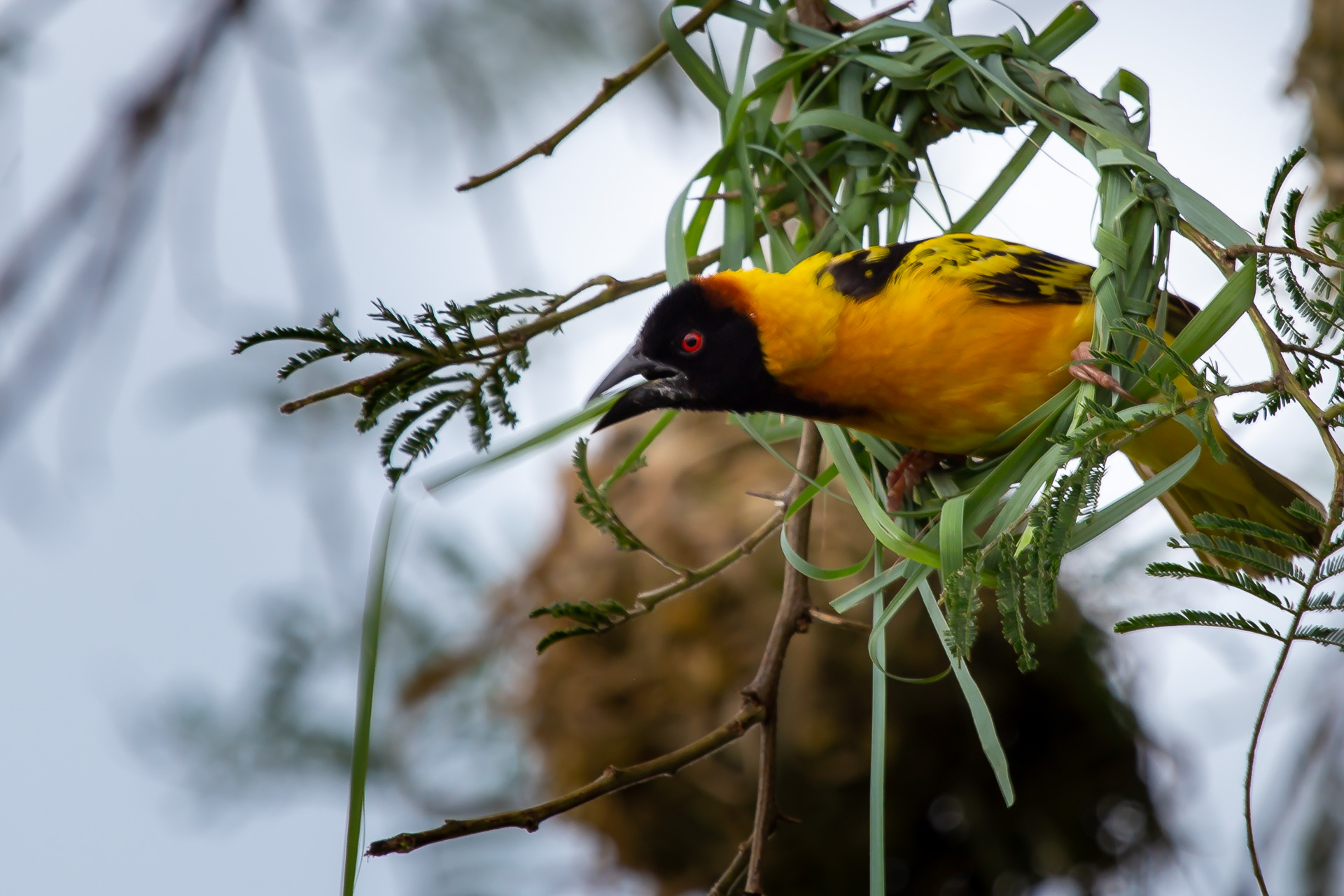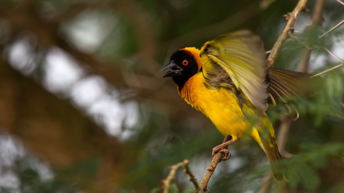 At Isunga Lodge we grabbed some fantastic photos of the weaver birds that had captivated us on the banks of the Nile. Here there was a tree full of nests just outside the lounge. Wildlife photography from an arm chair.