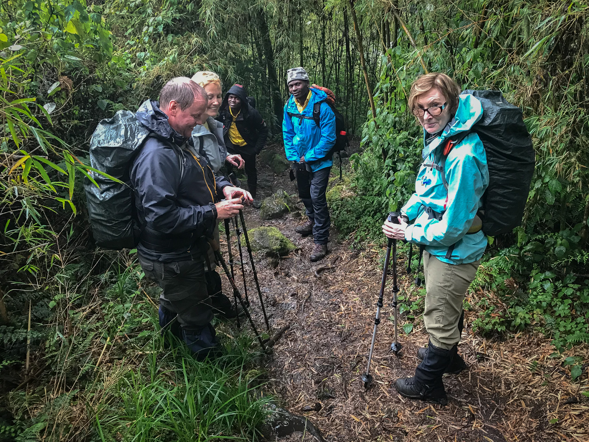 Today’s start was delayed as we waited for the rain to stop. Eventually it eased and we headed up (we thought we had done all the ‘up’ yesterday) into the bamboo zone.
