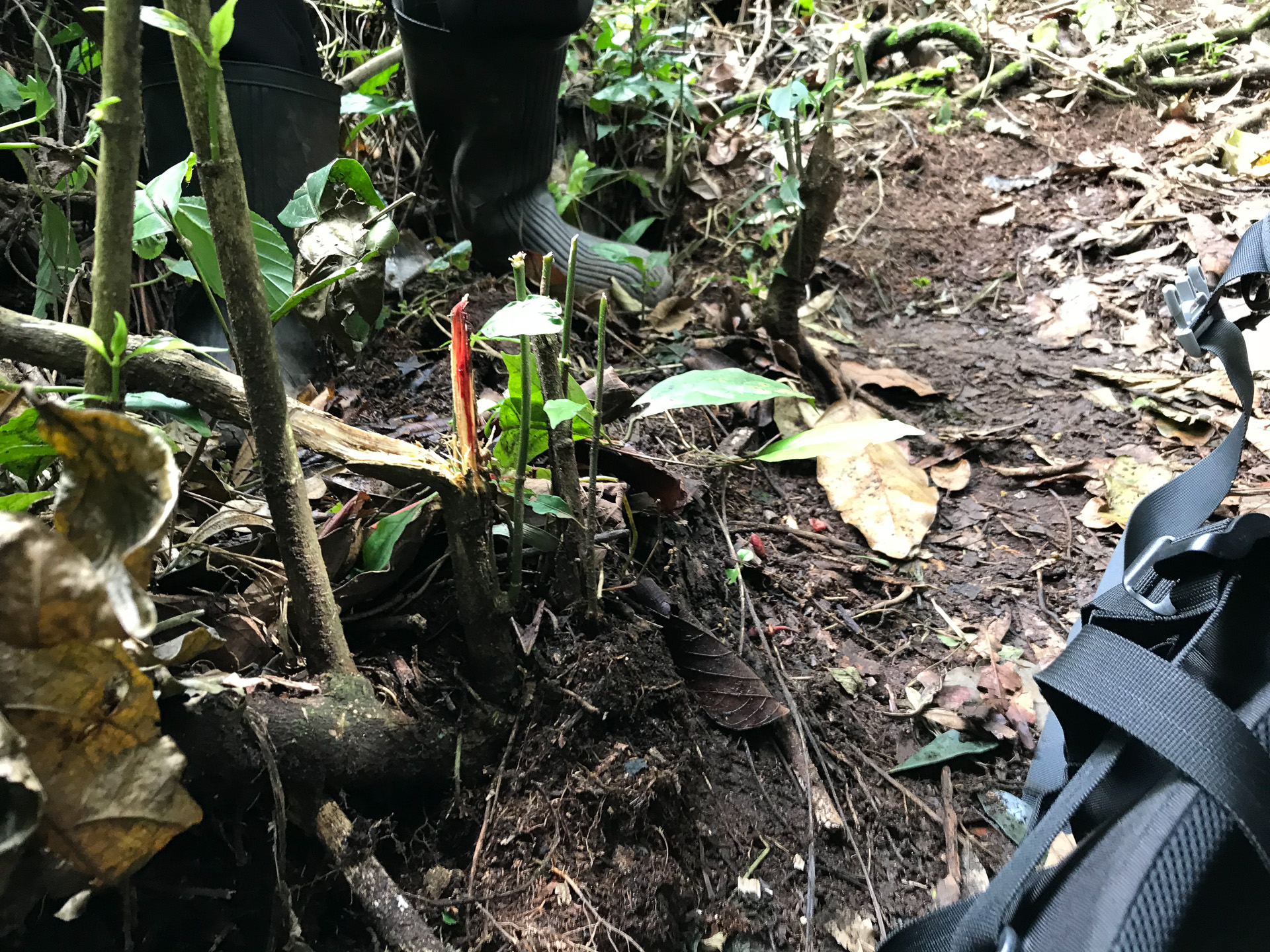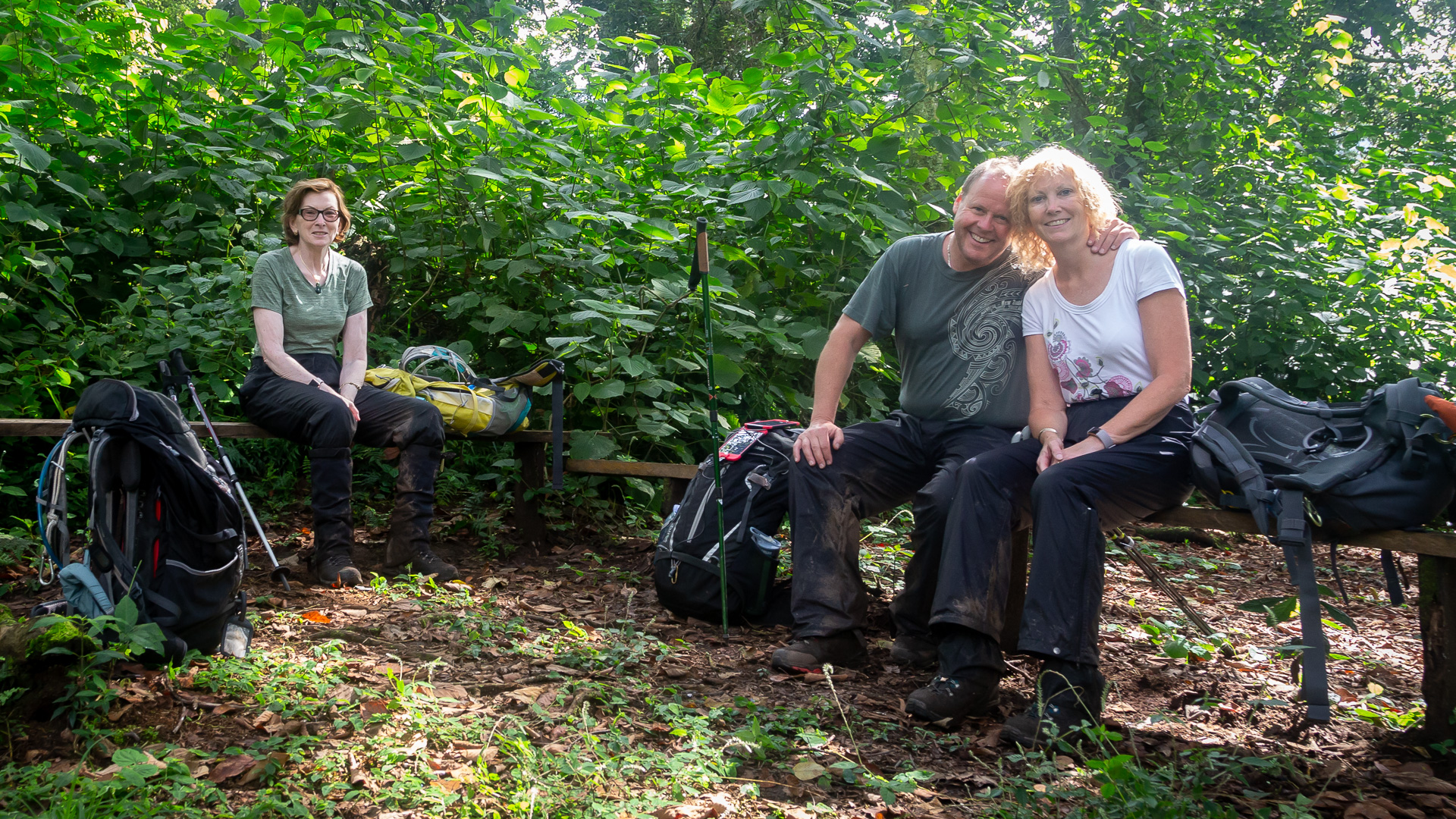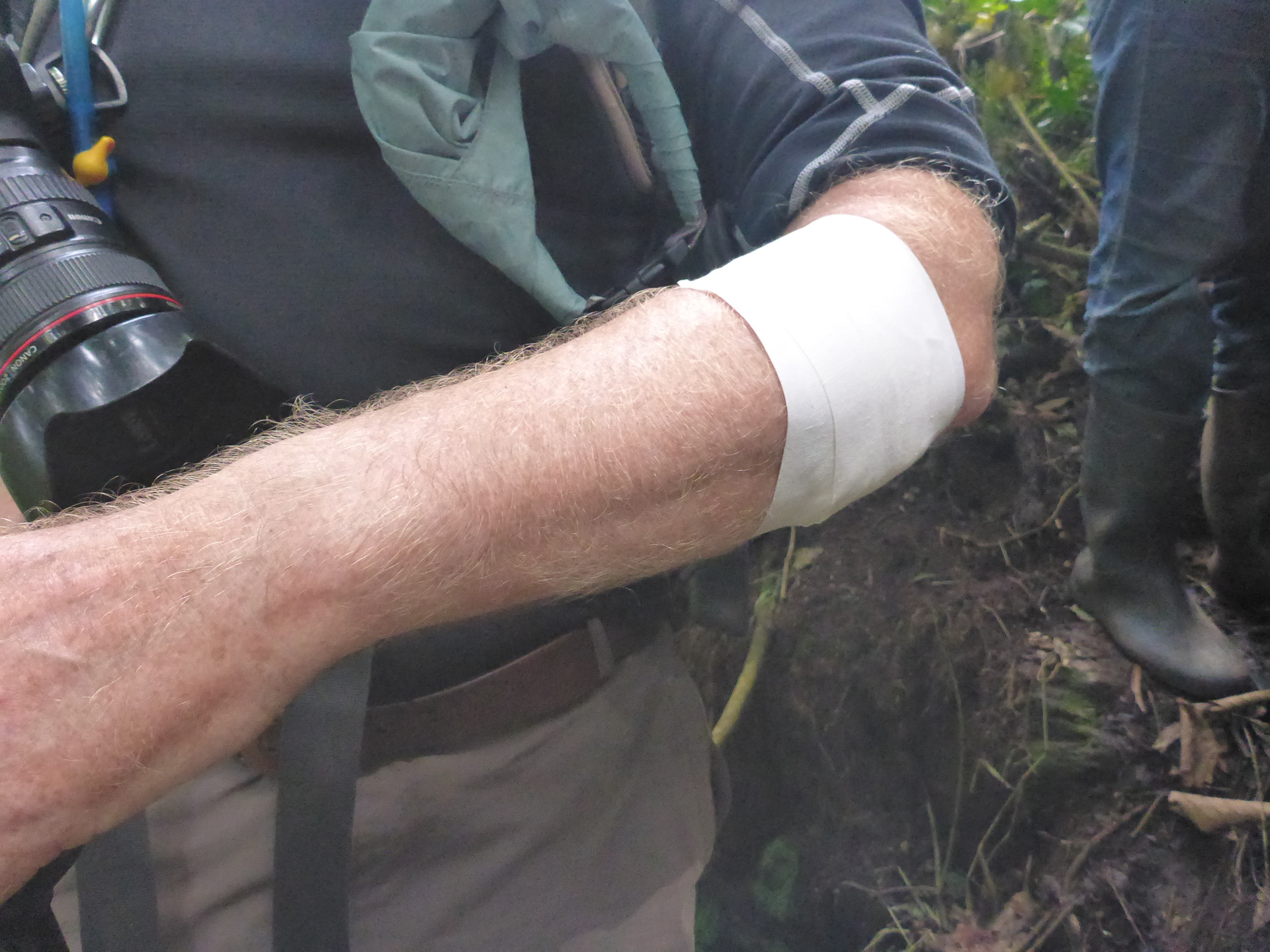 Nigel was fairing much better prompting Sue to comment that when he falls he will make a good job of it. He did. Falling onto a bamboo sapling and impaling himself on the broken stick. With blood pooling on the ground one guide helpfully presented an elastoplast. He was shooed away by Claire who stemmed the flow of blood with toilet paper and a generous amount of sticky tape.