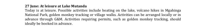Anticipating a hard trek to see the gorillas we had planned a lazy day today. We ignored all the suggested activities including boating on the lake and hiking up volcanoes and opted for a short walk to admire the views and then watched the sunset from the bar.