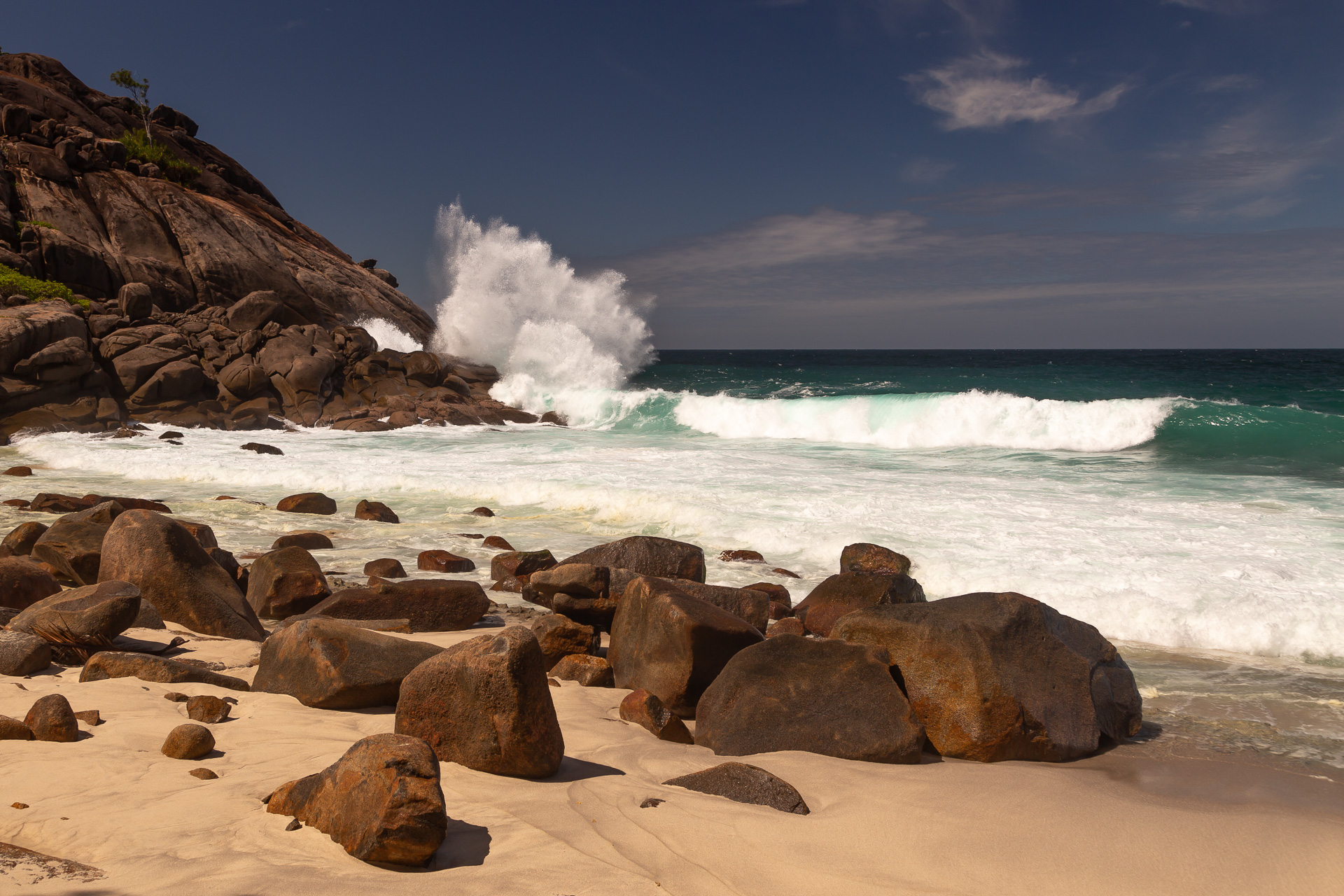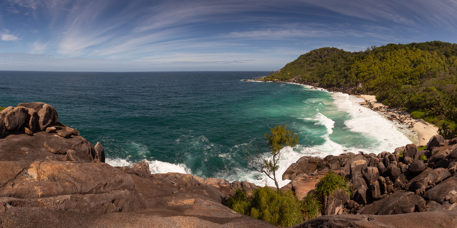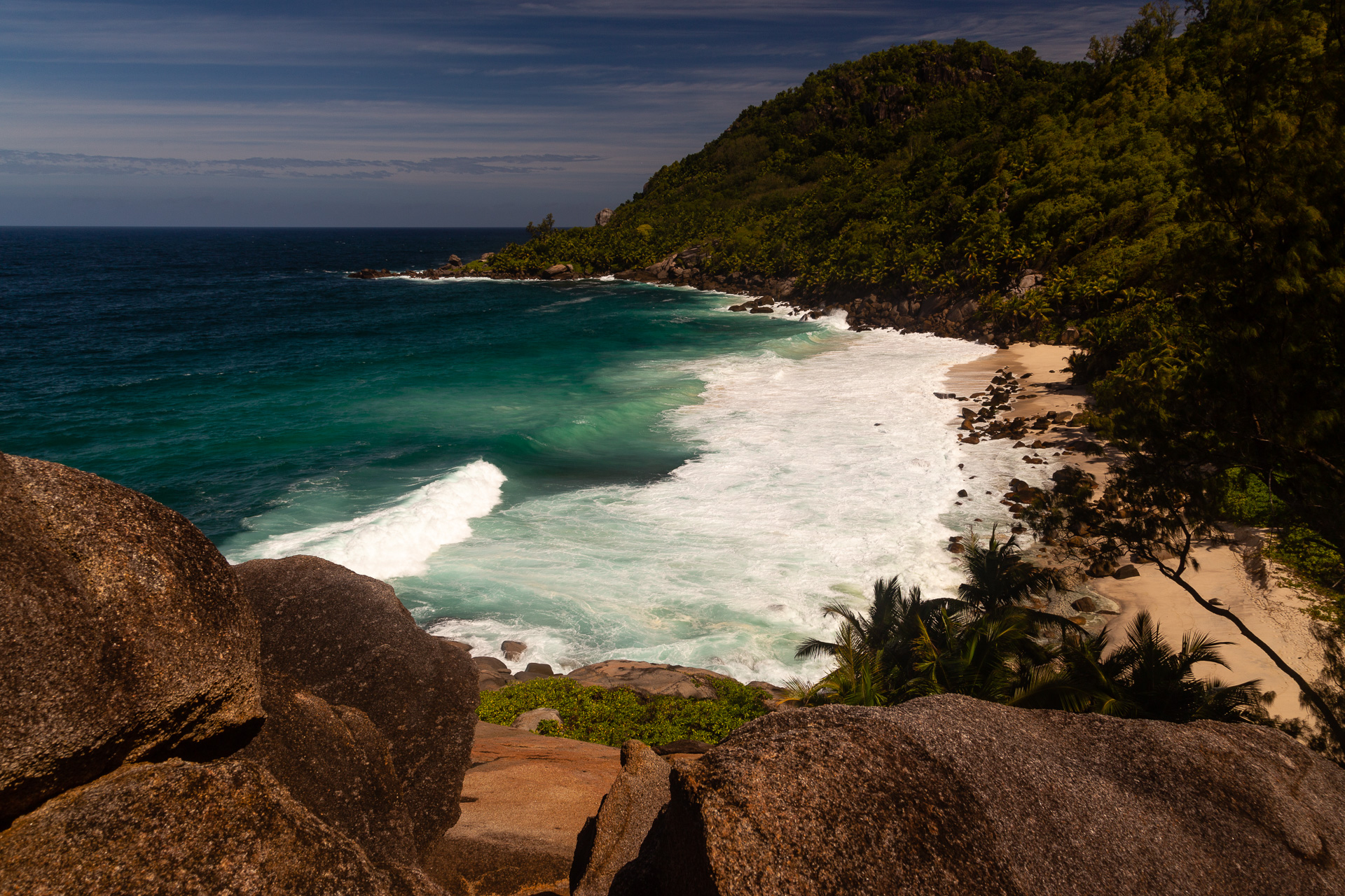 This deserted beach on the south-eastern tip of Mahe can only be reached by an hour long trek through the rainforest.