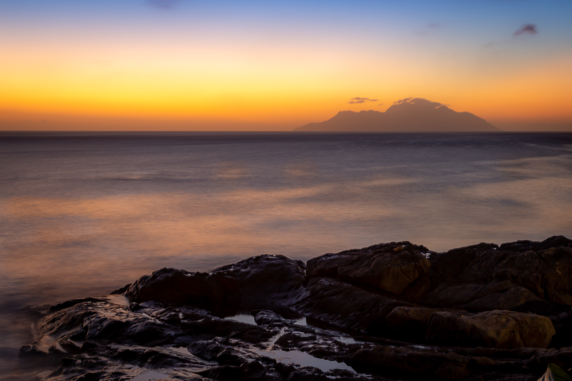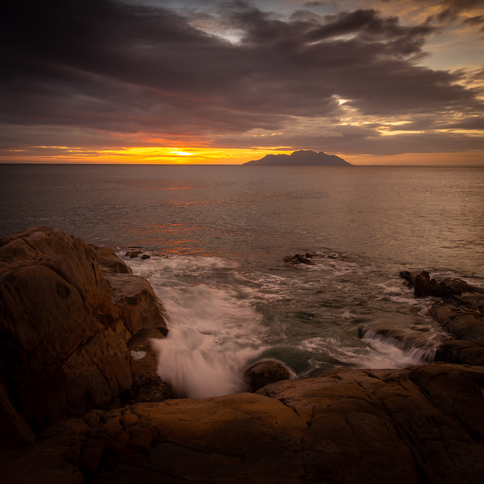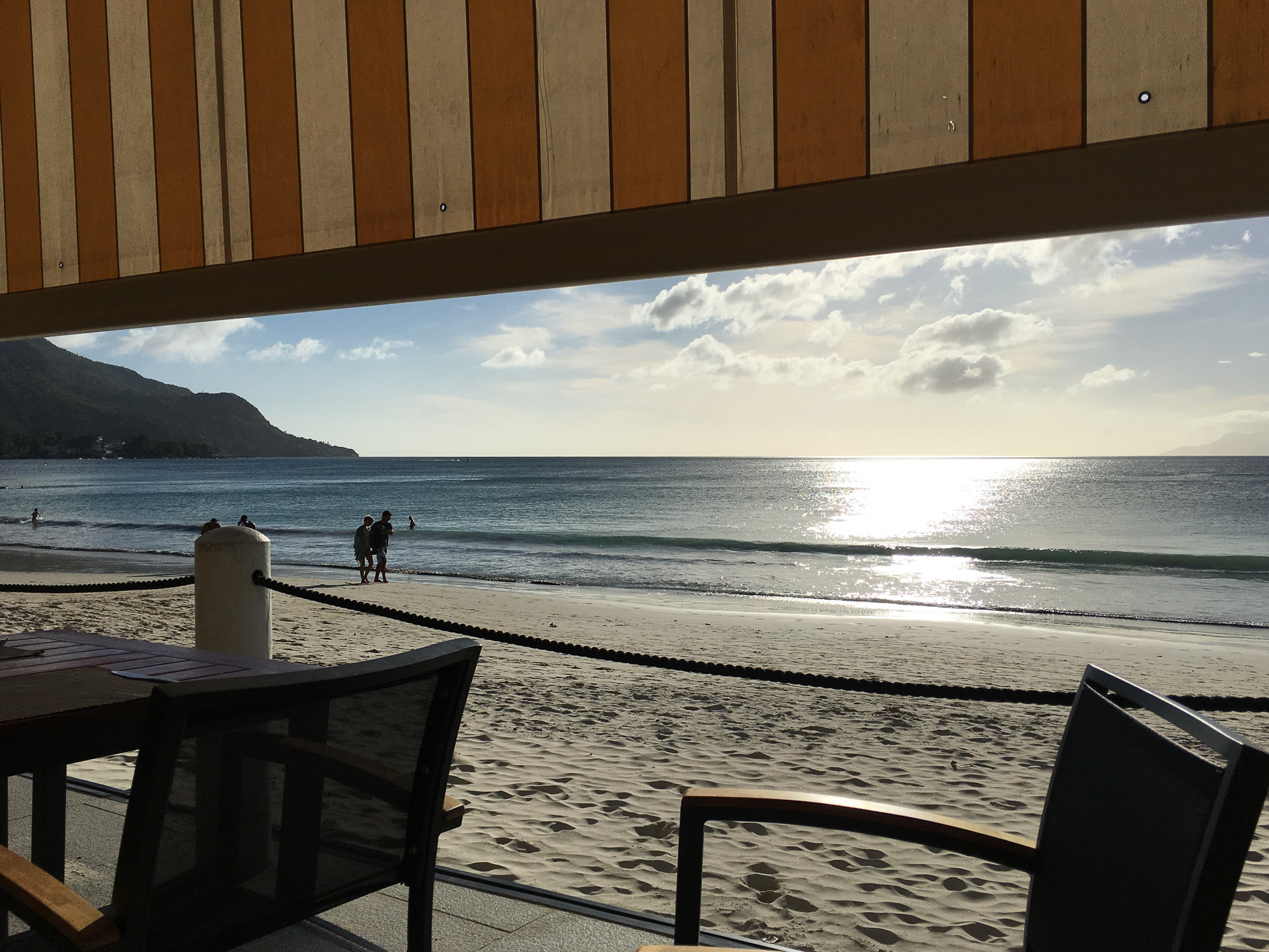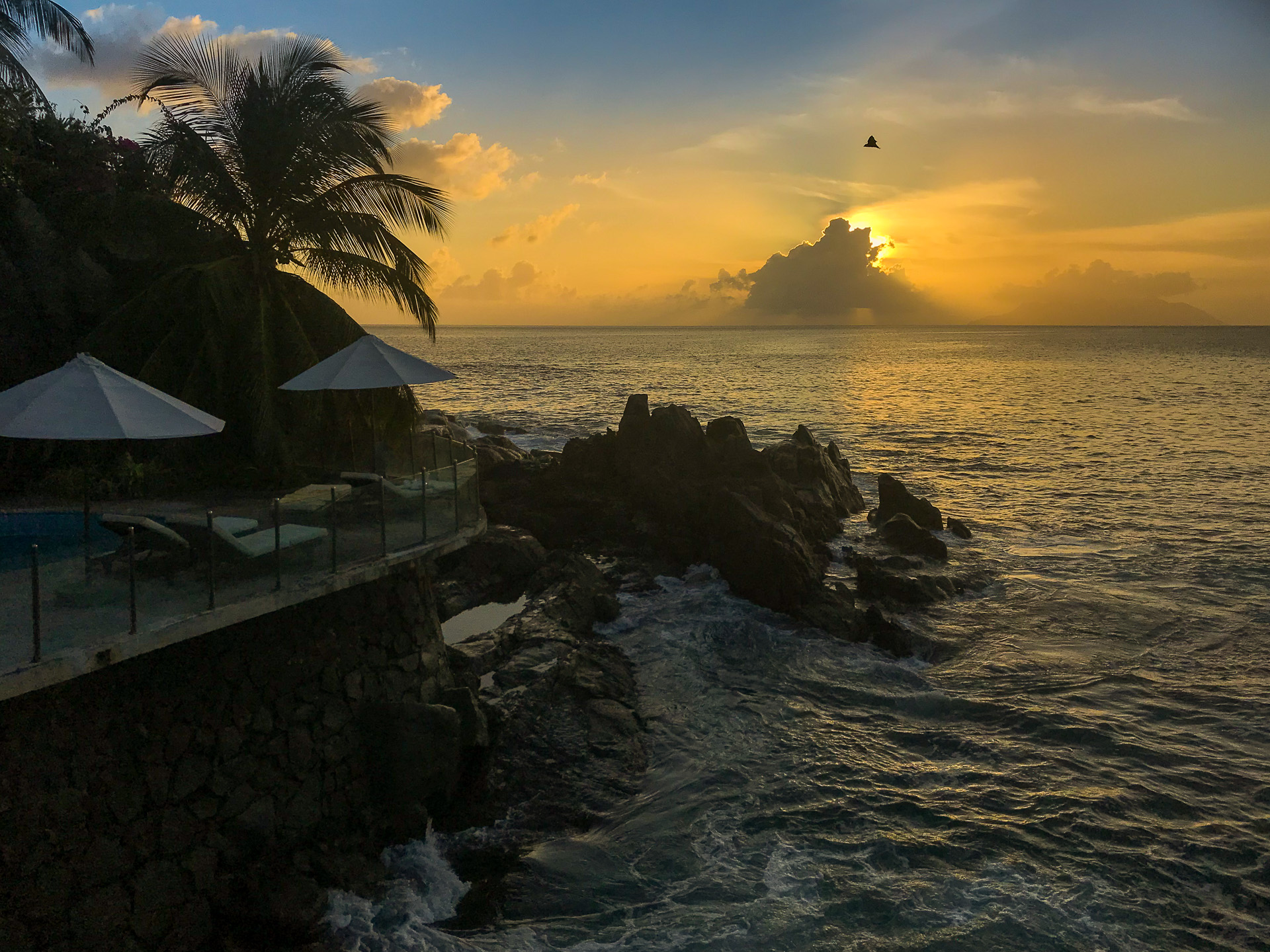 The aptly named Silhouette Island helped frame the fiery sunsets on the rocks below our room. We seemed to be here in time for drinks at the end of most days.