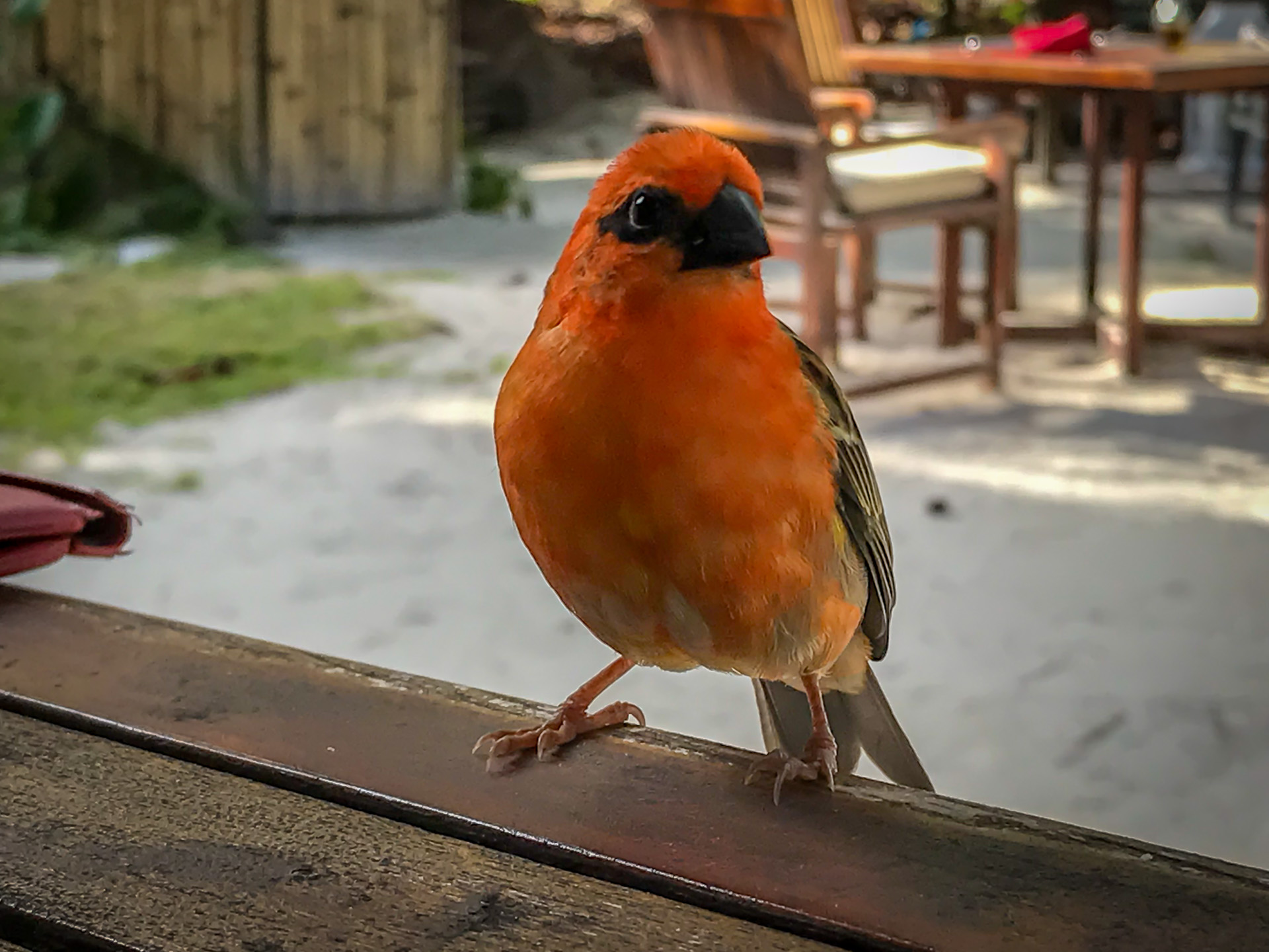 We ended up in a beach hotel where we were served the worse meal of our trip. The consolation was the cheeky red fody who was determined that we were going to share some dinner with him.
