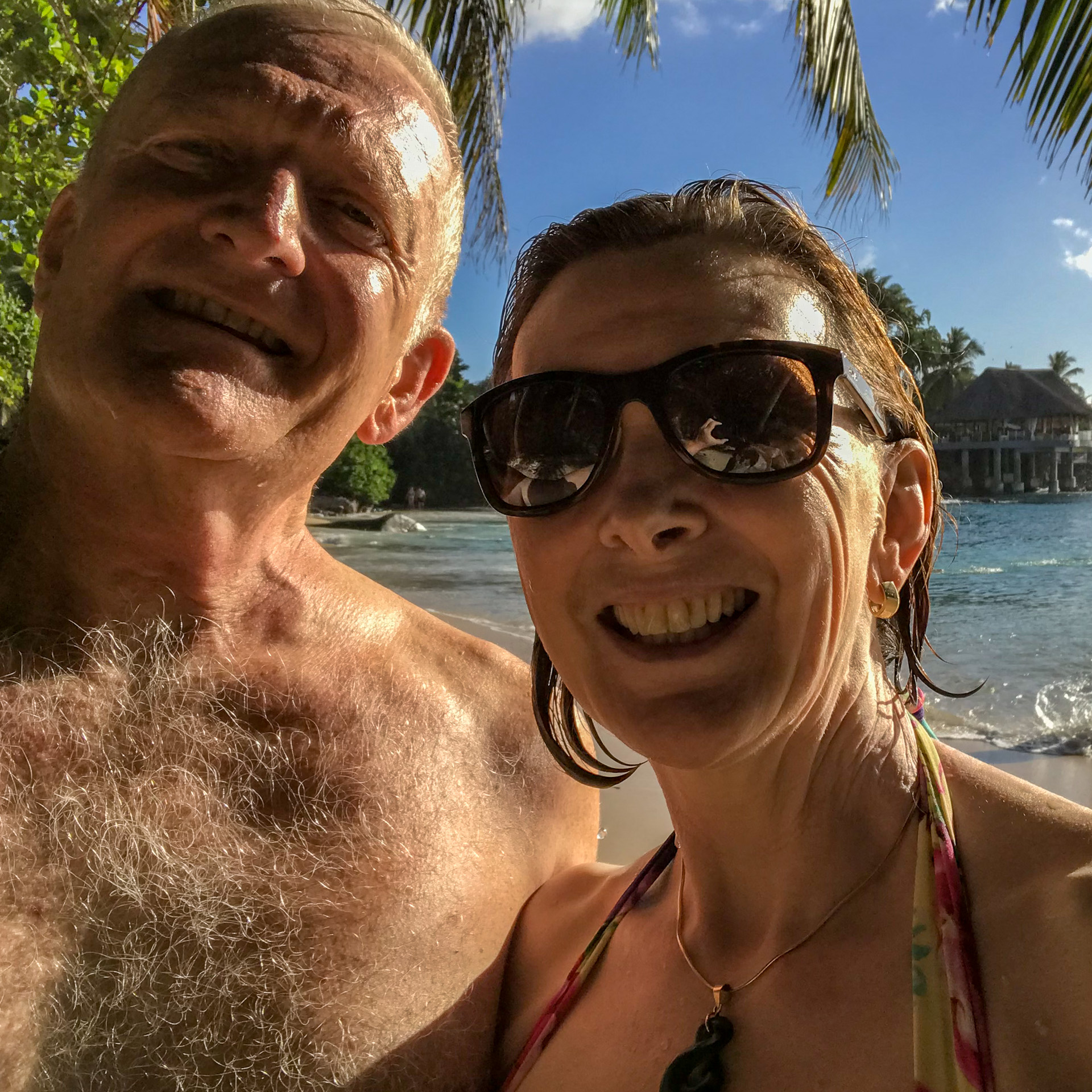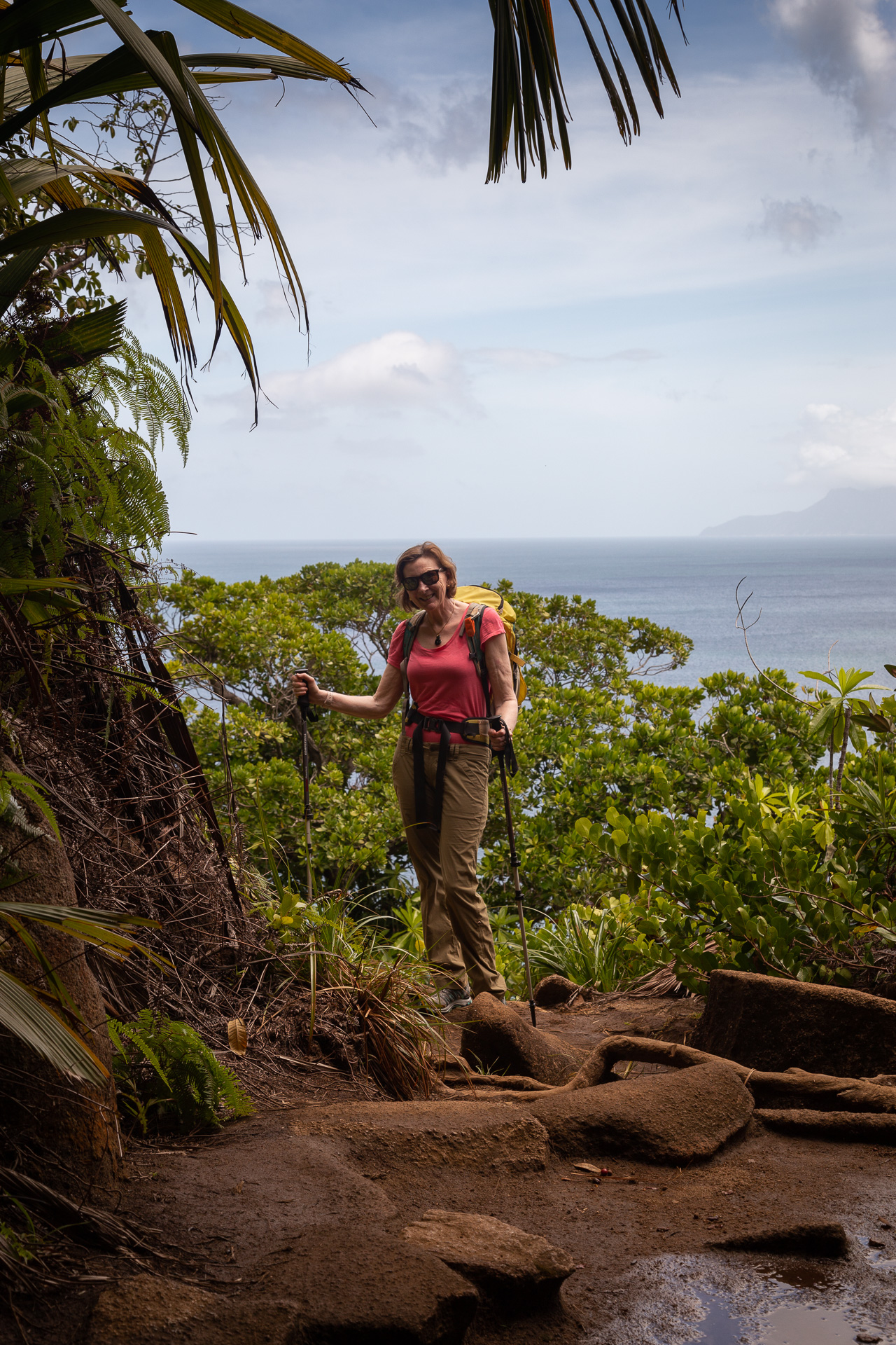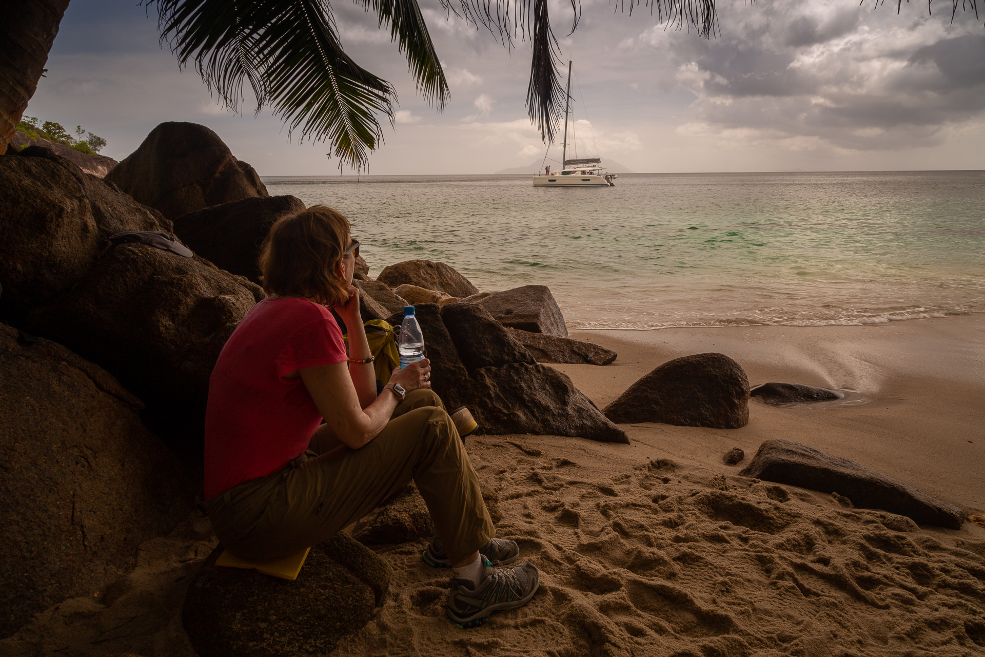 Anse Major can only be accessed by boat or an hour long coastal path. We took the the scenic path but the catamaran moored off the beach obviously had Sue dreaming of an alternative holiday.