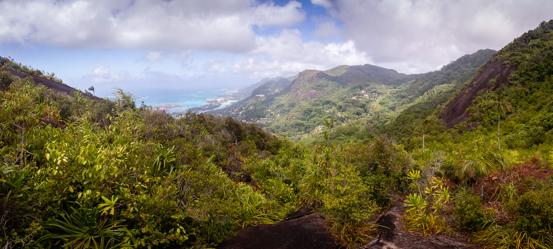 The Trois Frères (three brothers) are the three towering cliffs above Victoria. This path climbed to 700m to give commanding views over the capital city.