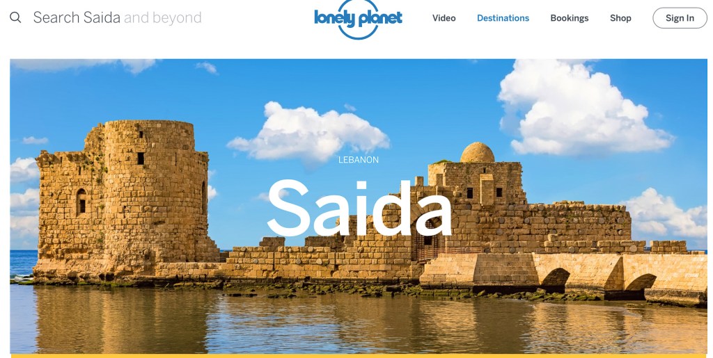 On the the second day of sightseeing we headed south, about 50 km south of Beirut, to Saida, apparently Lebanons third largest city. Similar to Byblos, in that it was once an important Phoenician port and much later became a strategically important base for the Crusaders. It was the picturesque Crusader castle, built to protect the harbour, that tempted us to Saida. Below is the image on the Lonely Planet website https://www.lonelyplanet.com/lebanon/south-of-beirut/sidon-saida.