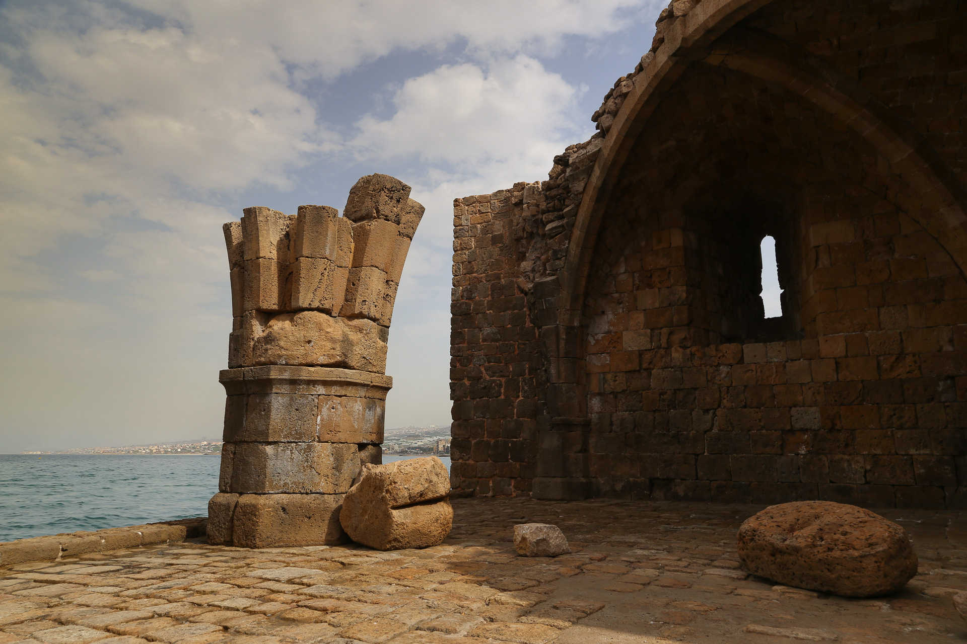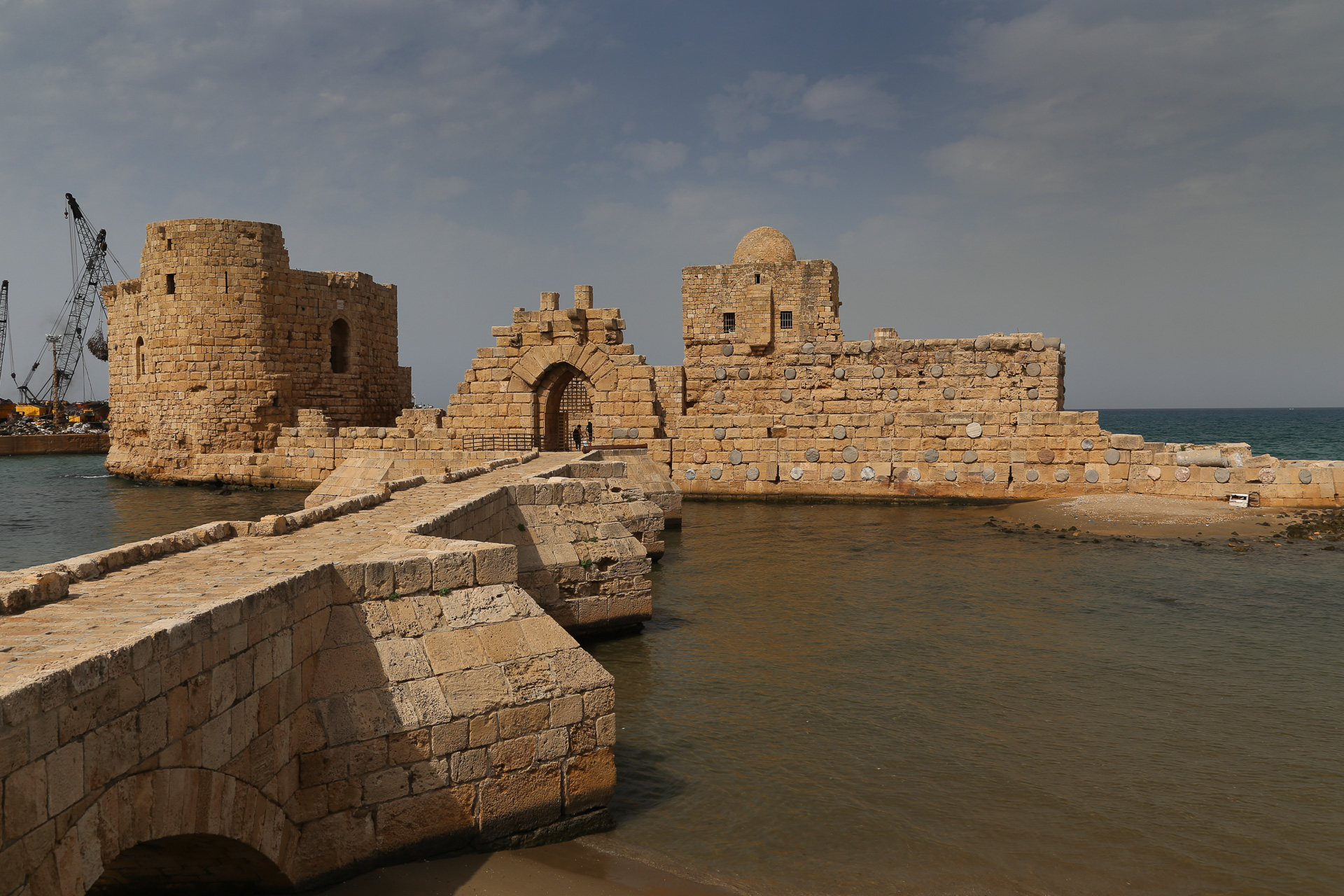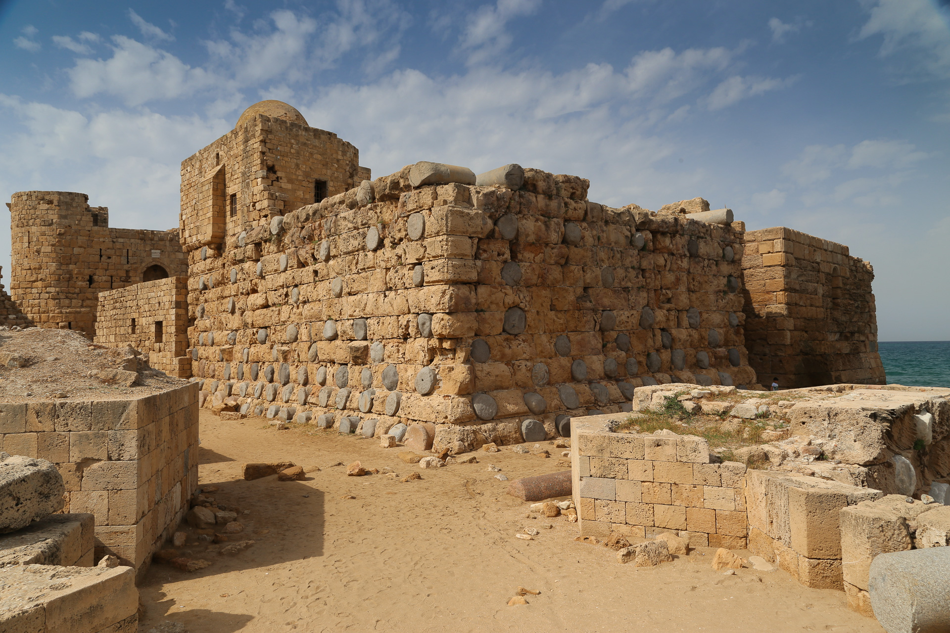 The castle was built by the Crusaders in 1228 on a small island that had been the site of a Phoenician temple. This meant that the Crusaders were once again able to demolish rose-granite pillars to strengthen the walls of their fortress.
