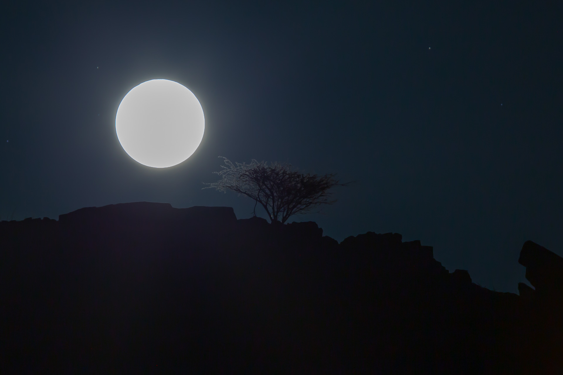The PhotoPills app on Nigel’s phone allows him to calculate exactly where the moon will rise. He planned a spectacular shot of the moon rising behind a lone tree on top of a hill. Unfortunately, the moon was not cooperating (or the app needs to be calibrated) and decided to rise a little to the left. Next time he will be ready for it.