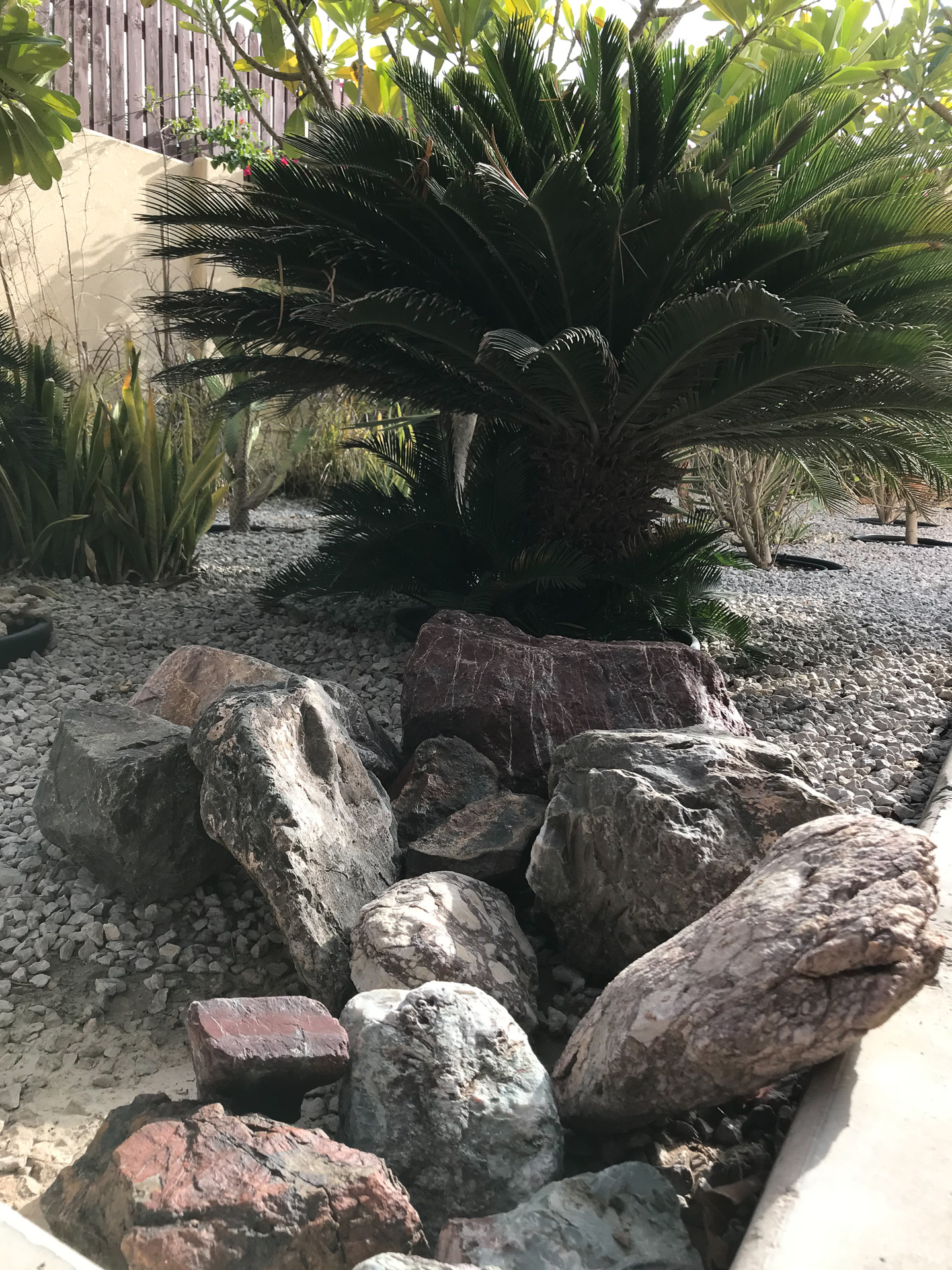 Too easy. Something more tactile was required. A rockery made from Omani rocks would be perfect. We will simply collect a few of the water smoothed, colourful boulders from the dry wadi bed each time we visit.