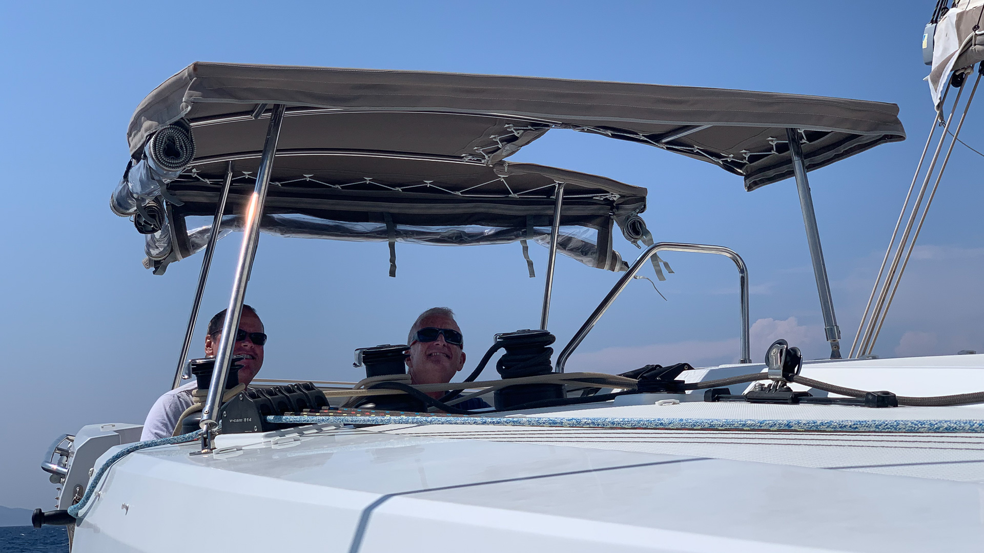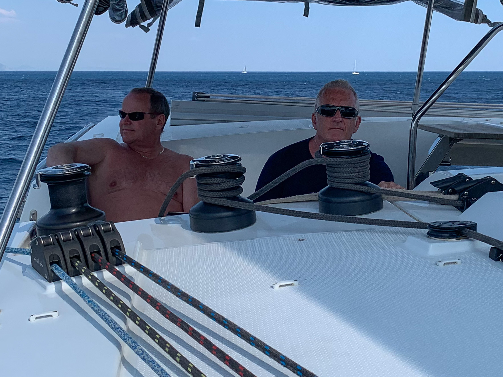 But first we experienced some downwind sailing and in the absence of a spinnaker (or any other downwind sail) got to experiment with wing-on-wing sail configurations. All good fun.