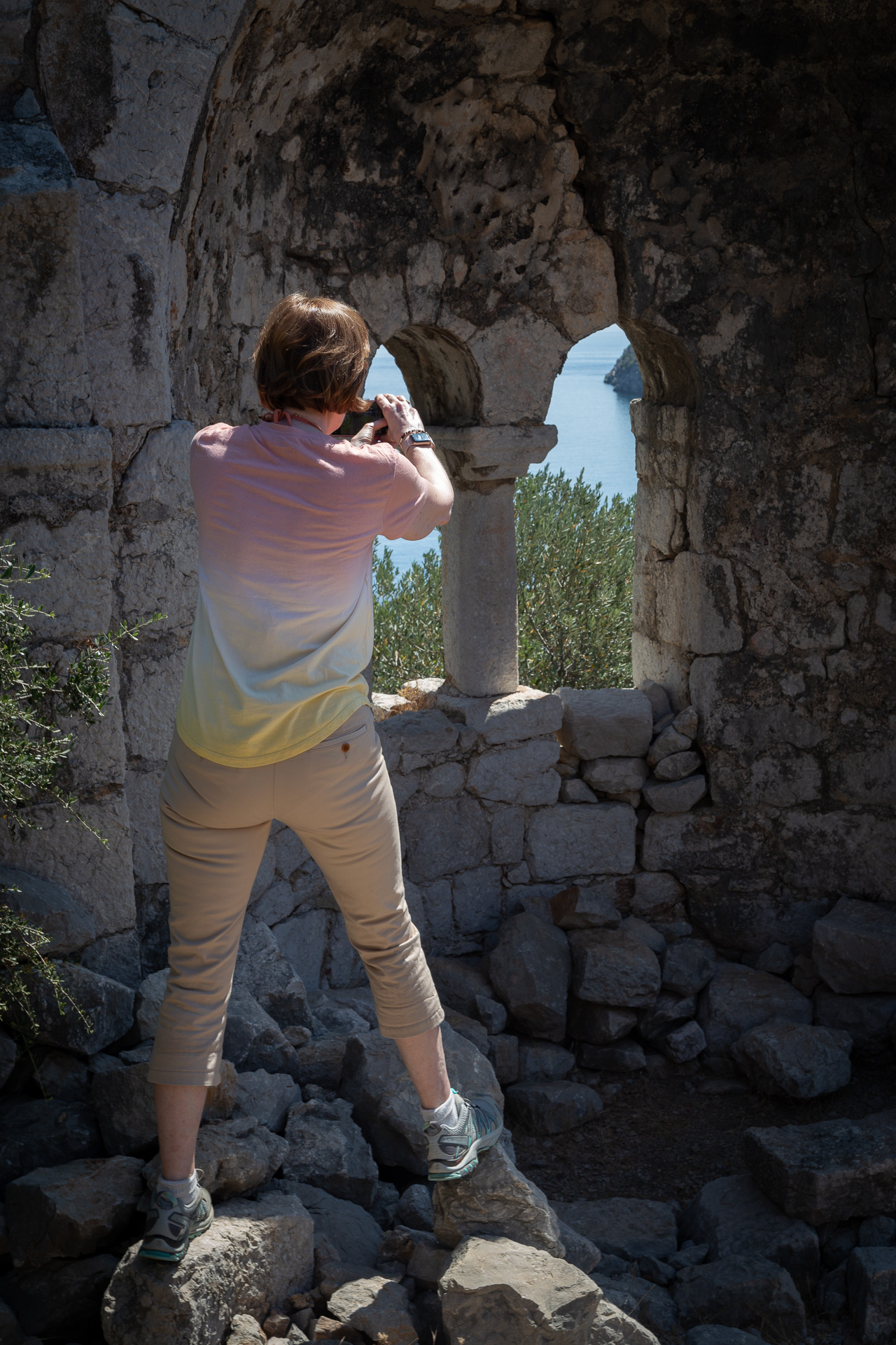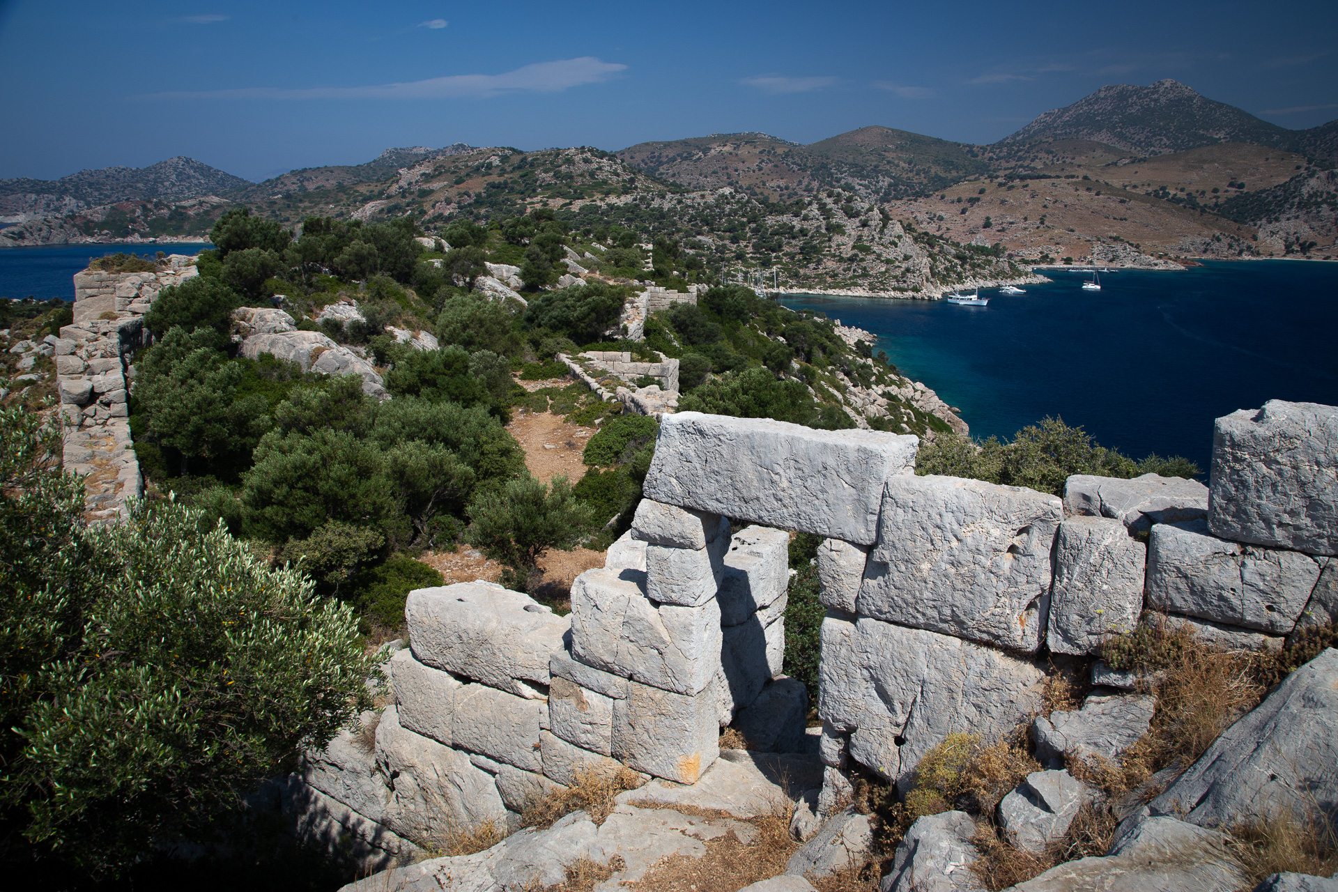 The next morning a local fisherman pulled up alongside and after a little bit of haggling we sorted our evening menu and then set off to explore the cove – beautiful views and more ruins of course.