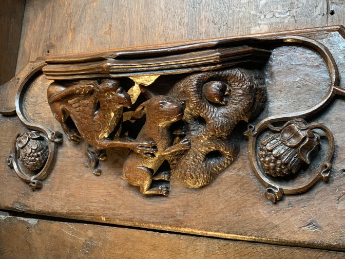 Another carving in the cathedral is said to be the Cheshire Cat and yet another is said to be Alice after she ate a piece of mushroom and shrank. Links to Lewis Caroll and his inspiration are also claimed by St Peter’s Church in Croft near Darlington, Llandudno and Oxford – curiouser and curiouser.