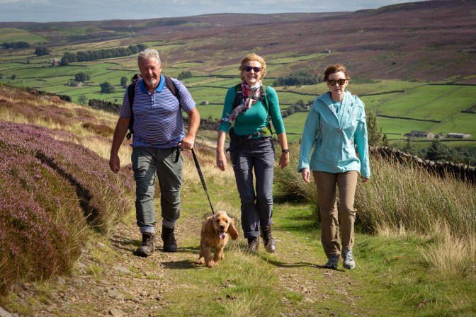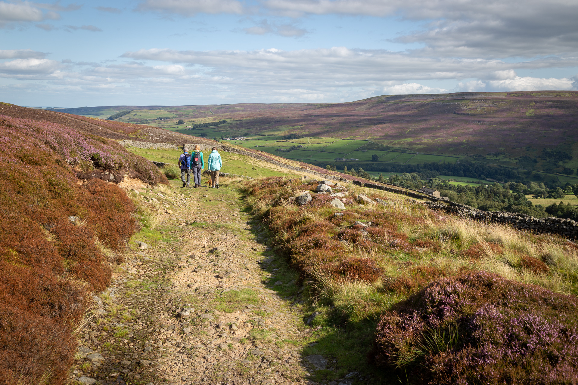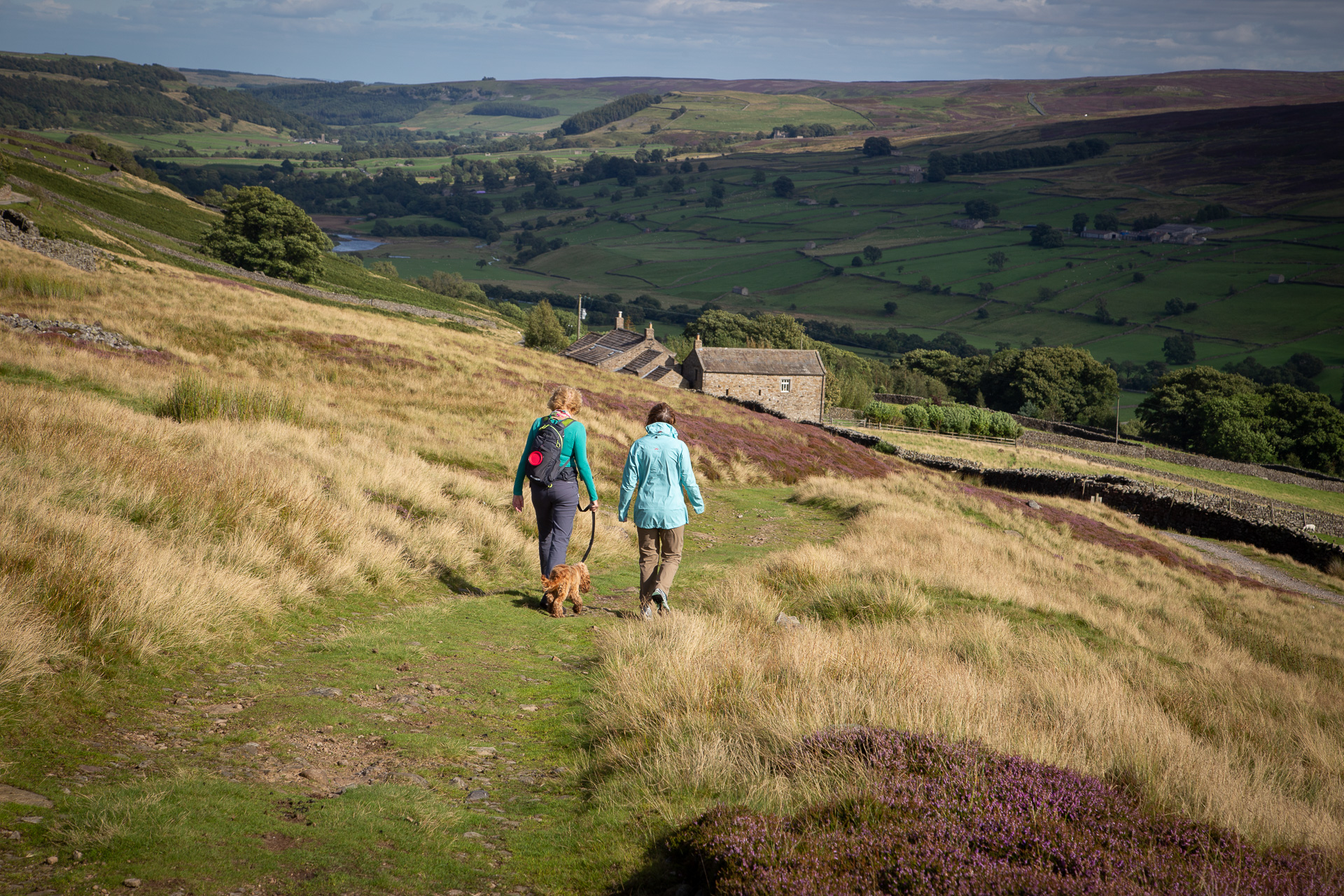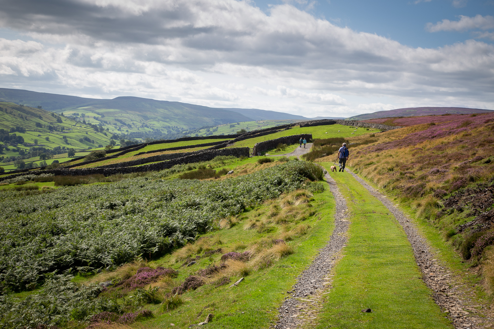 The Yorkshire Dales are beautiful and we have explored much of them but Sue and John (and their dog, Holly) are keen walkers and so have discovered many hidden tracks and bridleways that they were keen to share. Today we completed a figure of eight loop above the Saxon settlement of Reeth in Swaledale across purple heather covered moorland and back along the River Swale.