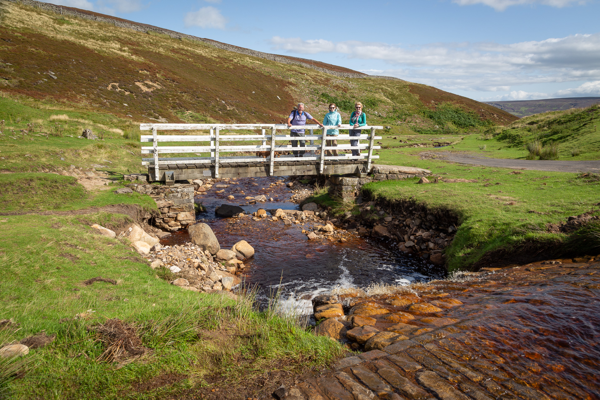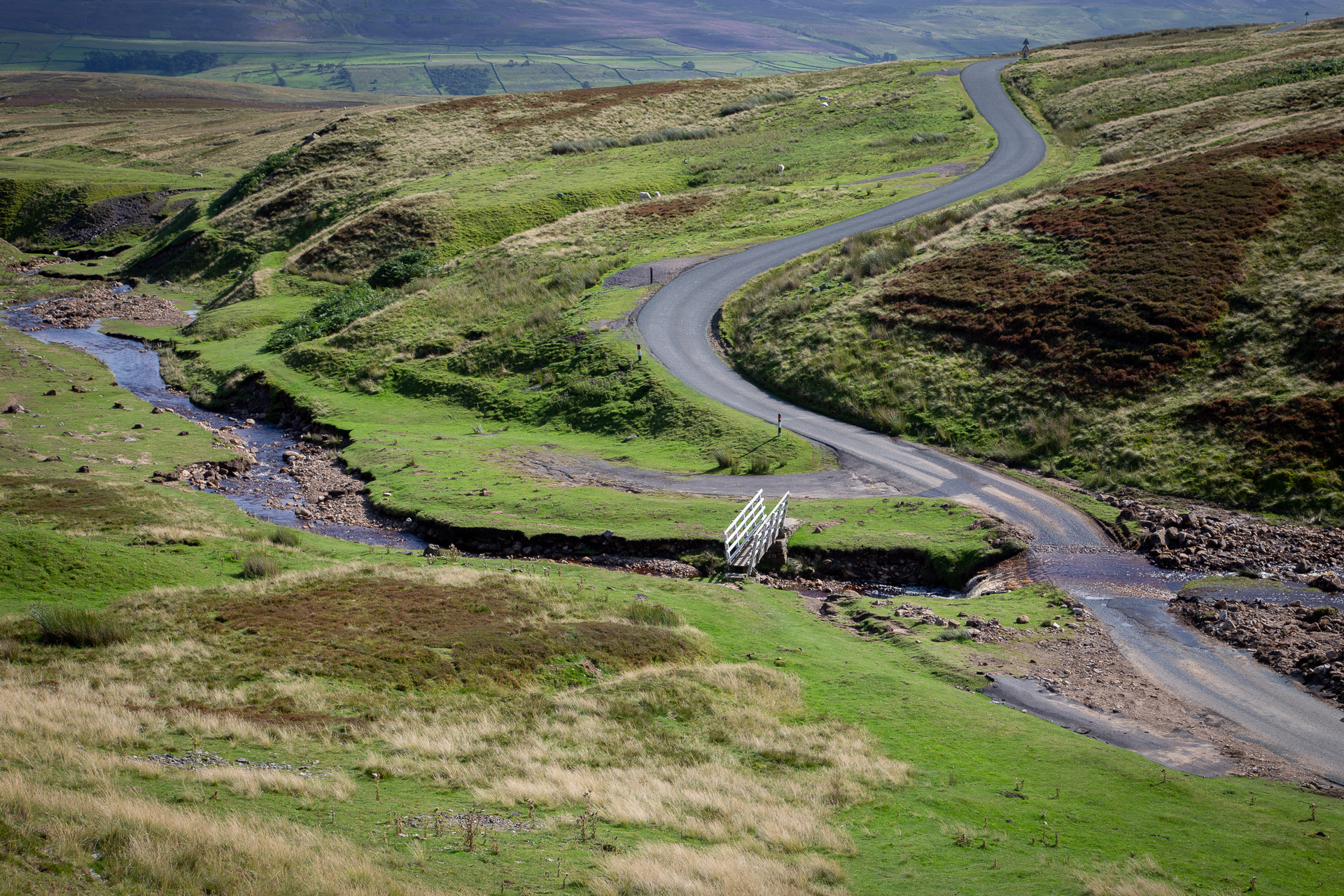 The scenery will be familiar to anyone that has seen the TV series All Creatures Great and Small. The ford with the pedestrian bridge featured in many episodes. Today it revealed evidence of the torrential rain and resultant flooding that had recently created havoc in the area. Rock debris was scattered all around and the road was badly damaged in places. We had driven in on a much longer route to avoid a road closure as a result of a bridge being washed away. The consolation was that we got to drive through the delightfully named ‘Arkengarthdale’.