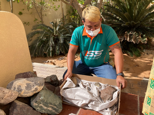 The most bizarre item to somehow fall through the useful/valuable sieve was the Omani rock collection (see https://weatherislovely.com/2019/02/16/moving-a-mountain/). Nigel has always expressed a certain ambivalence to shipping rocks but Sue is determined to have a water feature with a reminder of our camping trips to the mountains of Oman. The packers dutifully parcelled them all up.