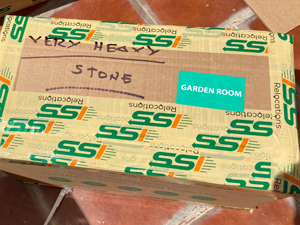 The most bizarre item to somehow fall through the useful/valuable sieve was the Omani rock collection (see https://weatherislovely.com/2019/02/16/moving-a-mountain/). Nigel has always expressed a certain ambivalence to shipping rocks but Sue is determined to have a water feature with a reminder of our camping trips to the mountains of Oman. The packers dutifully parcelled them all up.