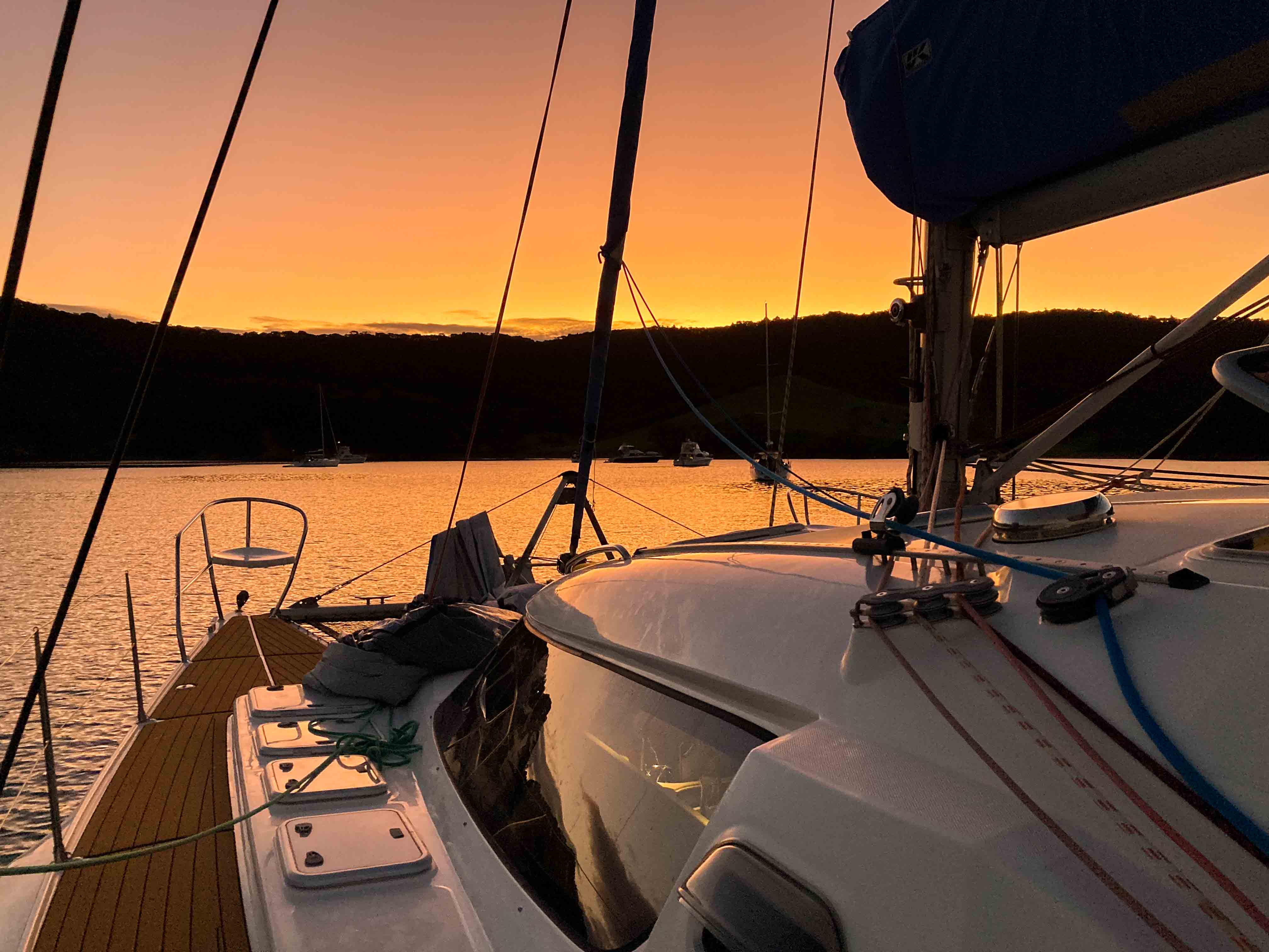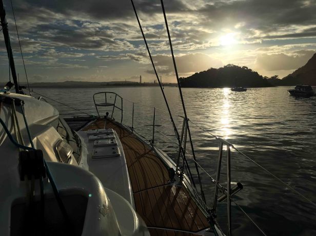 Another fabulously calm anchorage and Sue was very happy to stay in bed again the next morning while Nigel raised anchor and got us on our way back to Taurikura while witnessing yet another glorious sunrise.
