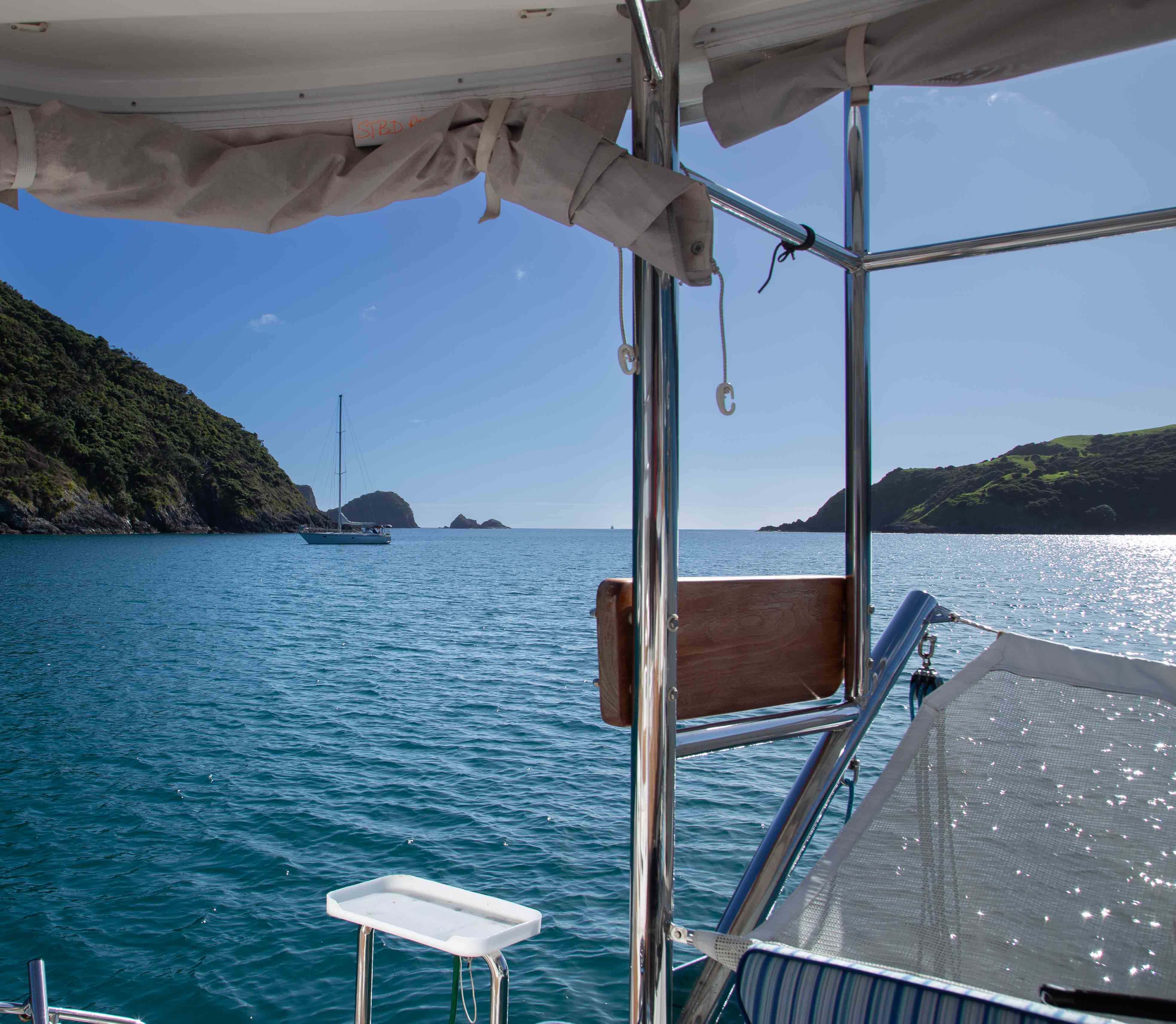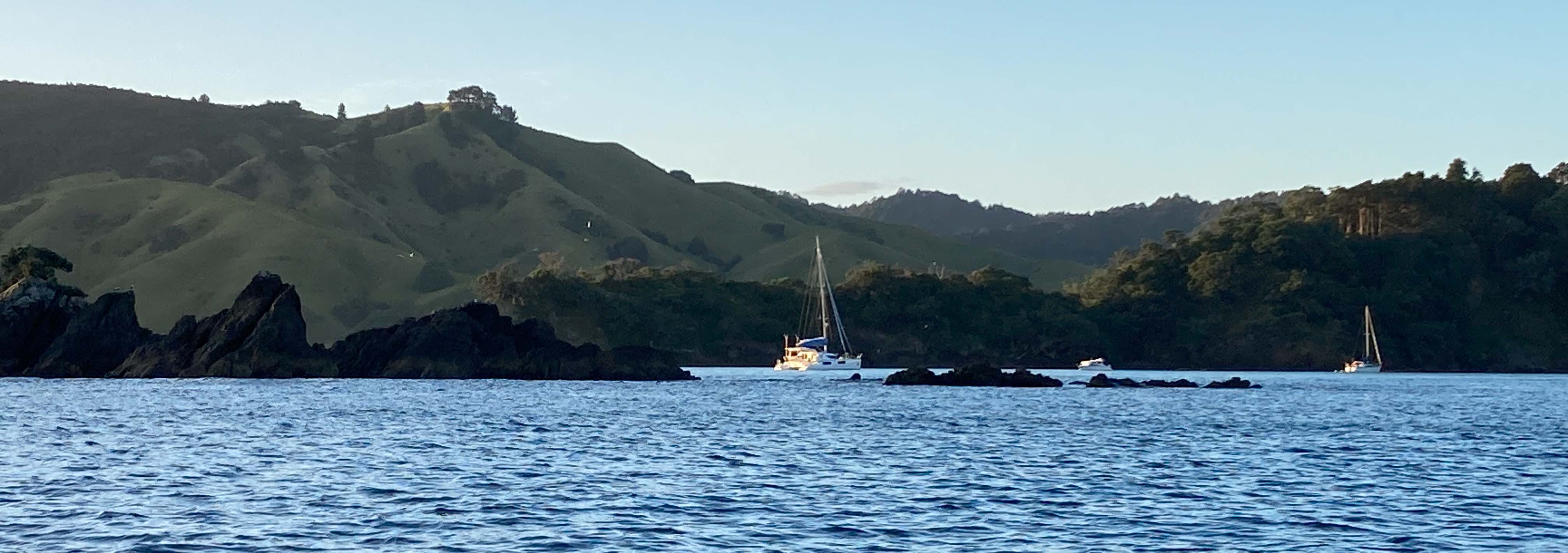 Even with our go faster Code 0 we were really going too slowly to make it to Bland Bay so we opted to head into Mimiwhangata instead. It was beautiful. We headed into the north west side of the bay where a small island gave shelter from the easterly swell and settled in for a lovely calm evening in which to enjoy sundowners lounging on the the trampoline.
