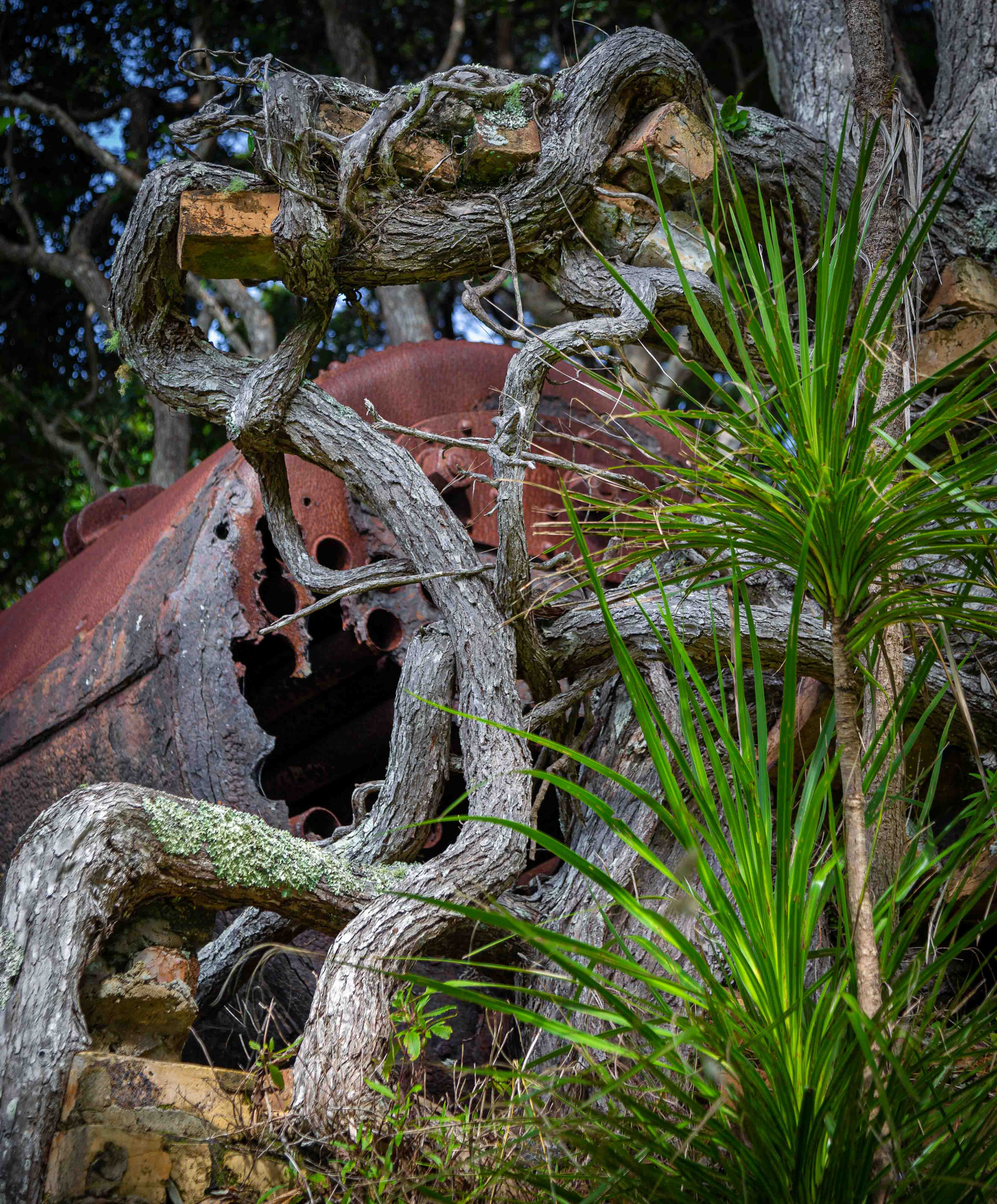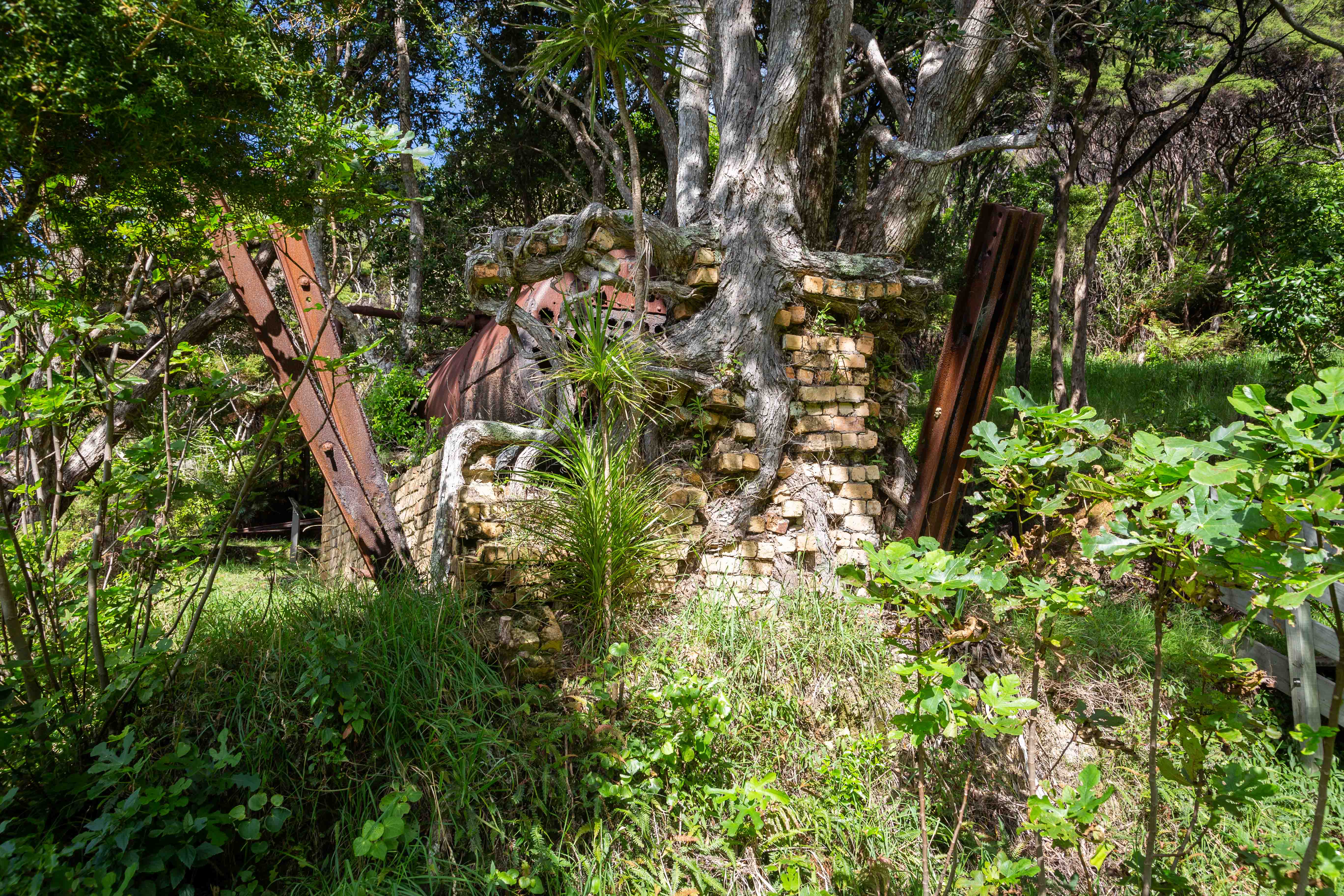 We spent a few hours ashore exploring the ruins and marvelling at the way nature is reclaiming the site. A pohutakawa tree, in particular, is doing a great job of dismantling the brick wall surrounding the old boiler.