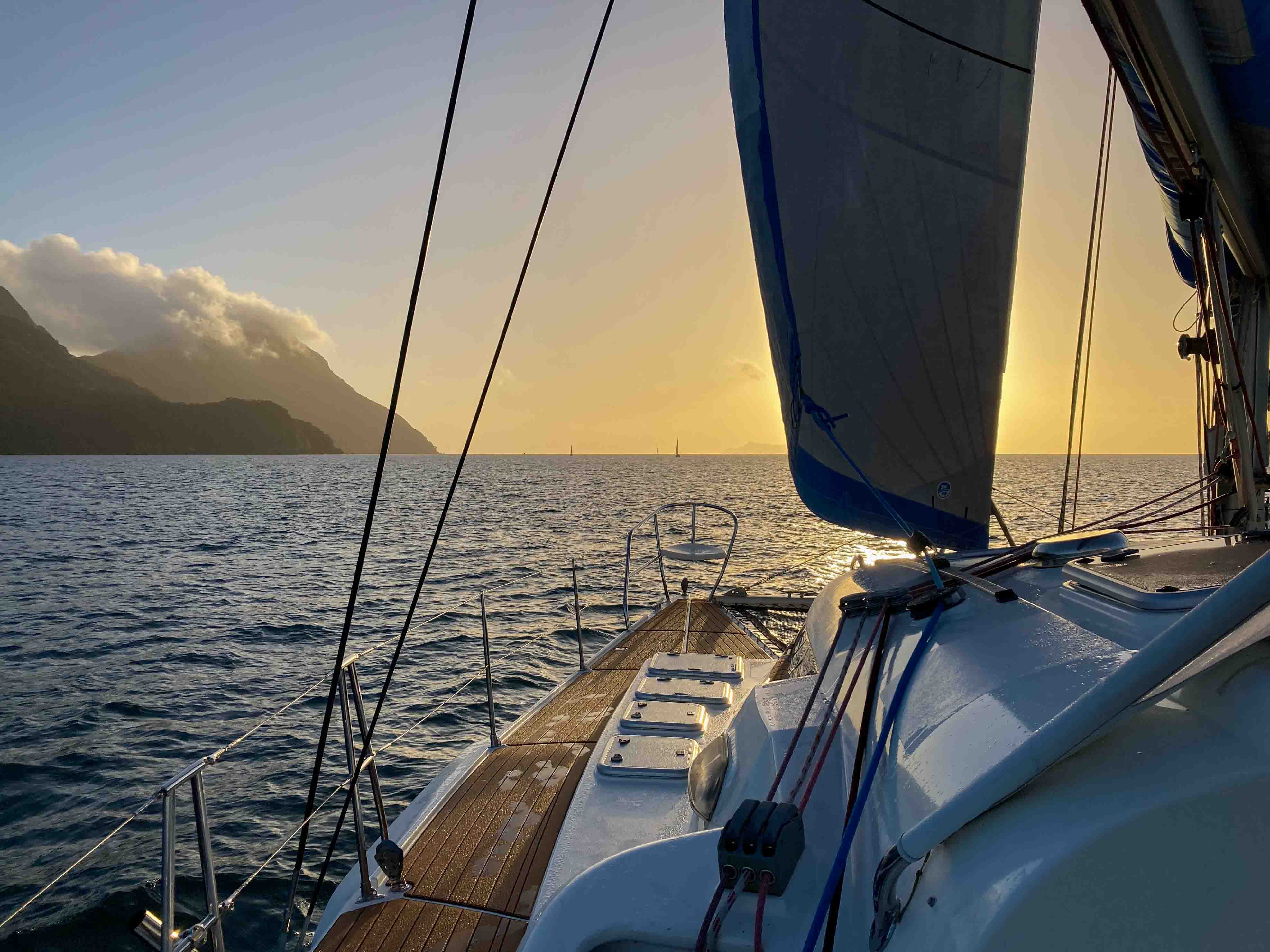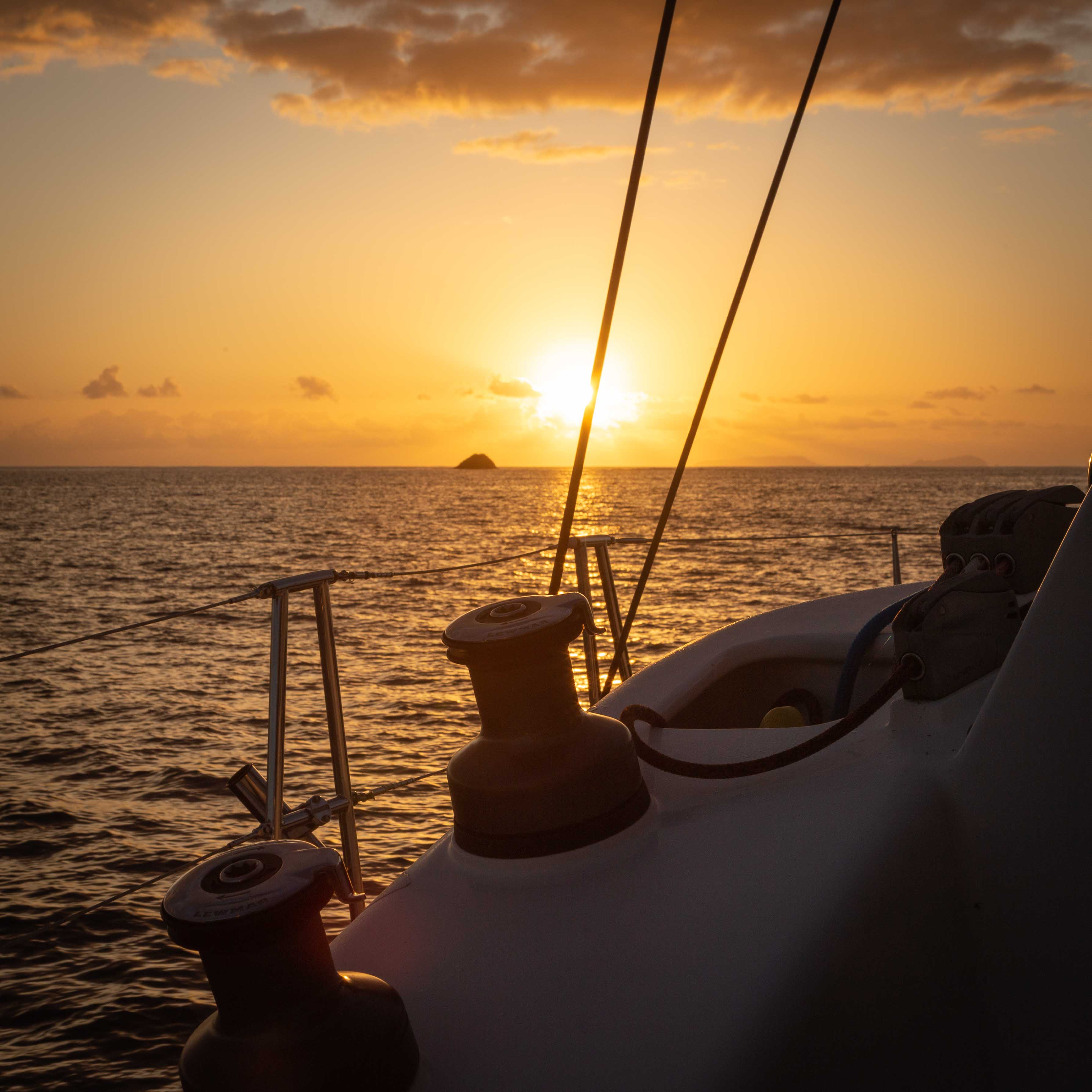 By the time the inevitable moment to lower the mainsail arrived, Nigel had learned how to tie a rolling hitch and his new knot tying prowess was utilised to take the strain off the halyard while the worn piece was carefully threaded back through the jammer. We’ll worry about what to do tomorrow when it arrives.