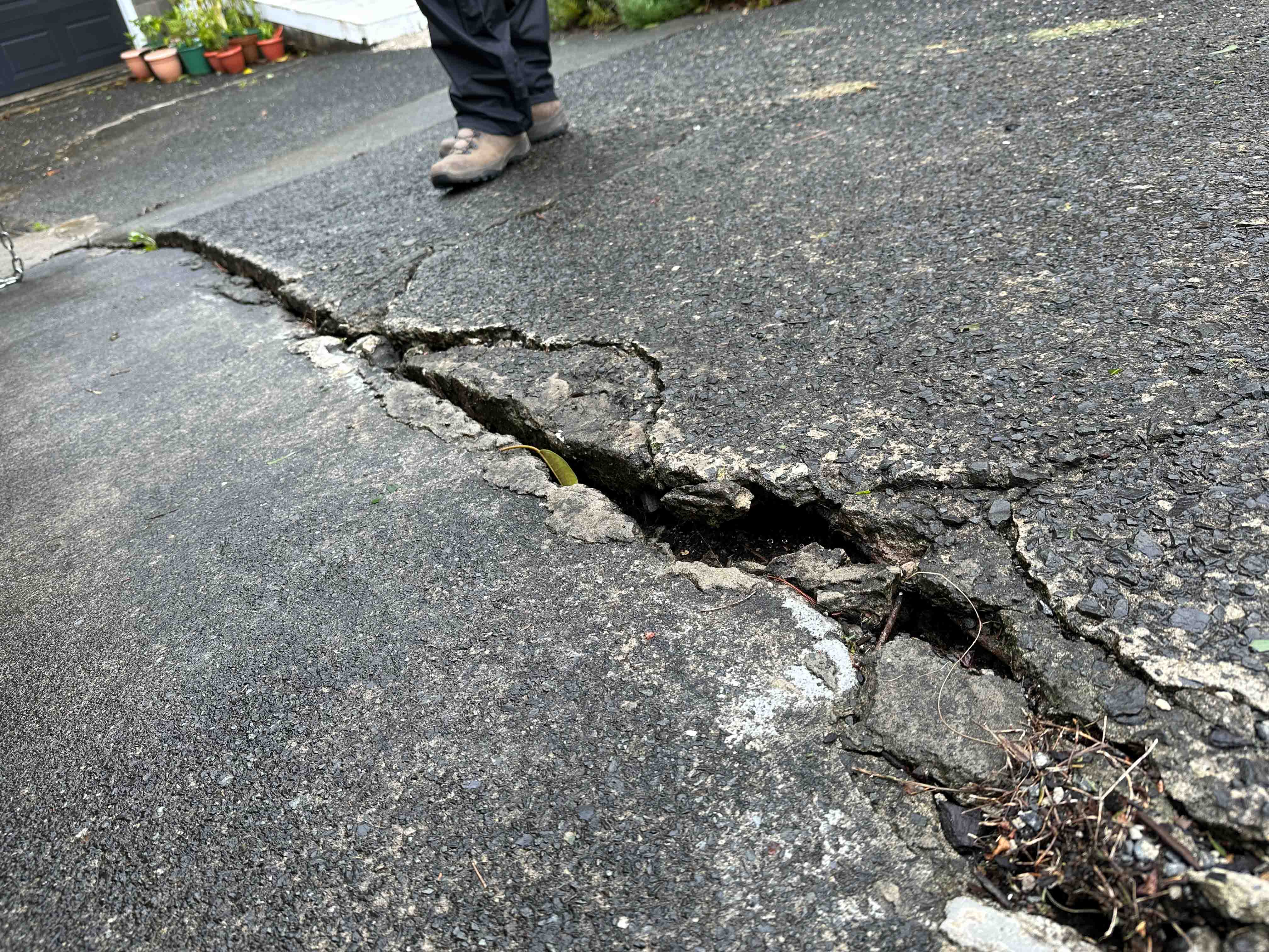 The movement has continued. The road especially, is much worse than in the photograph above and we notice new cracks in the house all the time. The house below us has fared even worse. Their whole structure is now a parallelogram rather than a rectangle.