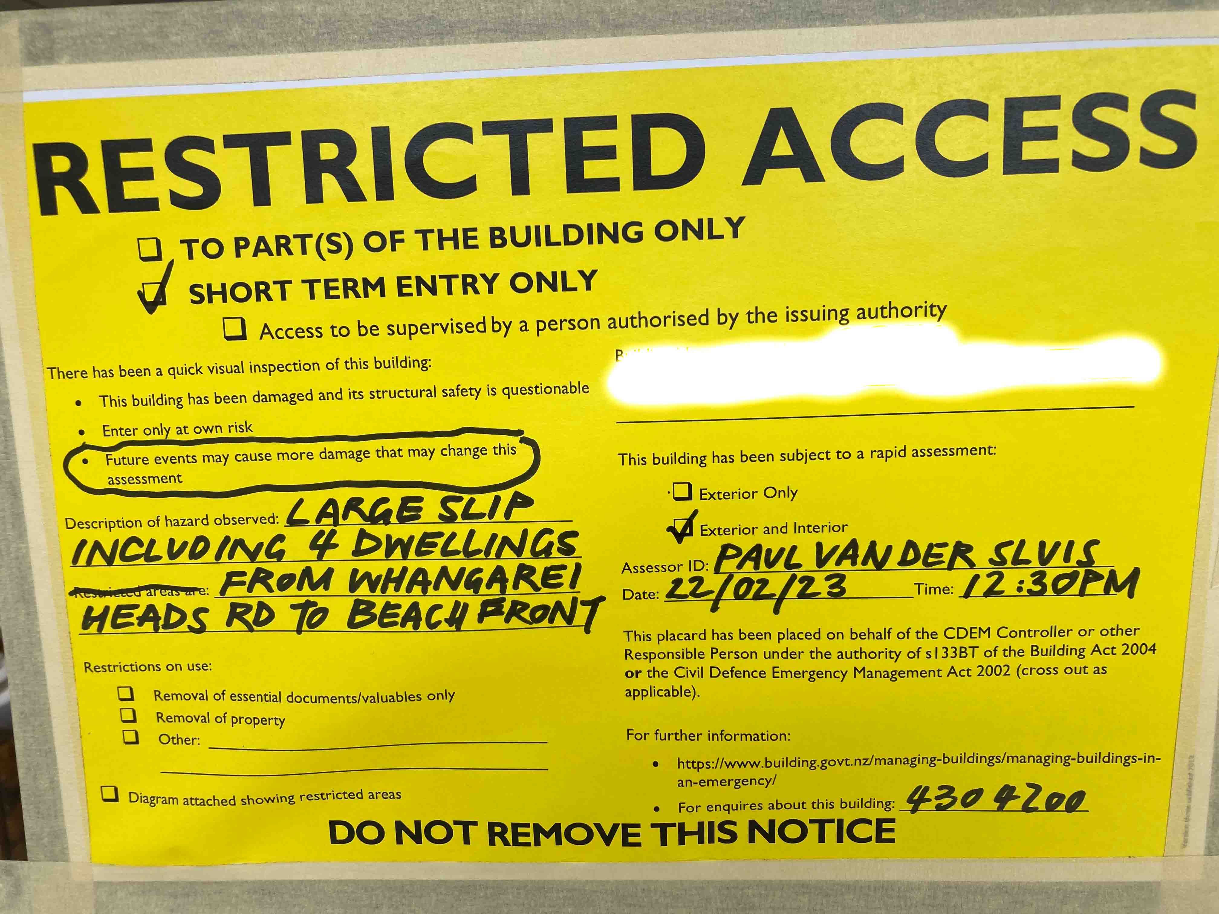 Council inspectors and geotechnical engineers came to investigate and we were told that the house was not safe to live in. They issued a yellow sticker which means that we are allowed to enter the building to retrieve belongings etc but we cannot live there.