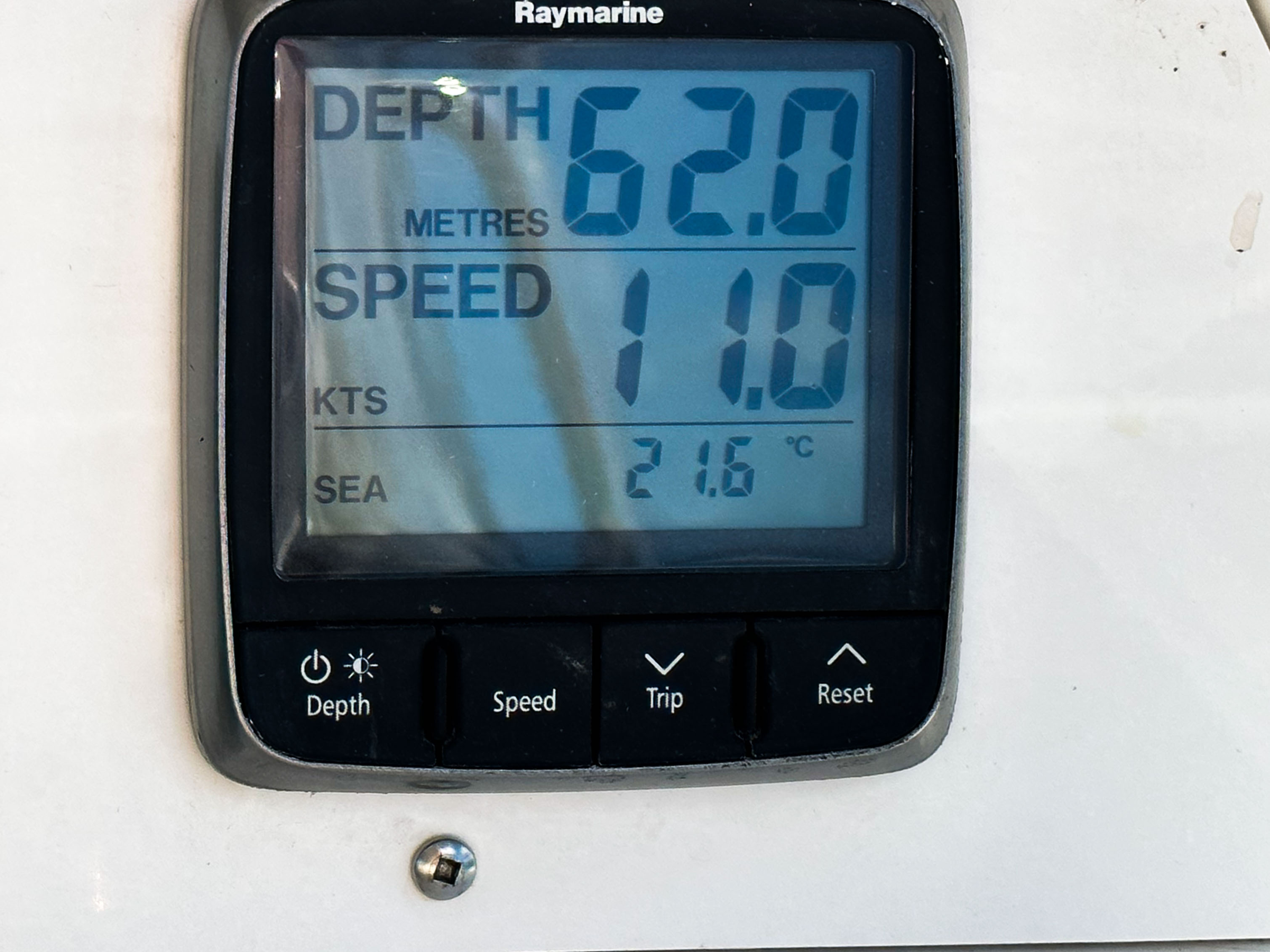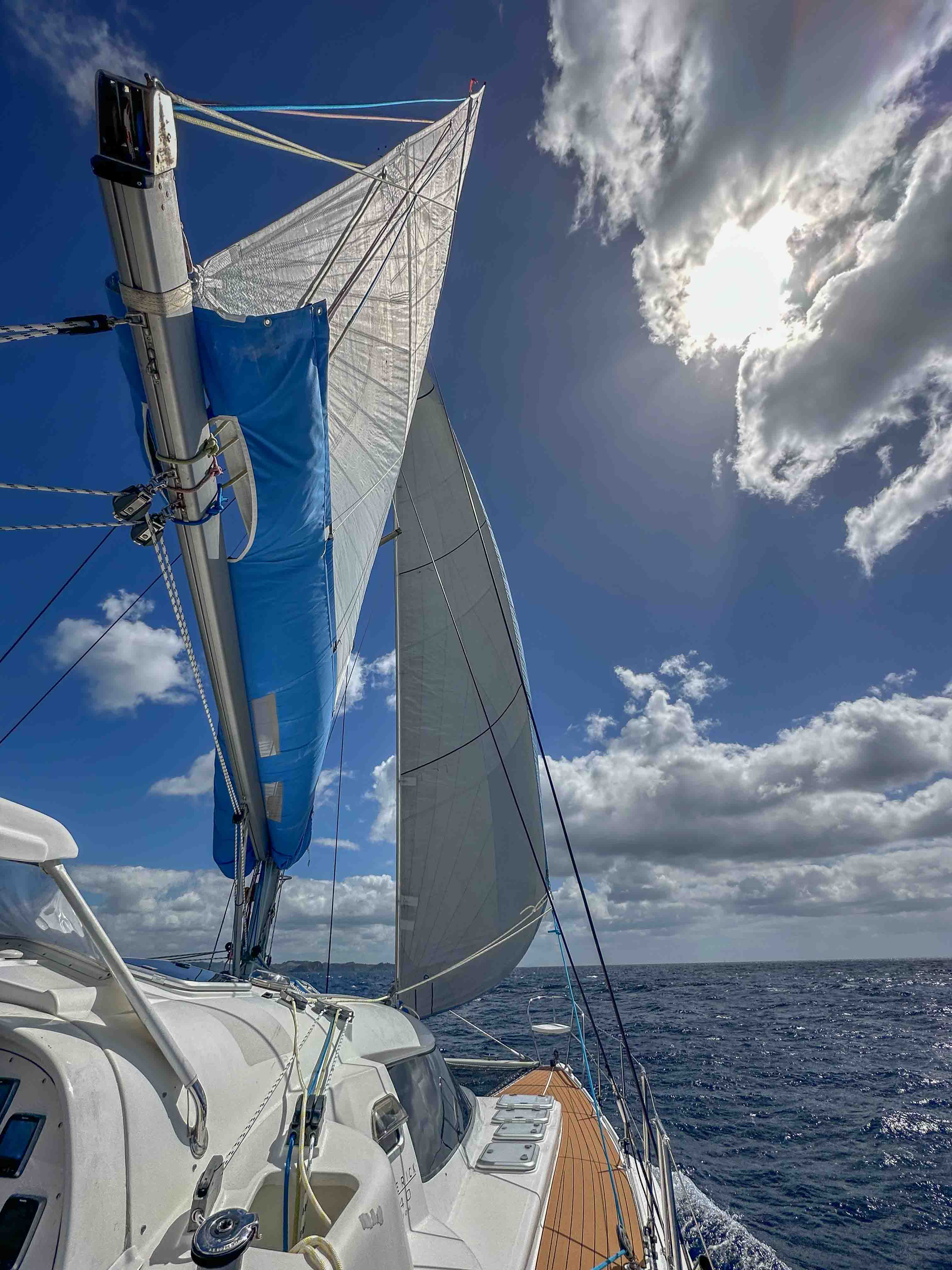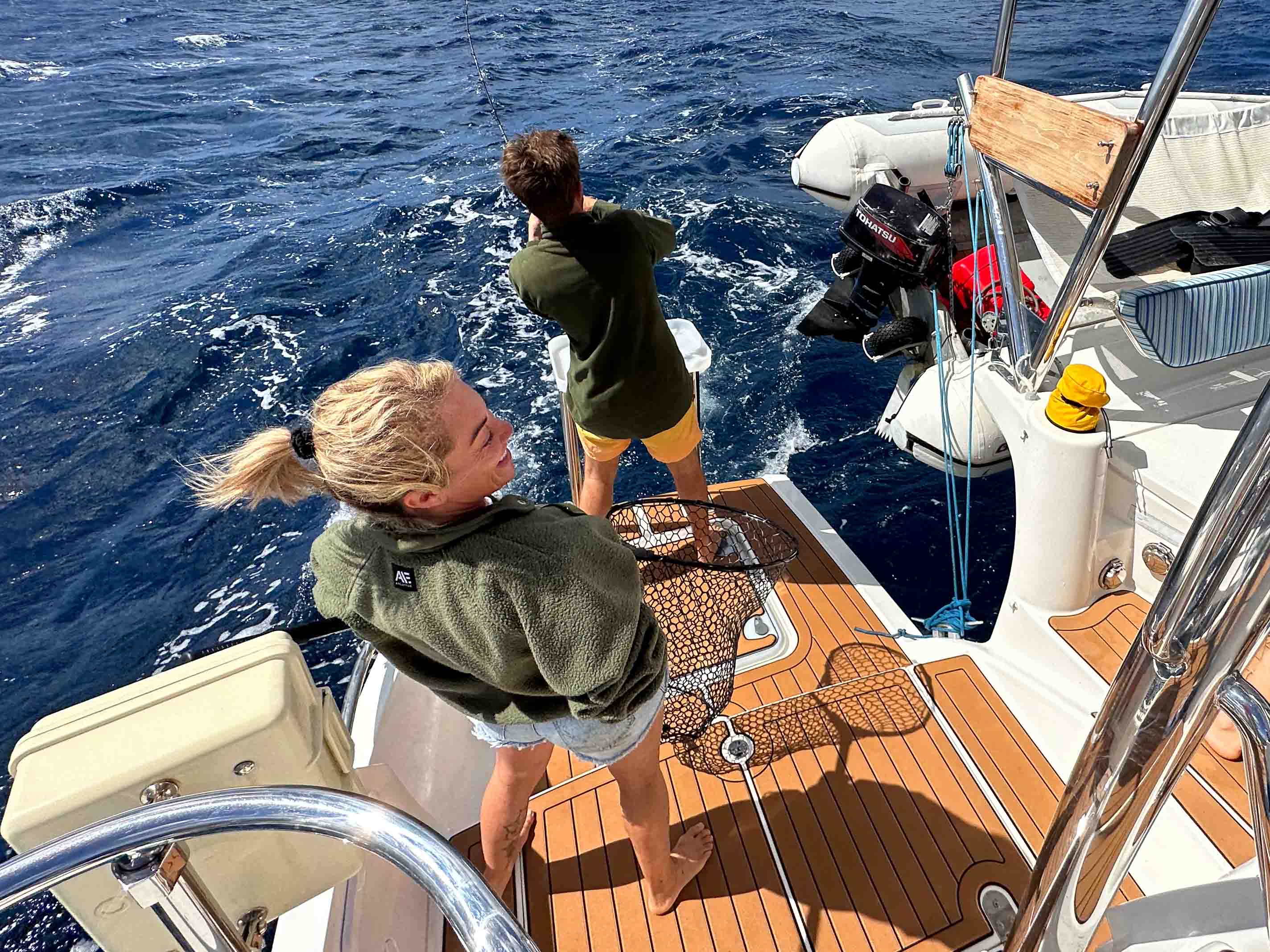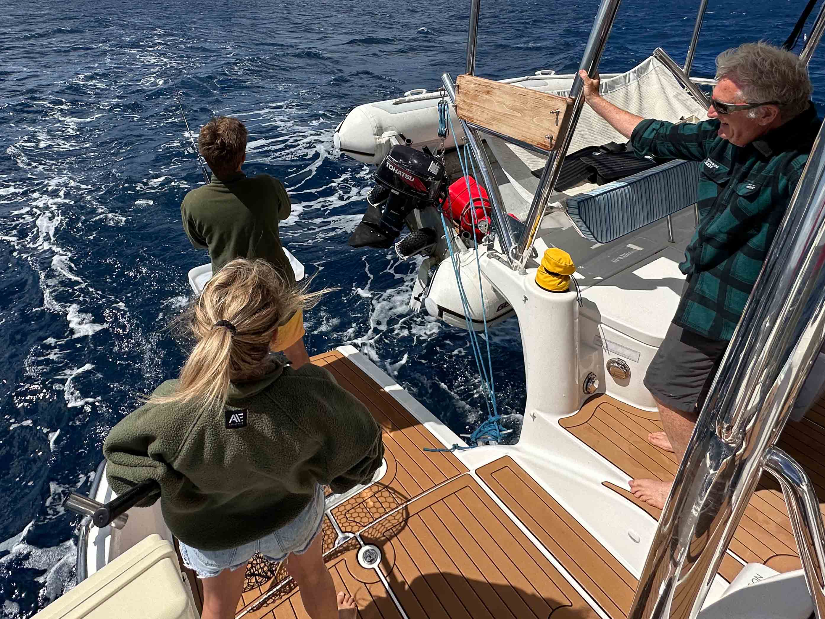 With one very favourable forecast from the long list of forecast models that we can choose from we set off north along the coast. We had our best days sailing yet, managing 12 knots in a 20 knot downwind breeze with a single reef in the mainsail. The only break to the fast sailing came each time we hooked a skipjack tuna. After losing the first, we realised that we could not land the fish without slowing down. Once we had two on board we put the rods away and focused on the sailing.