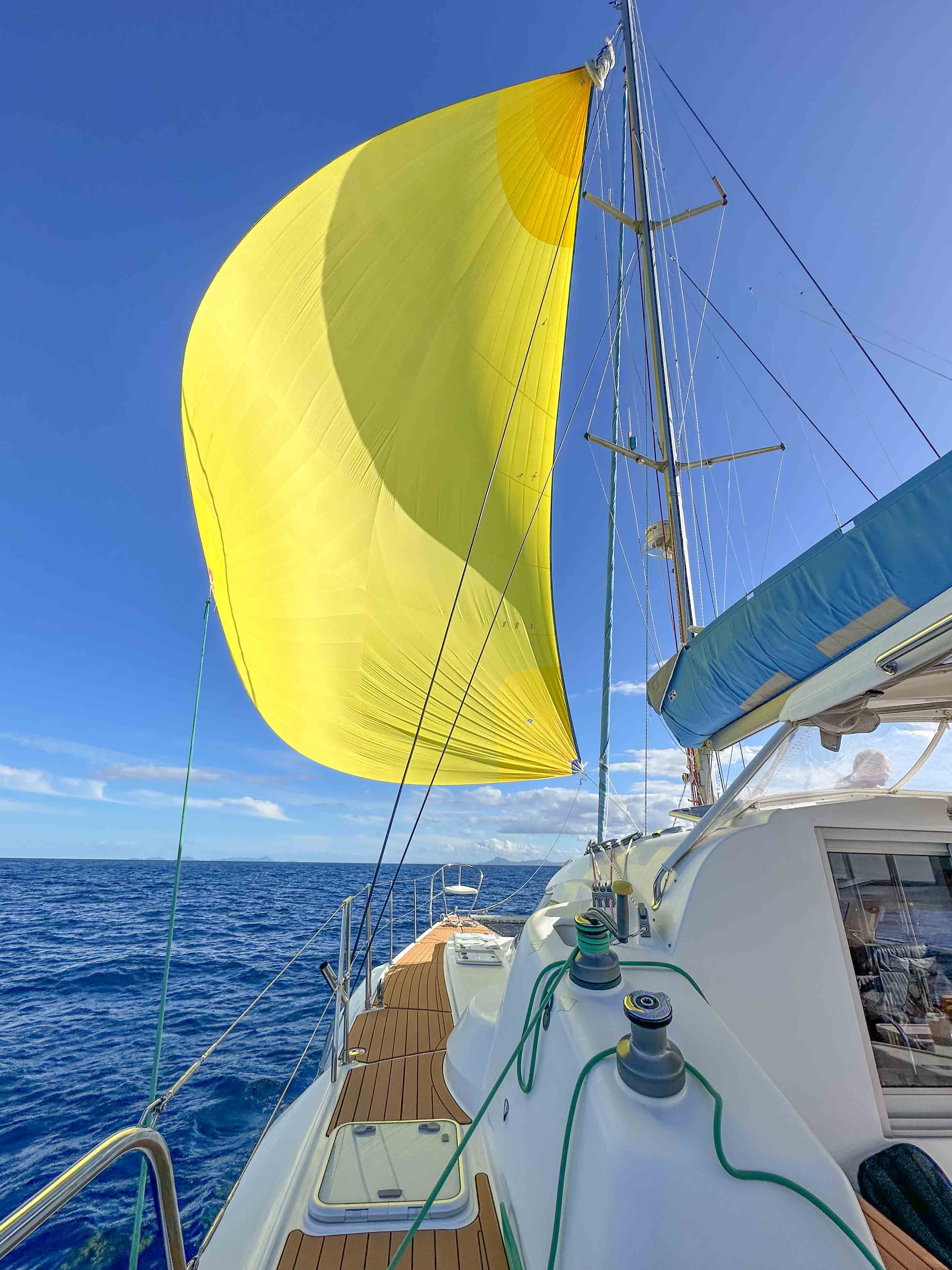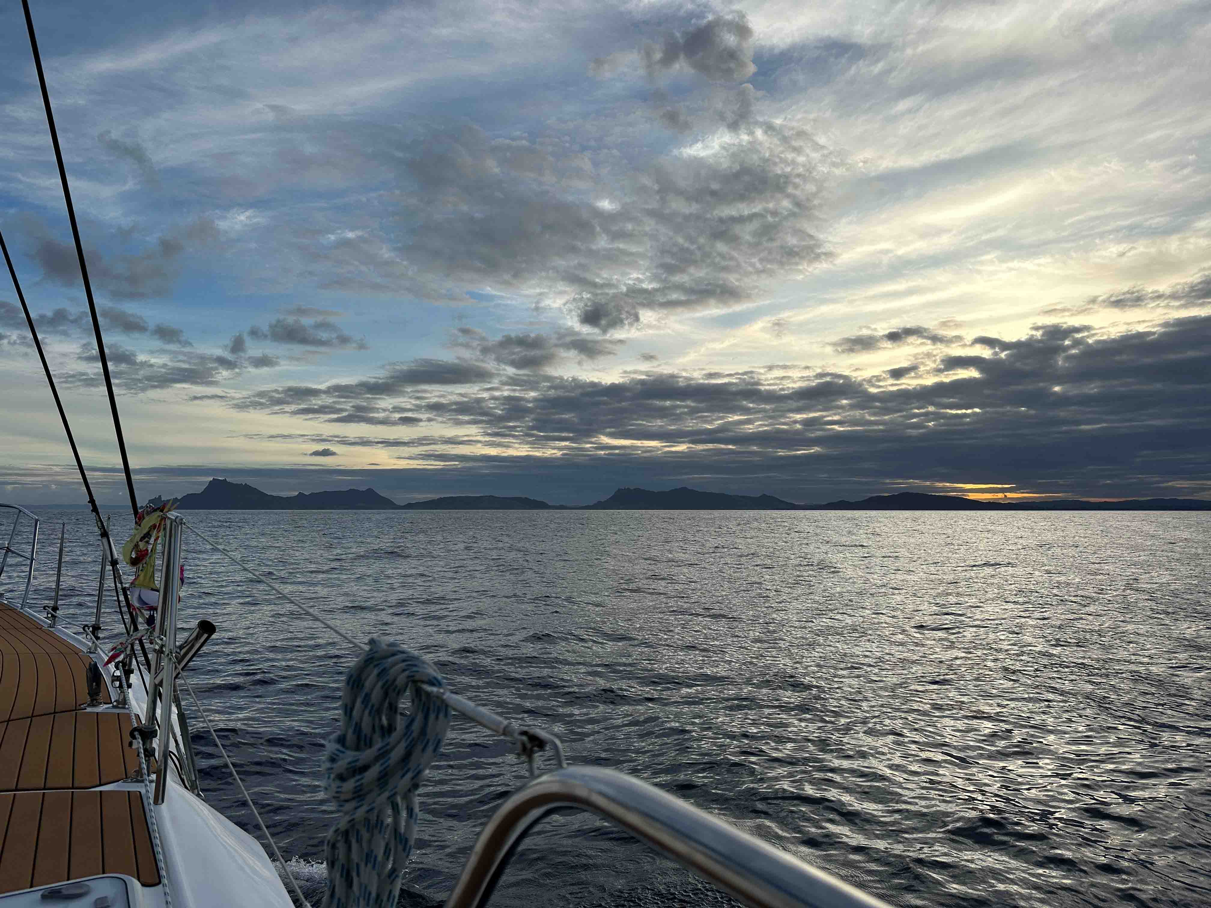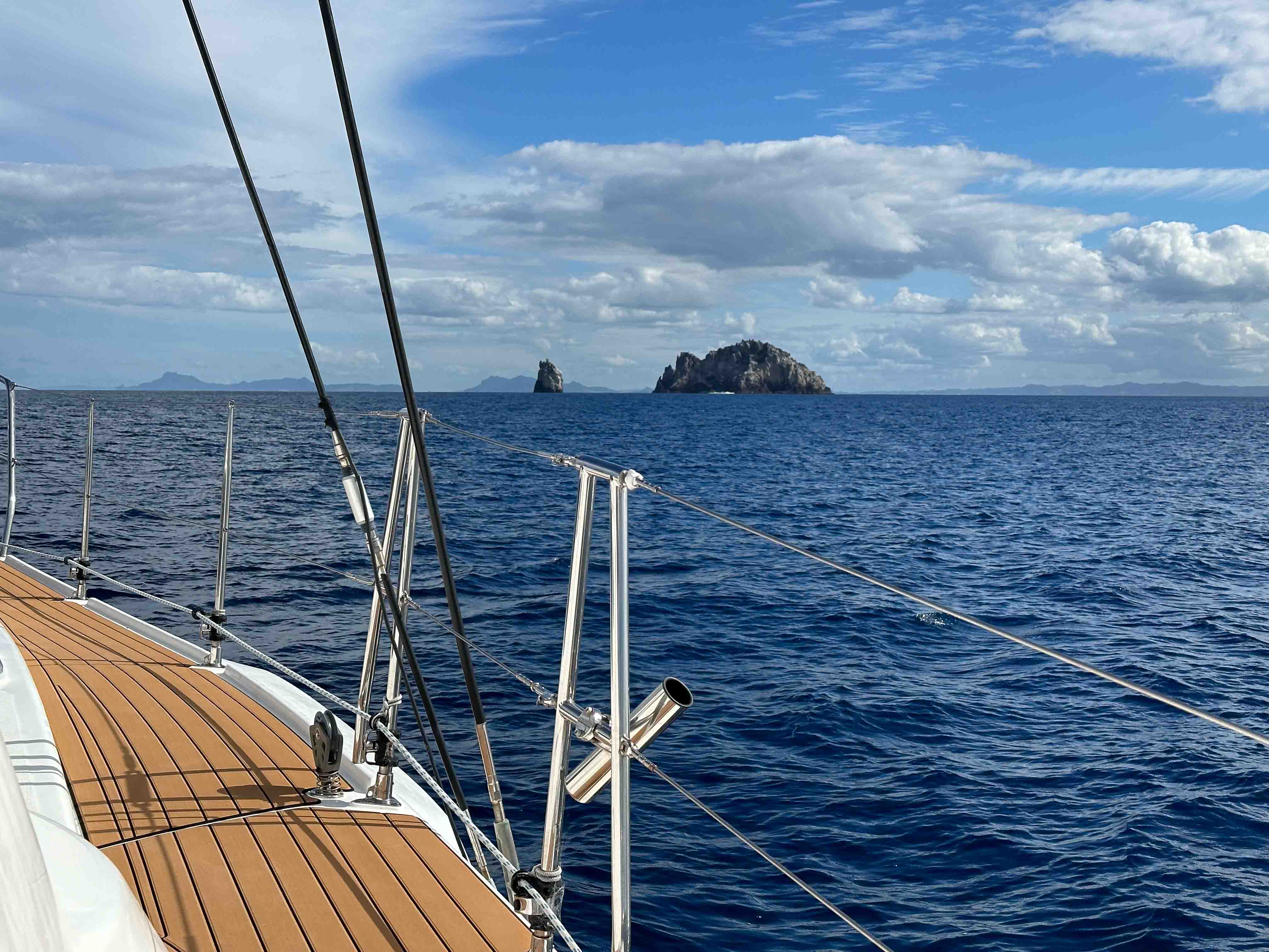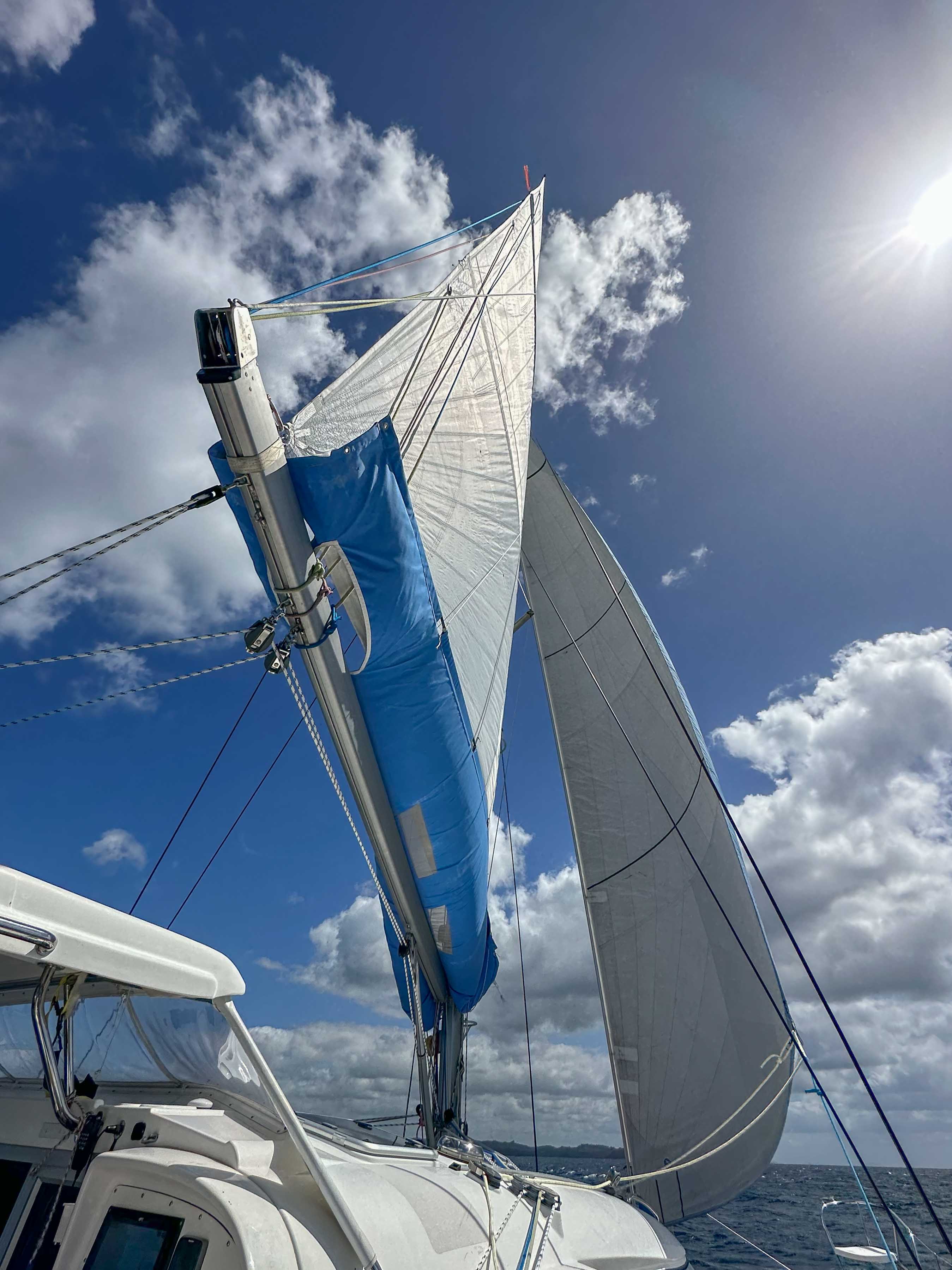 With one very favourable forecast from the long list of forecast models that we can choose from we set off north along the coast. We had our best days sailing yet, managing 12 knots in a 20 knot downwind breeze with a single reef in the mainsail. The only break to the fast sailing came each time we hooked a skipjack tuna. After losing the first, we realised that we could not land the fish without slowing down. Once we had two on board we put the rods away and focused on the sailing.
