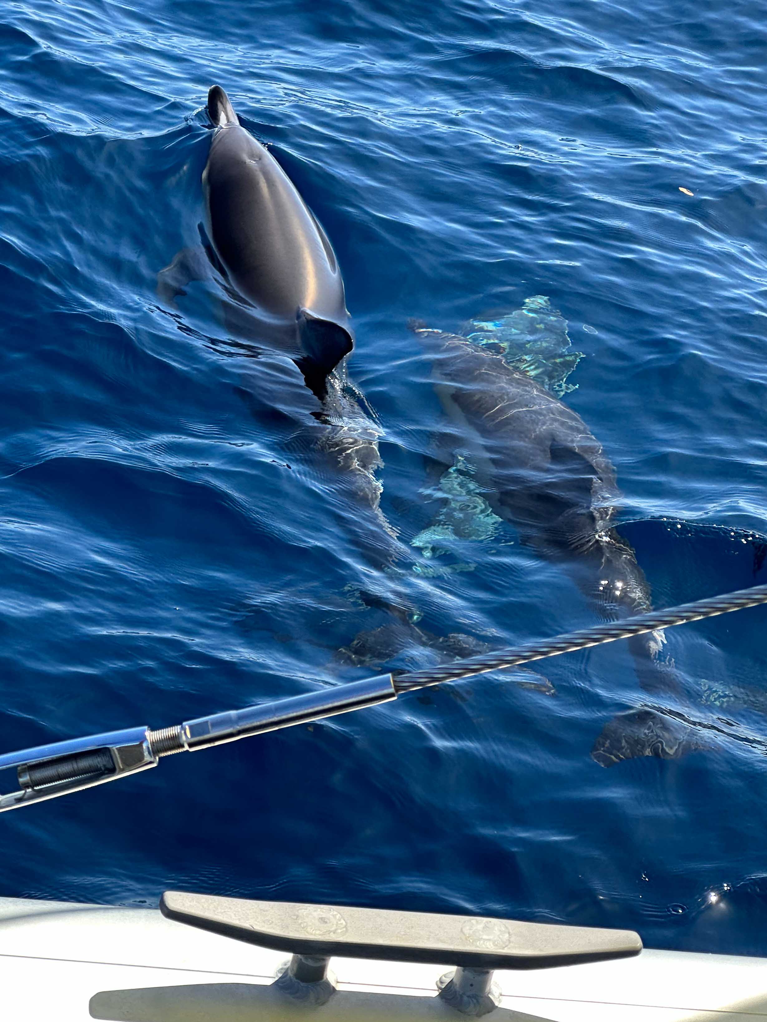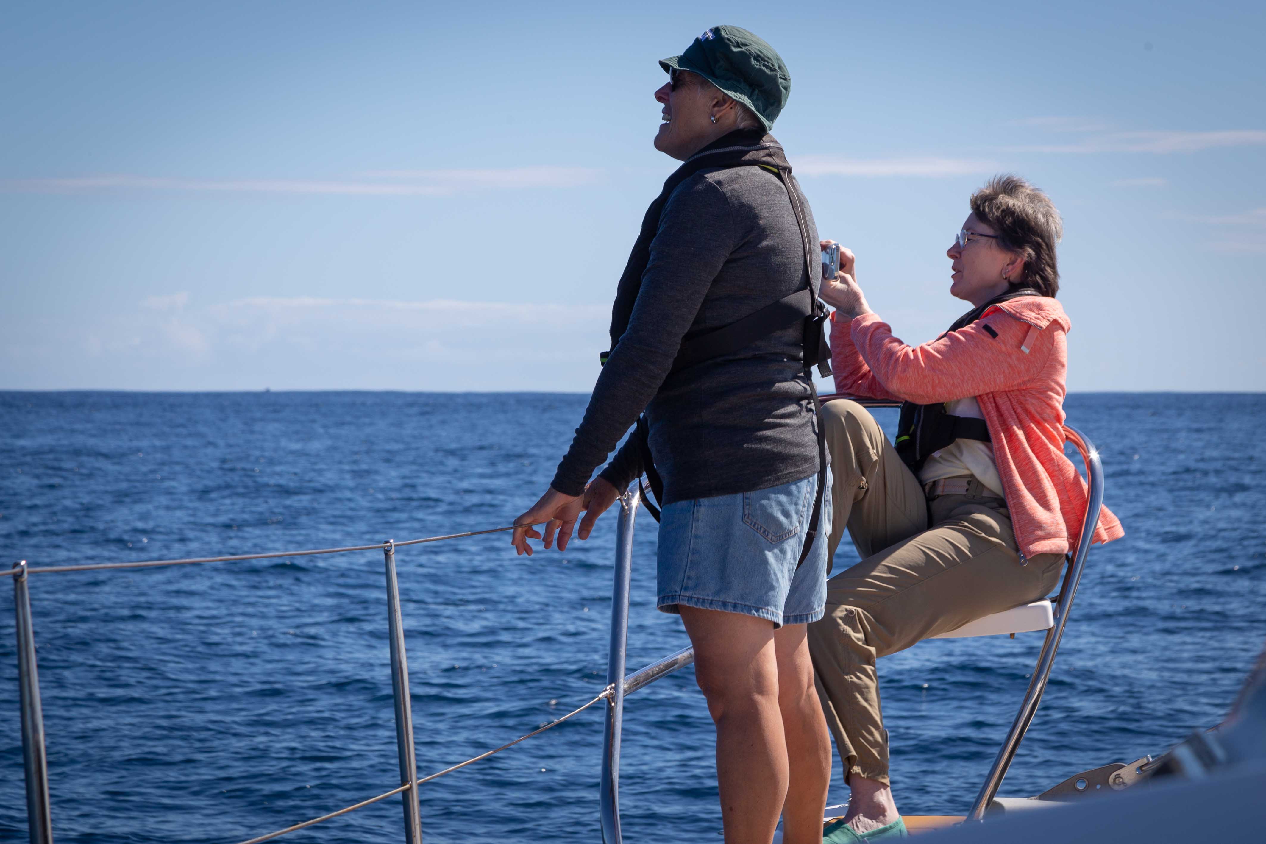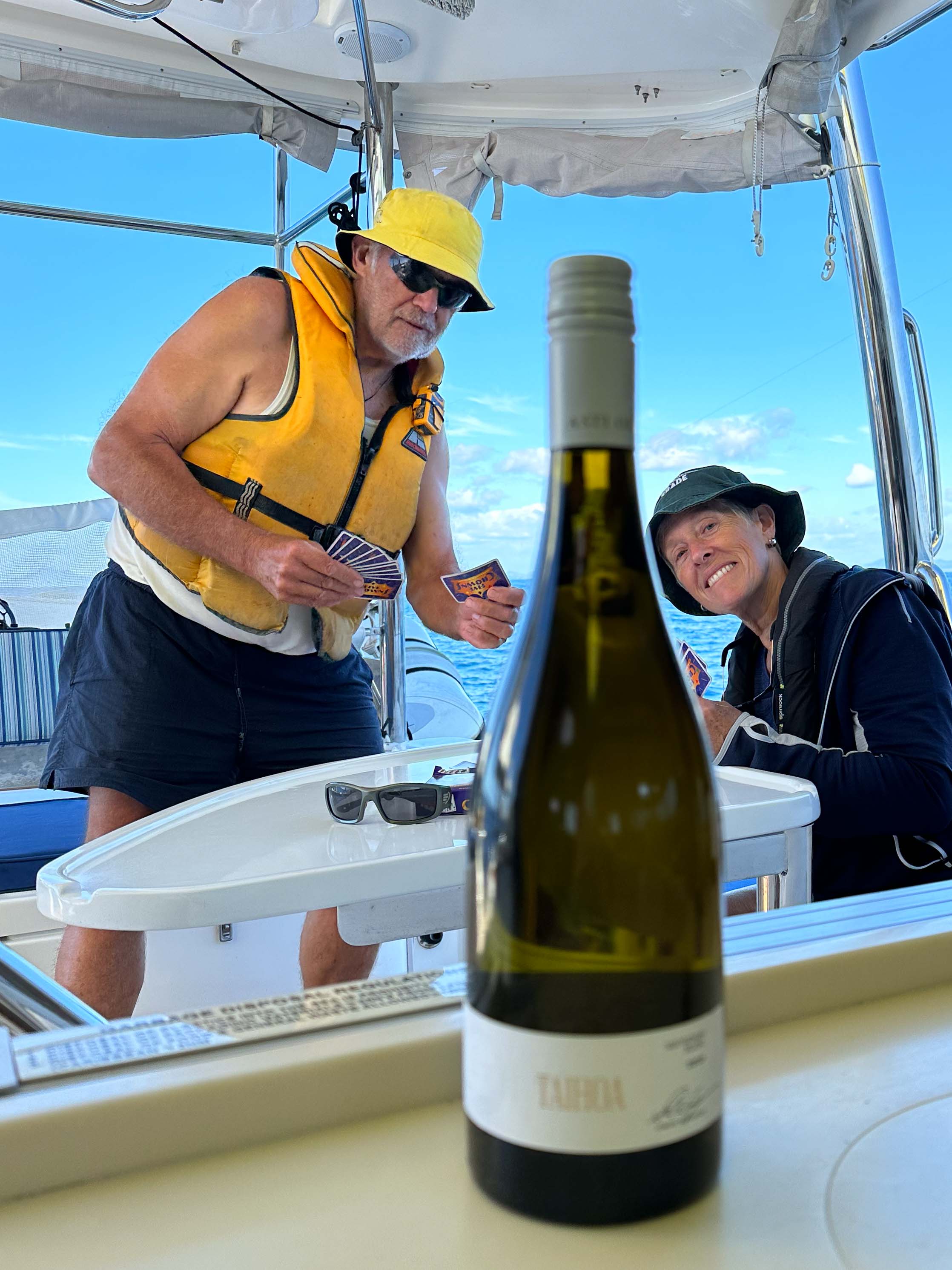 An early morning start by Barry and Nigel meant that we had plenty of time for a gentle spinnaker run all the way to the old whaling station at Whangamumu, briefly accompanied by a pod of dolphins. Plenty of time for sundowners on arrival and a demonstration by Ngaire of the latest in luxury fishing attire – apparently all the best luxury game charter trips offer the option of fishing in your slippers.