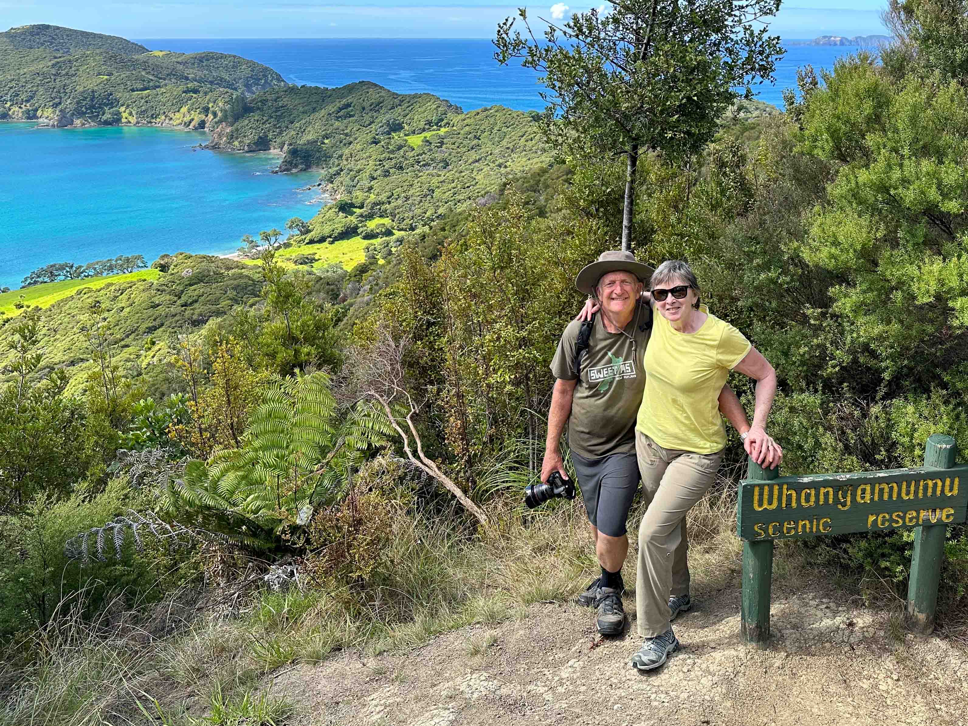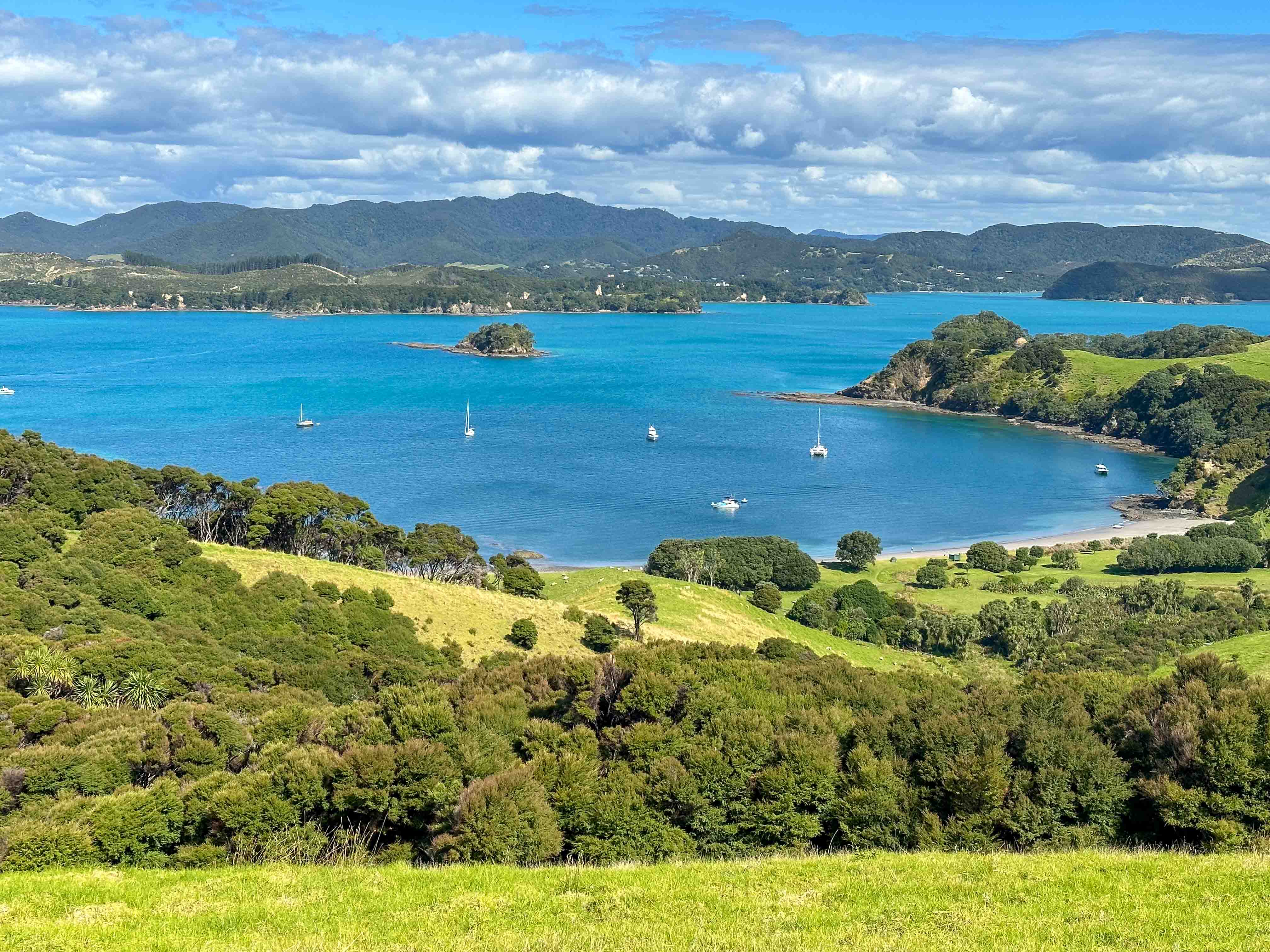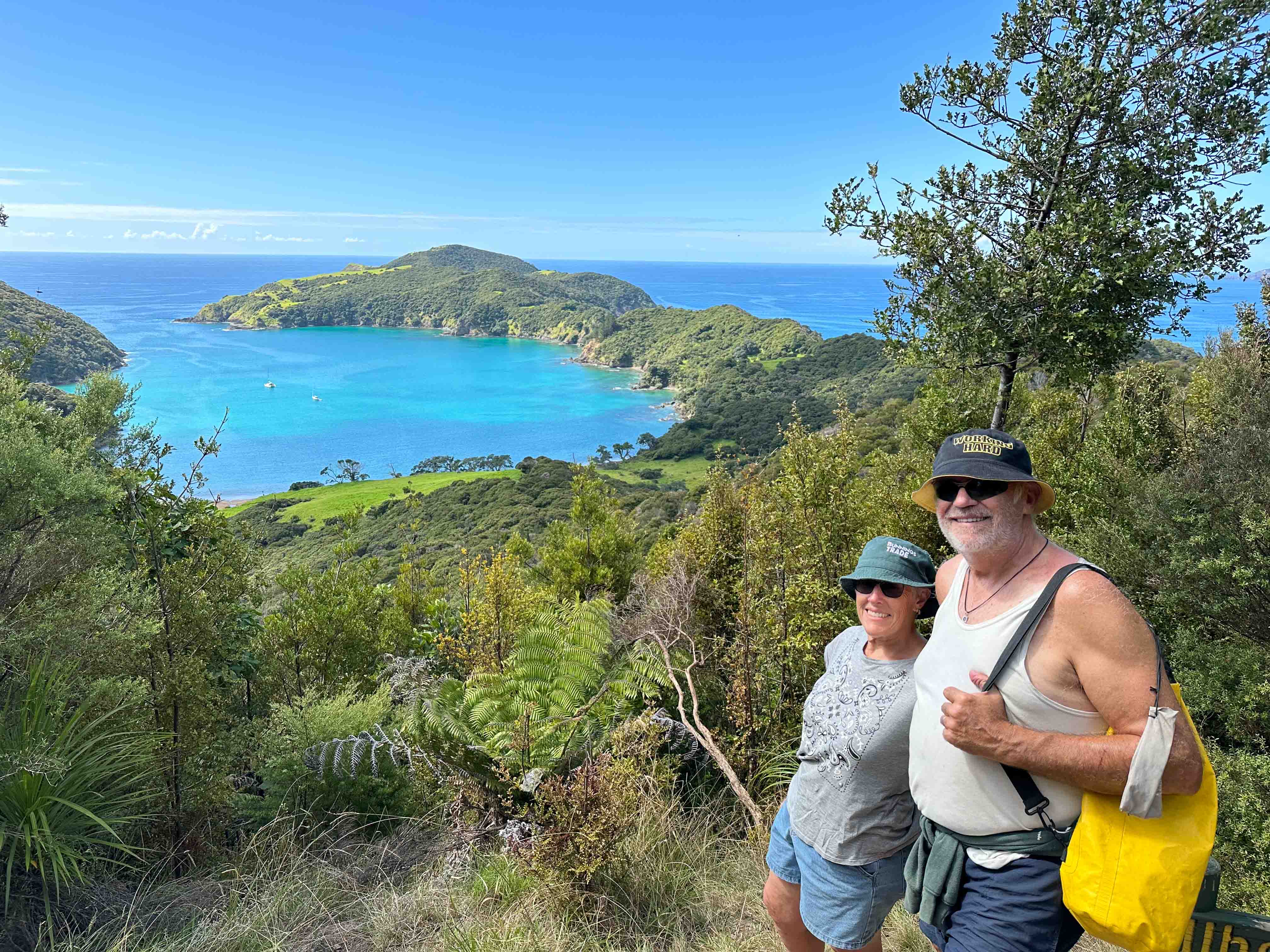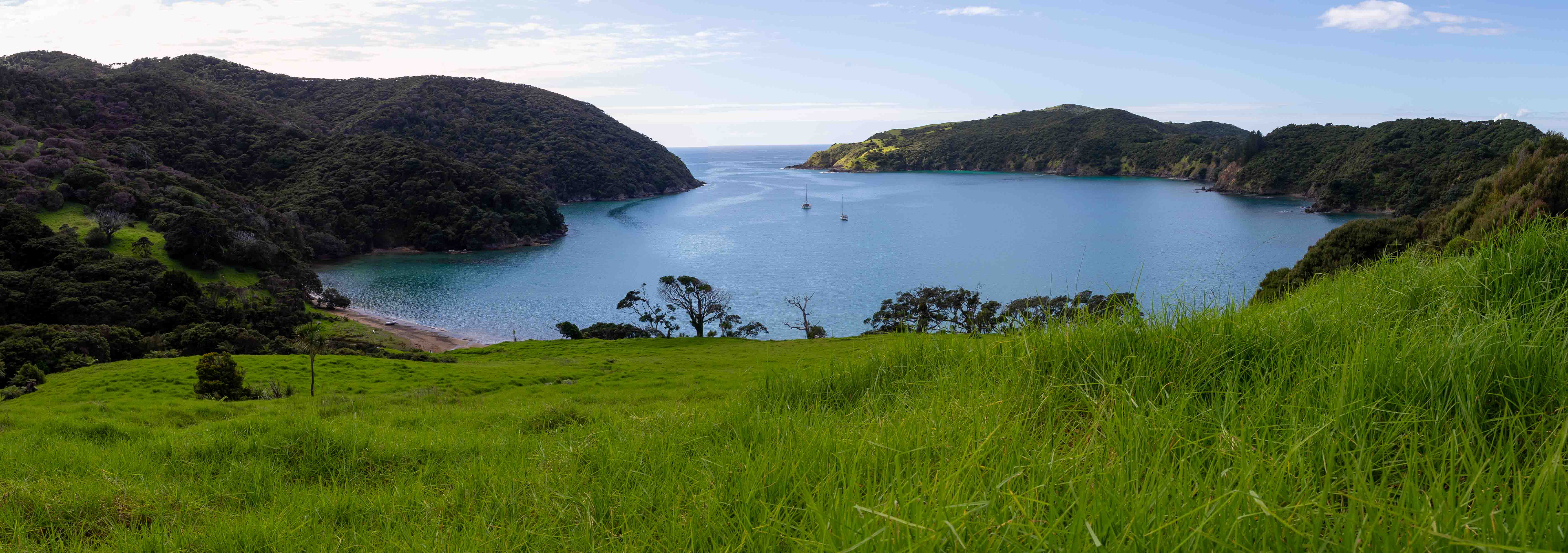 Time to move on. Light winds once again forced us to motor sail for much of the day. But we did manage to get as far as our favourite corner of Mimiwhangata Bay in plenty of time for yet another hill climb with glorious views.