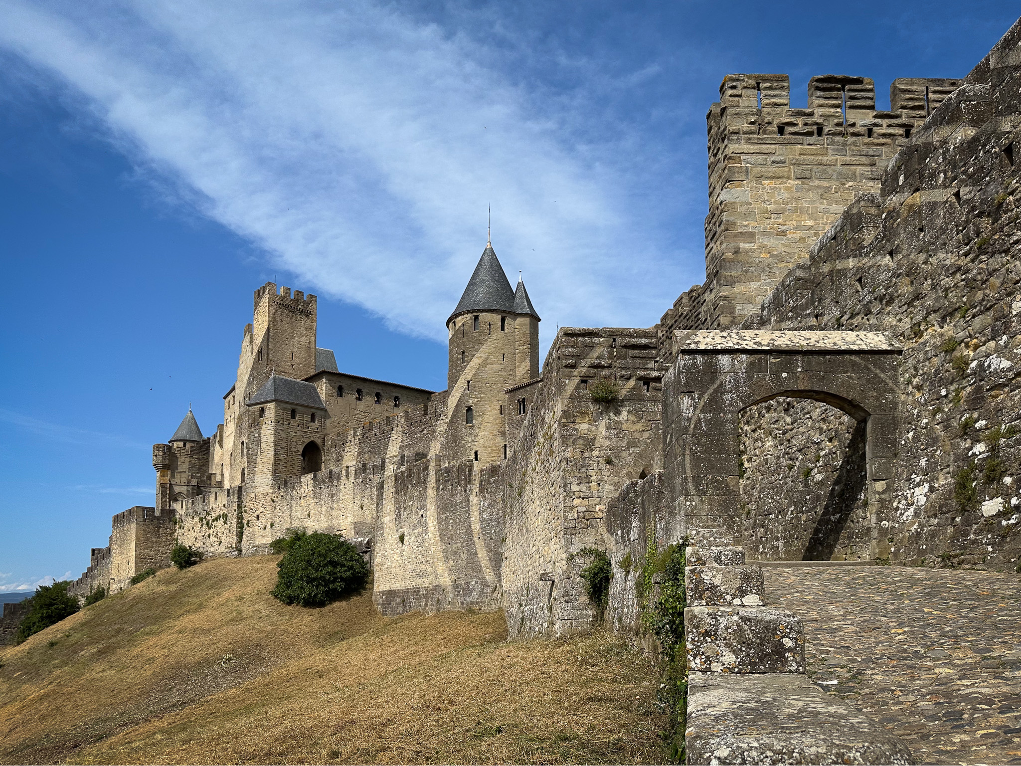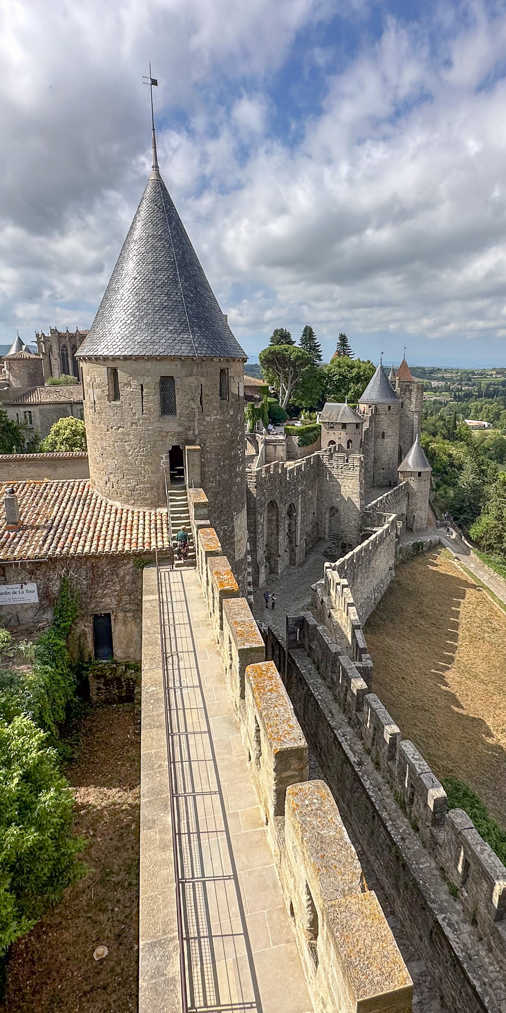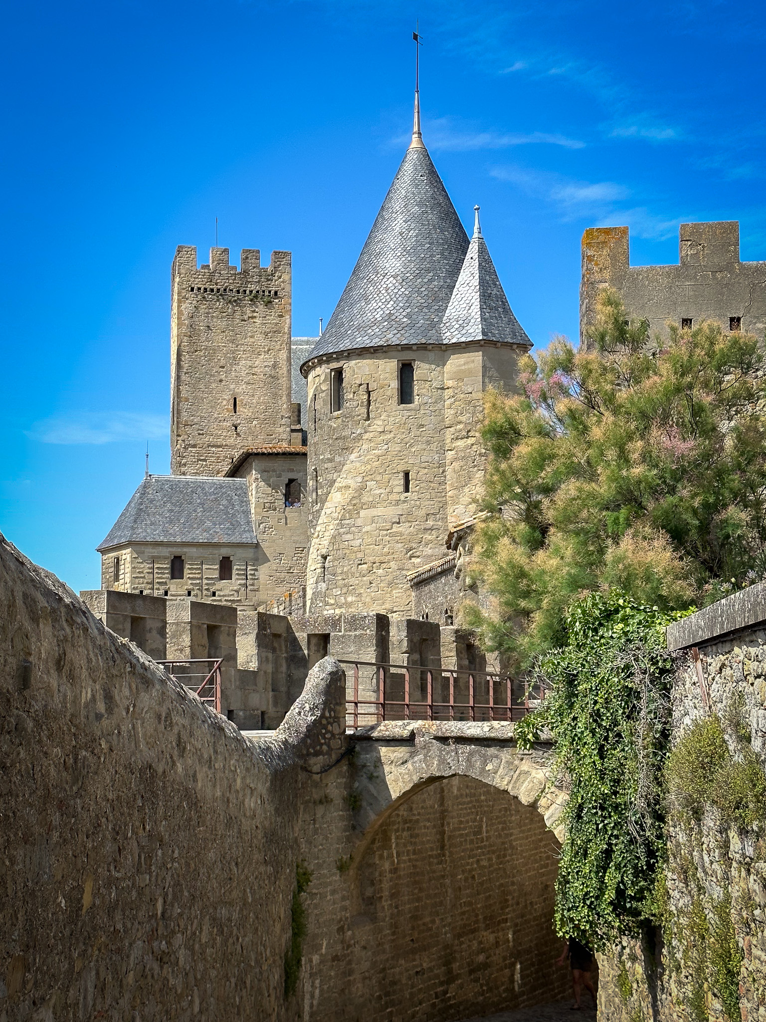 One of our stops along the canal was the city of Carcassonne. The canal enters a large basin in the centre of the town and we were able spend two nights here giving us plenty of time to explore Cité de Carcassonne, the mediaeval citadel strategically positioned on a hill above the River Aude. The citadel was nearly demolished by the French government in 1849. Fortunately, local opposition led to a reversal of the decision and a huge restoration programme began. The bizarre curved marks on city walls are a consequence of a highly controversial, and temporary, art installation Concentric Eccentric in 2018.