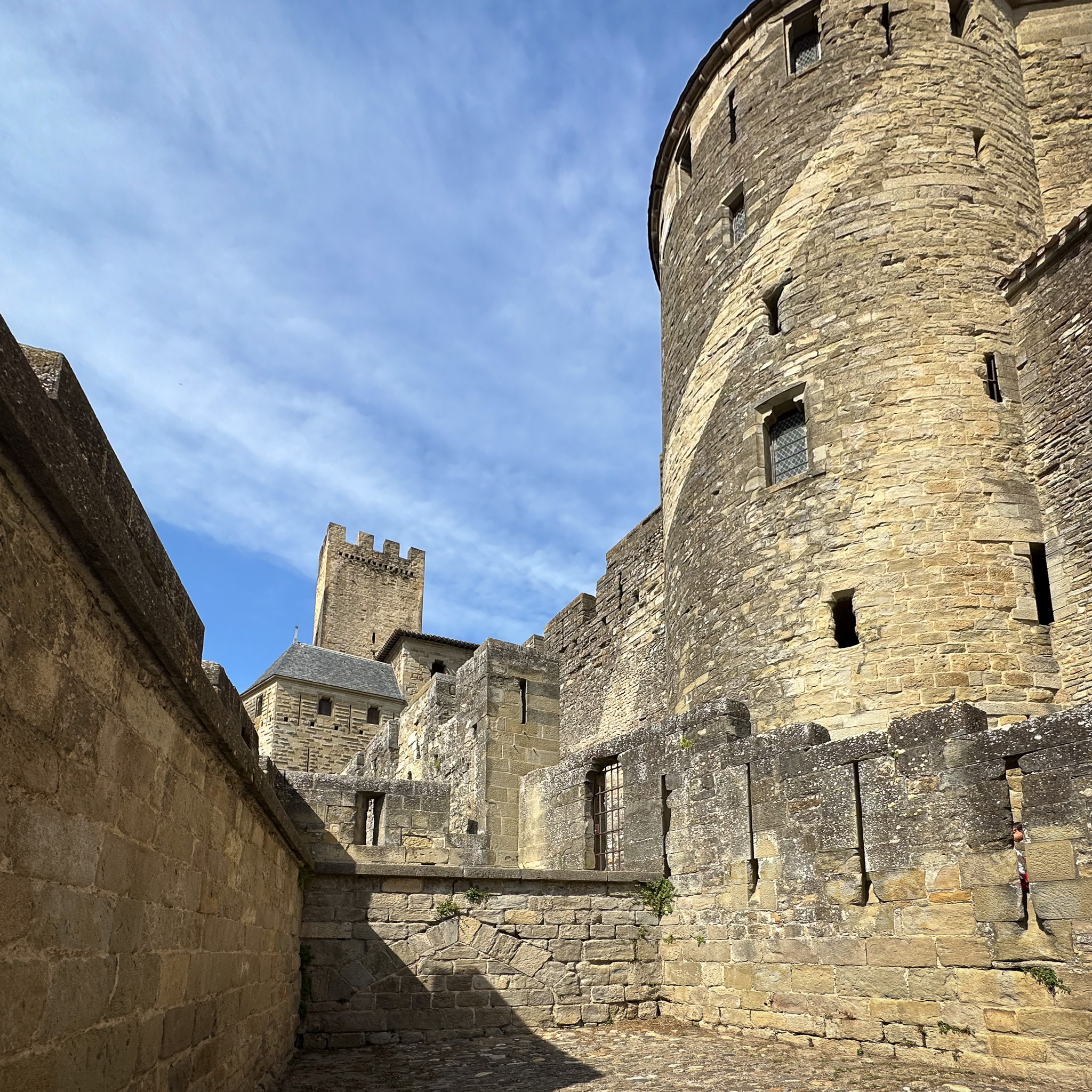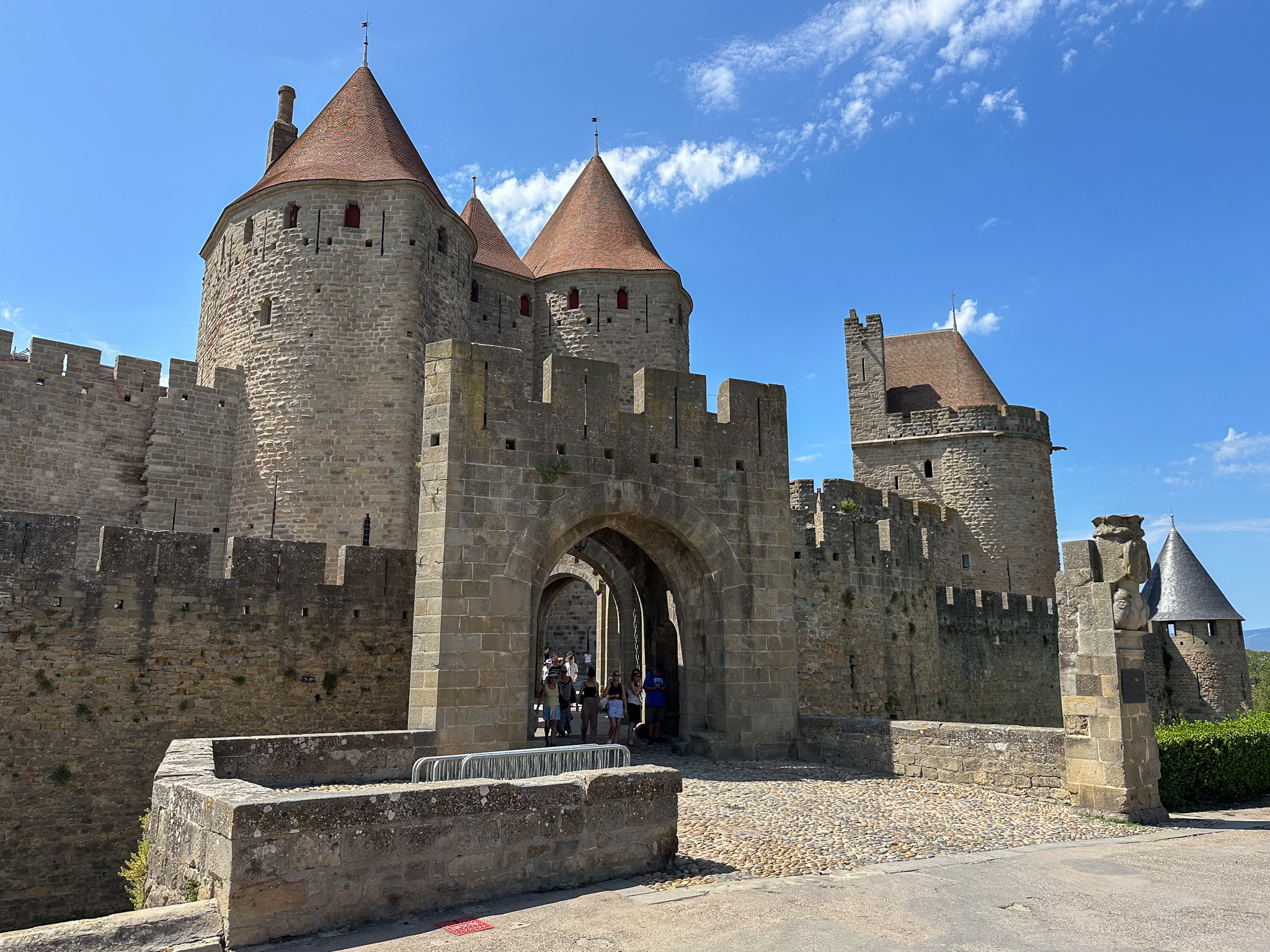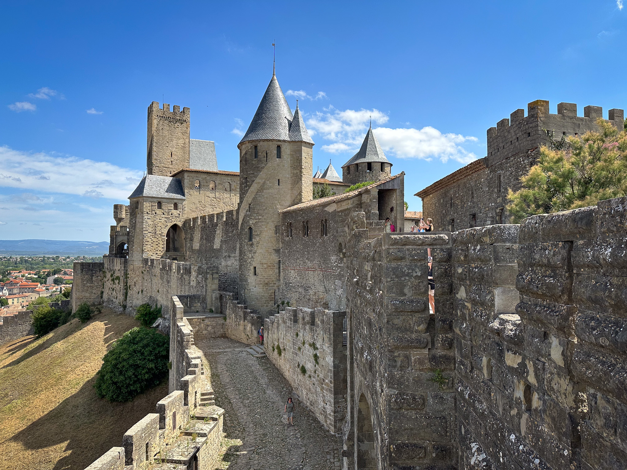 One of our stops along the canal was the city of Carcassonne. The canal enters a large basin in the centre of the town and we were able spend two nights here giving us plenty of time to explore Cité de Carcassonne, the mediaeval citadel strategically positioned on a hill above the River Aude. The citadel was nearly demolished by the French government in 1849. Fortunately, local opposition led to a reversal of the decision and a huge restoration programme began. The bizarre curved marks on city walls are a consequence of a highly controversial, and temporary, art installation Concentric Eccentric in 2018.