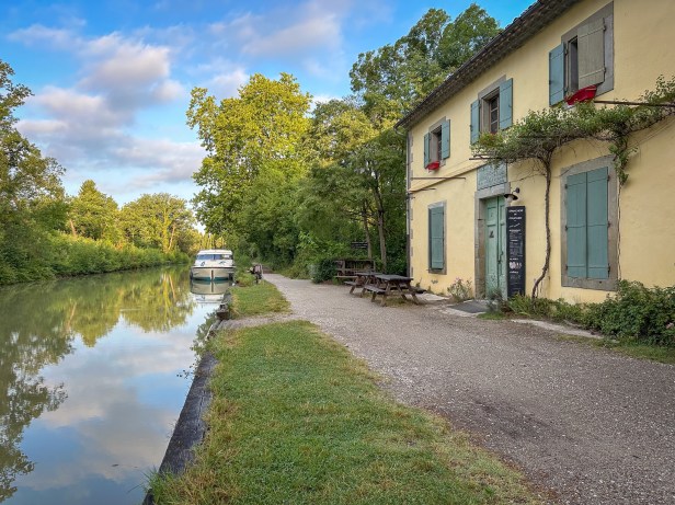 Many of the lock keeper’s cottages had cafés, restaurants and/or gift shops attached to them. After stopping for a beer we ended up staying overnight by this former lock keeper’s cottage now operating as a café and gîte.