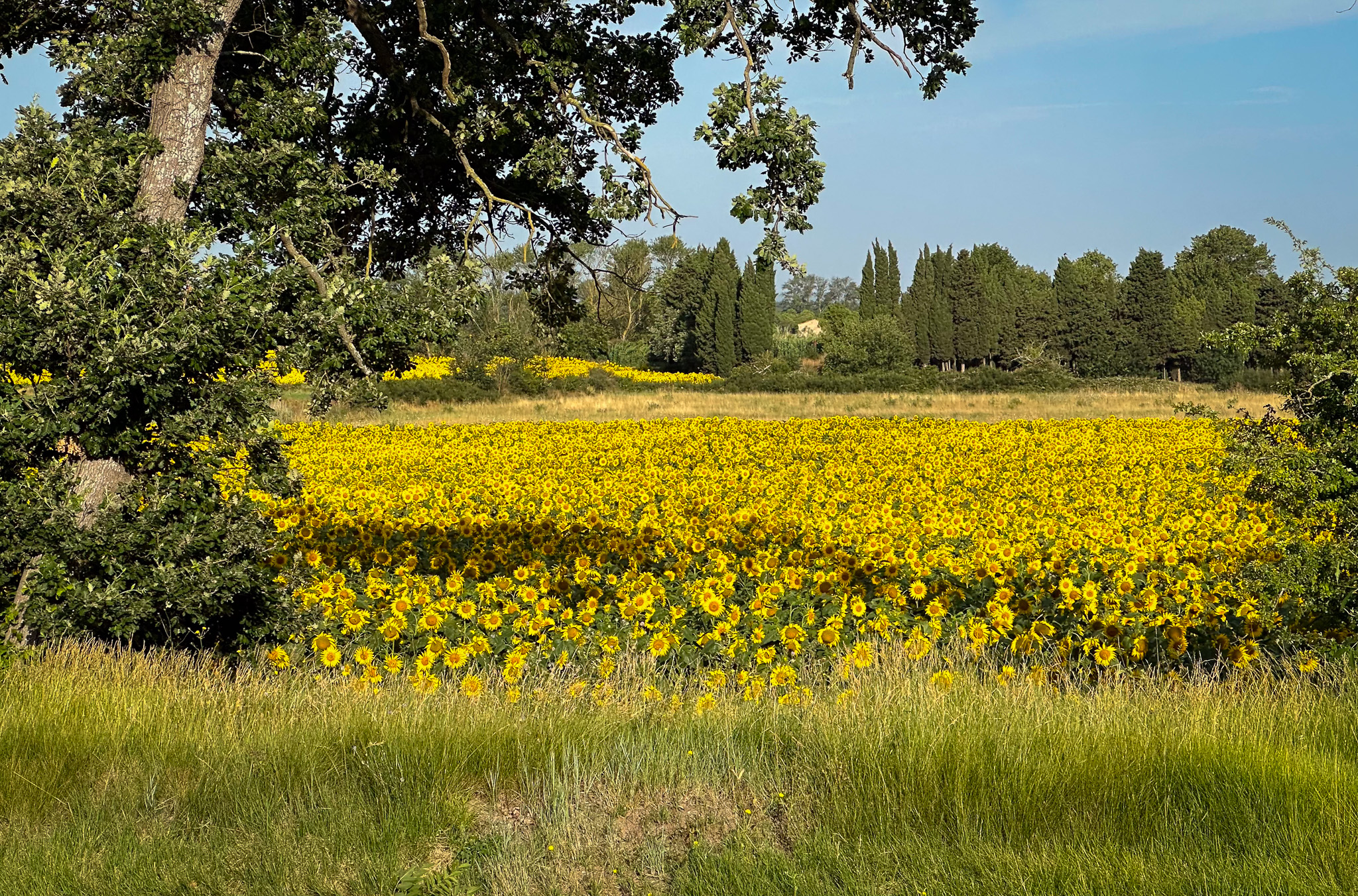 The sunflowers in the fields provided splashes of colour as they turned to face the sun during the day.