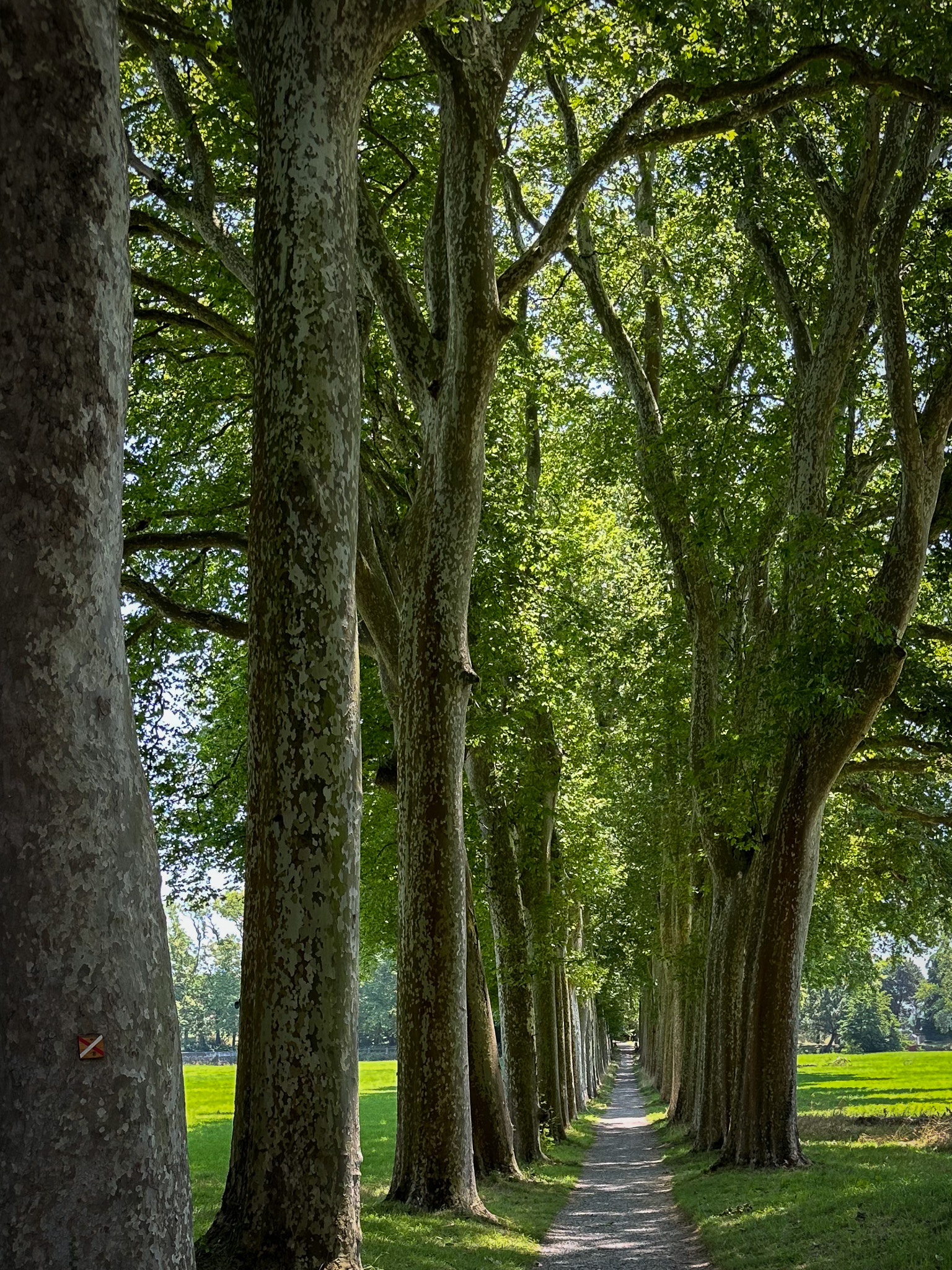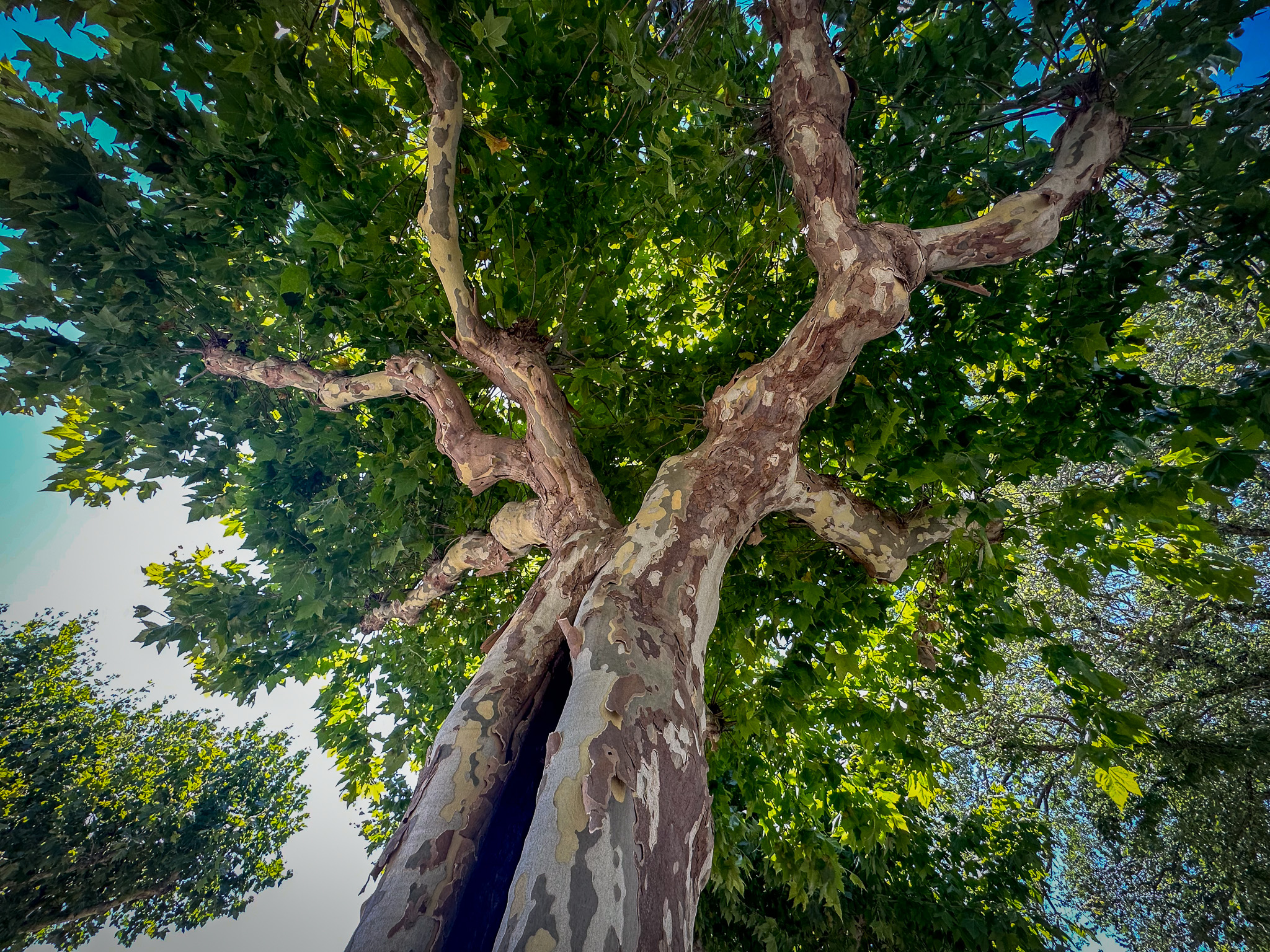 For us, the most picturesque sections of the canal were those lined with majestic old trees. Unfortunately, a great many of the original plane trees (which belong to the same family as sycamore trees) have succumbed to a fungal infection, commonly known as canker stain, and have been cut down. It is claimed that the fungus was introduced into Europe towards the end of World War II, via wooden ammunition boxes from America. The wood used in these ammunition boxes came from the American sycamore.