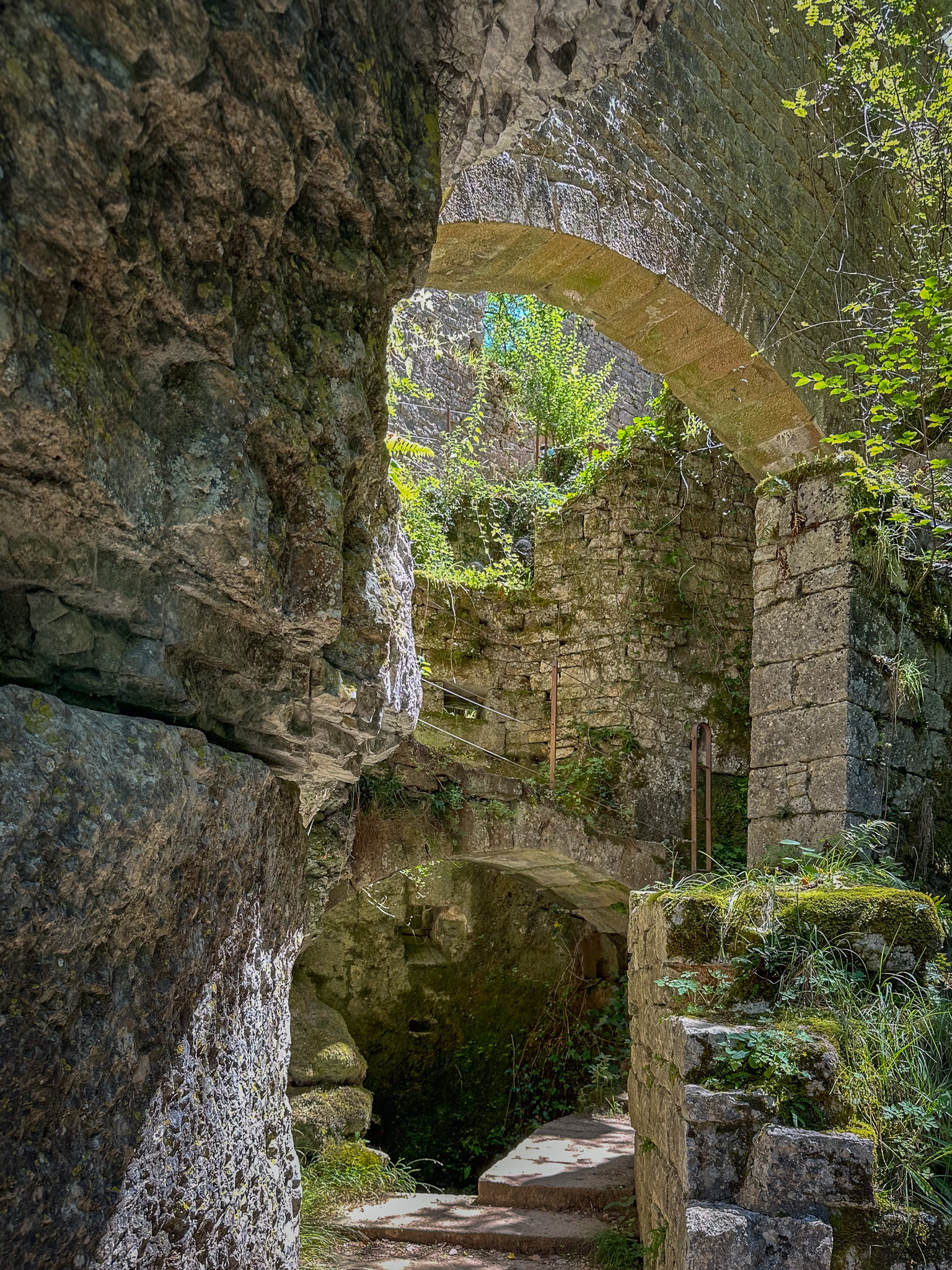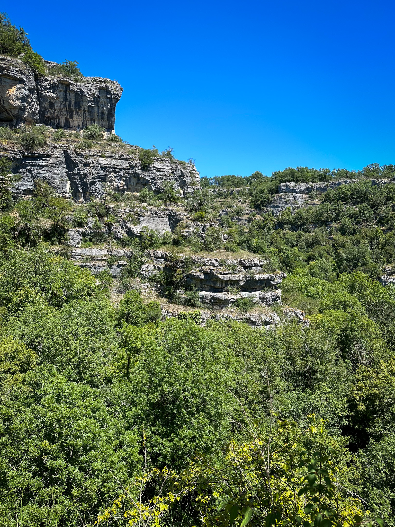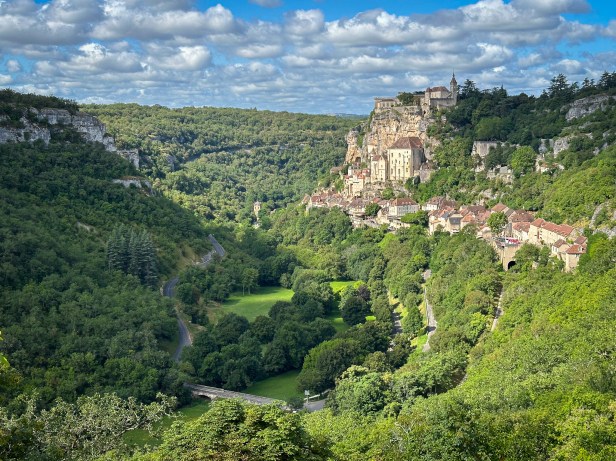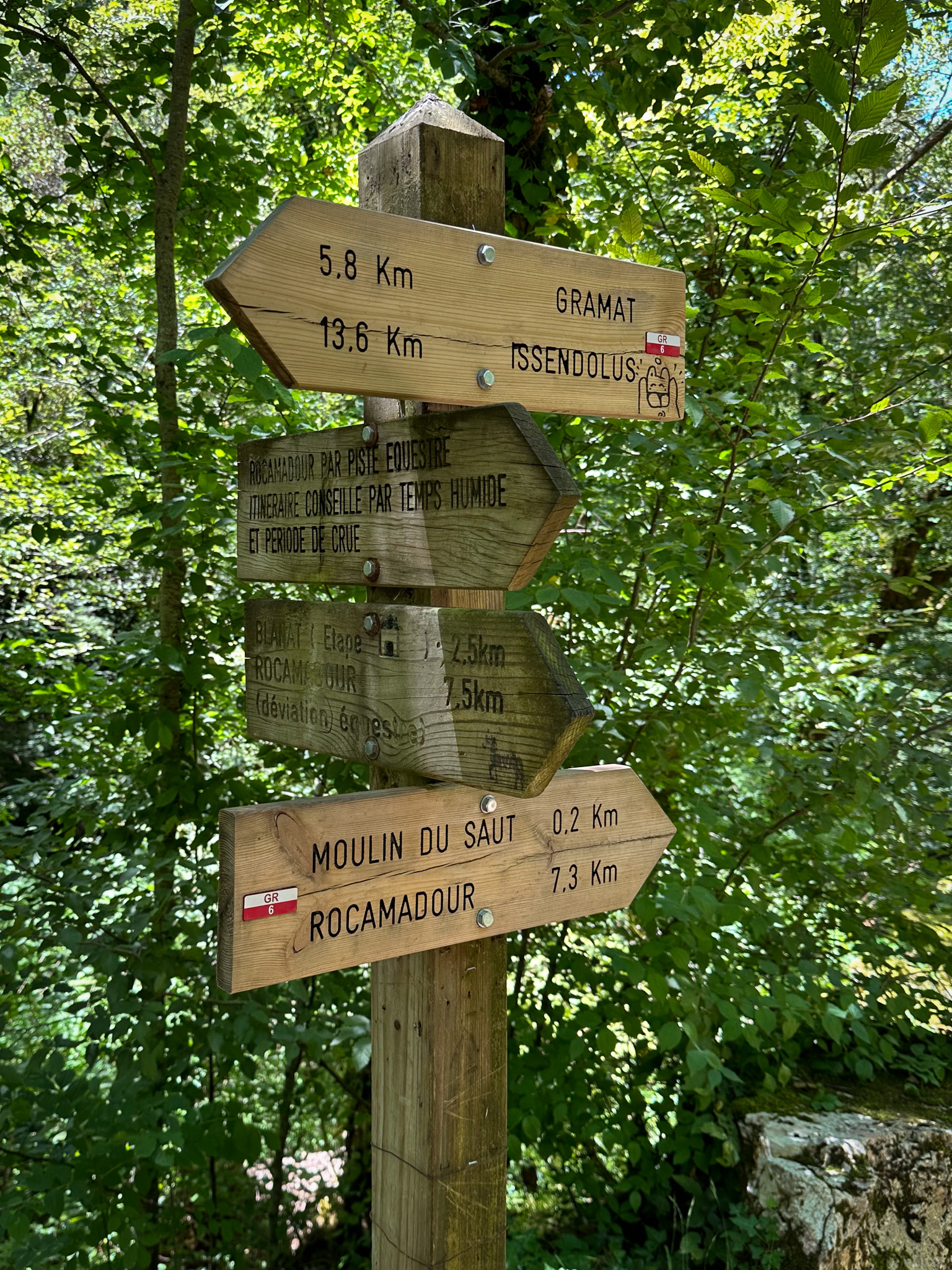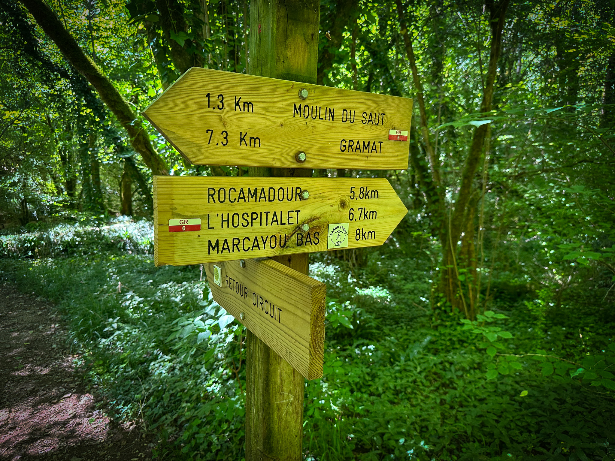 A loop starting from the base of Rocamadour, up out of the gorge on the other side, following ancient trails to an old village with its chateau and then descending back into the gorge to follow the river past ruined watermills and back to the starting point.